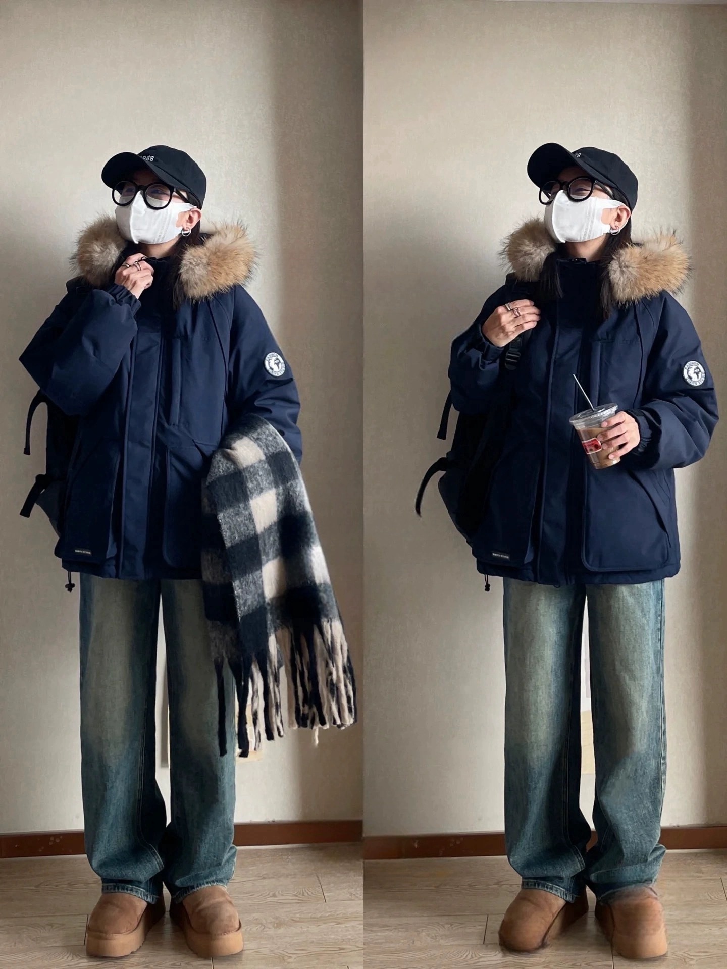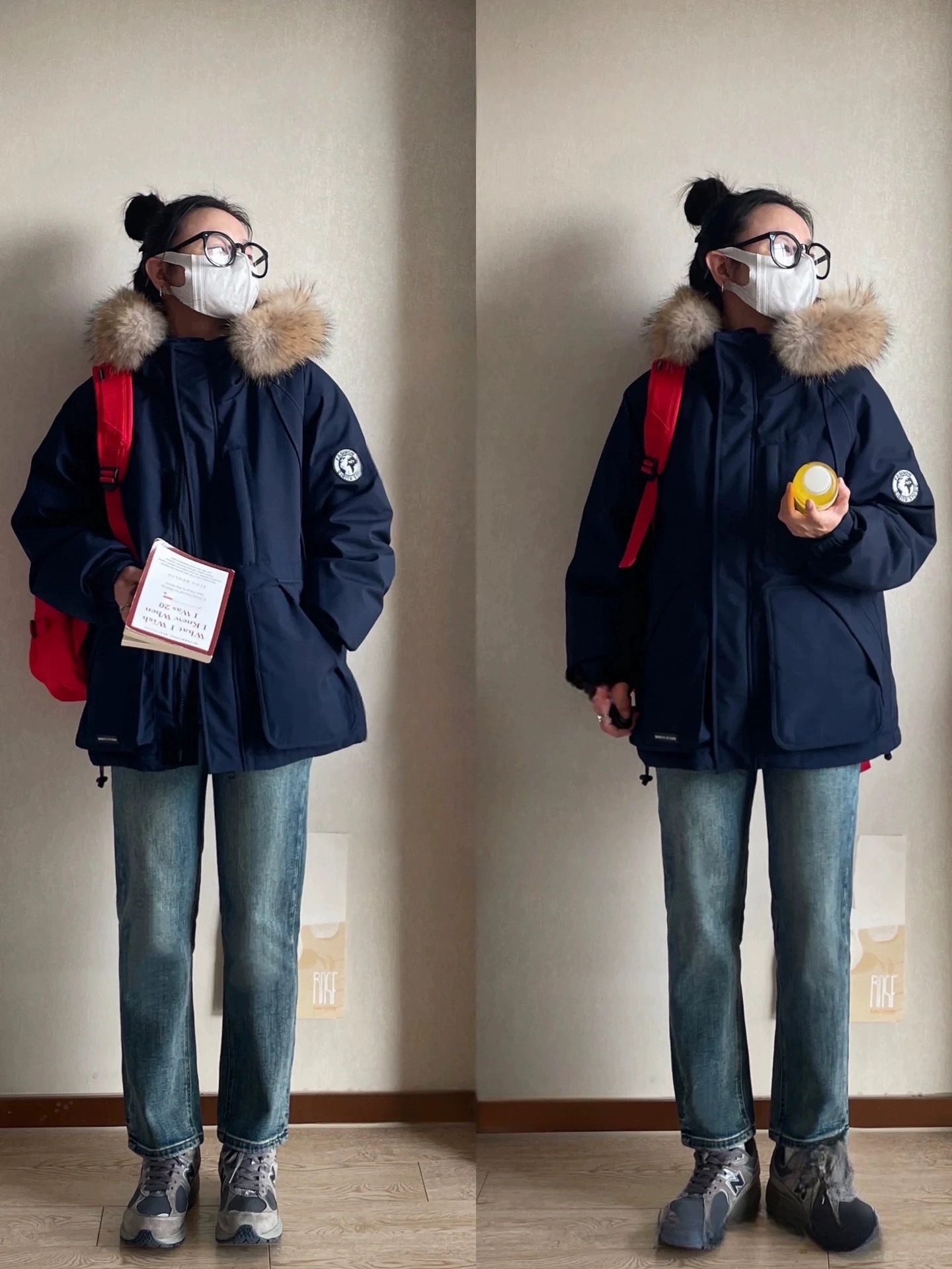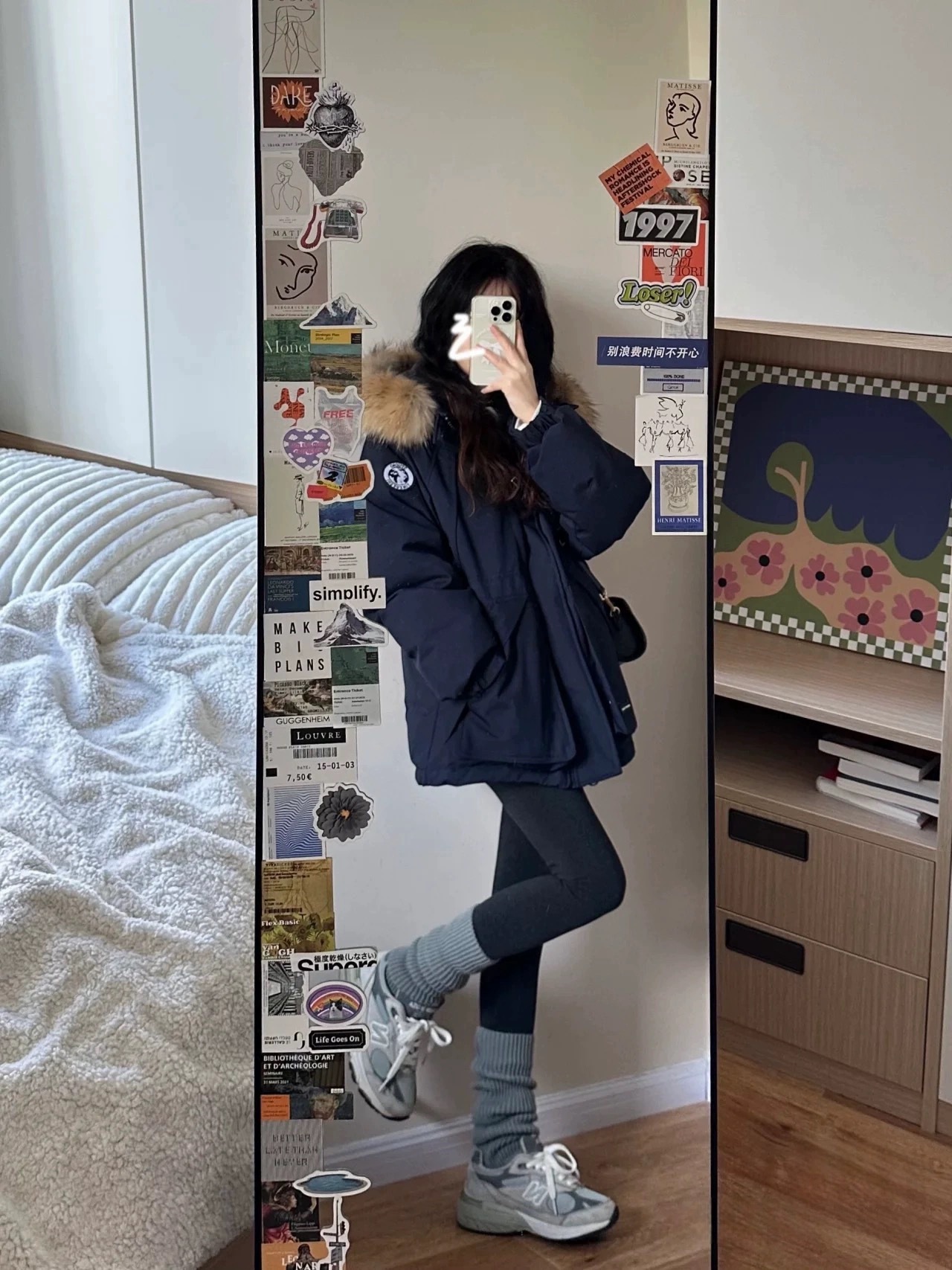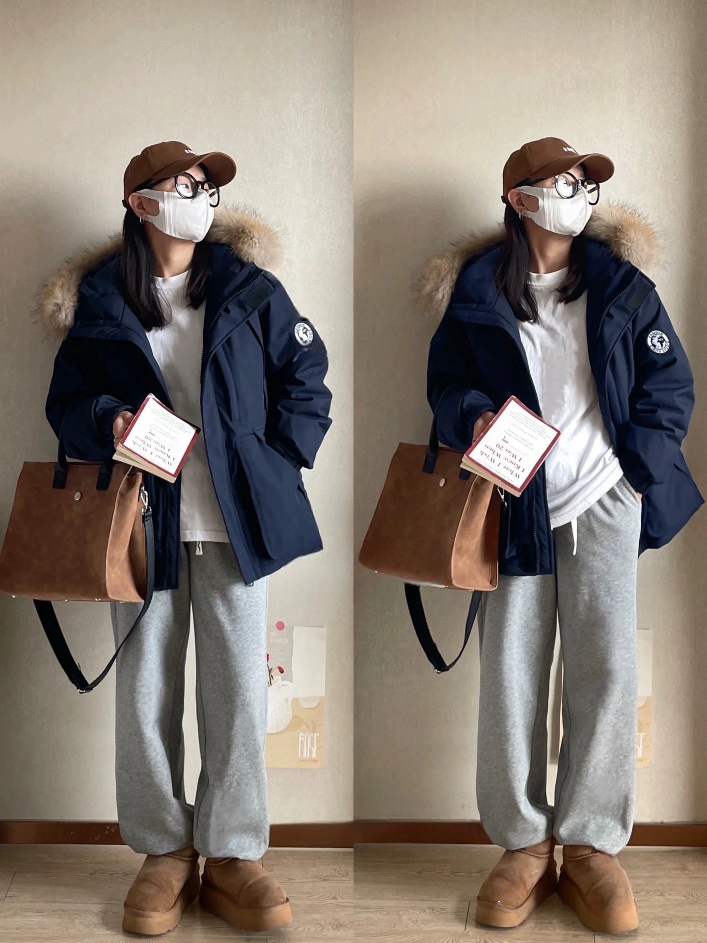 2024羽绒服女中长款工装派克学生冲锋衣大毛领连帽白鸭绒冬装外套