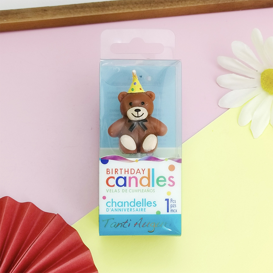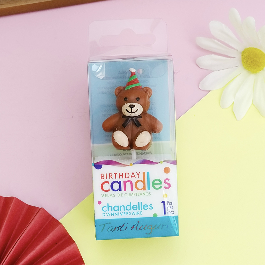 跨境外贸单个小熊生日蜡烛派对帽领结熊蛋糕蜡烛卡通创意装饰蜡烛