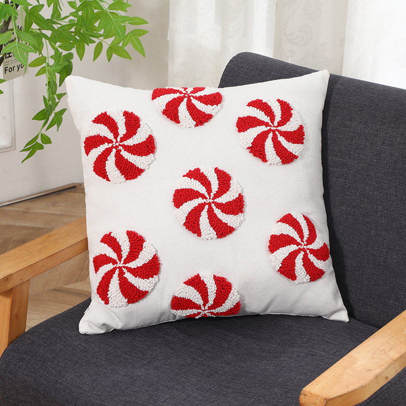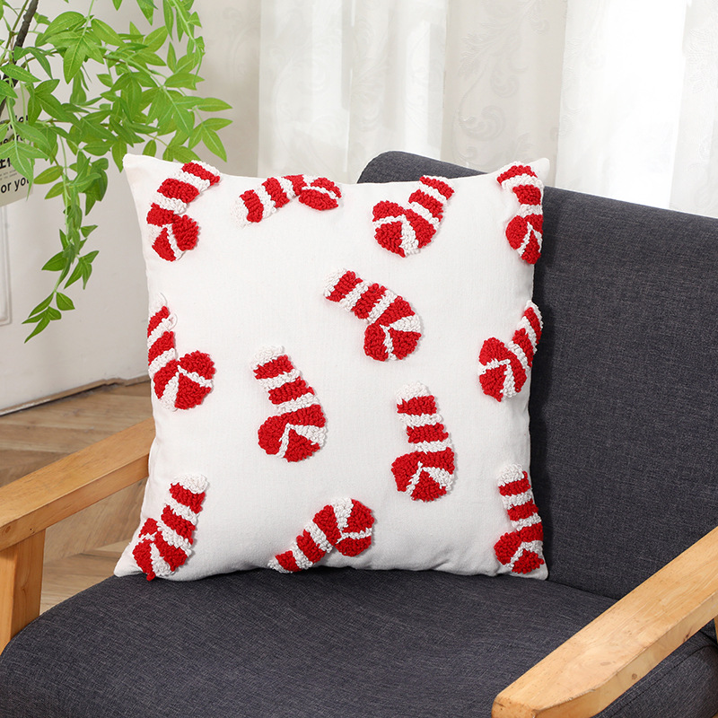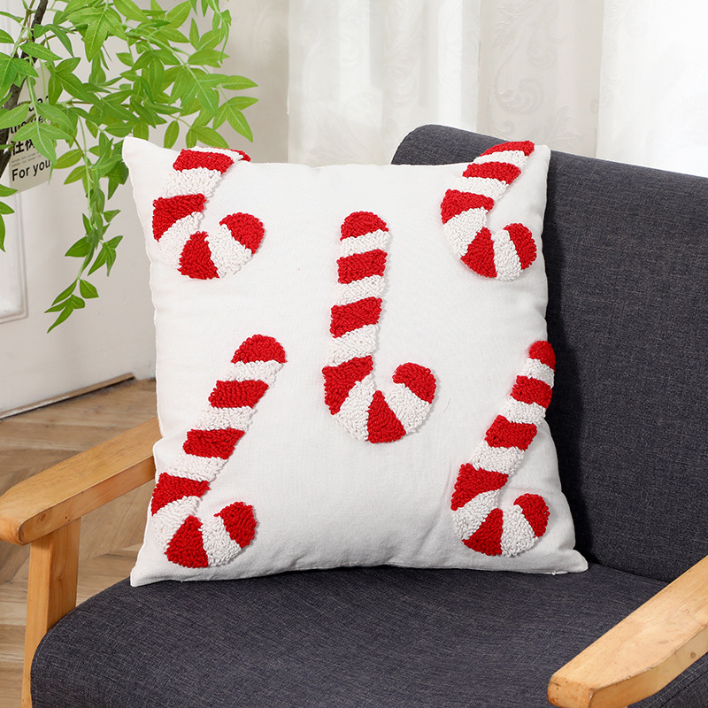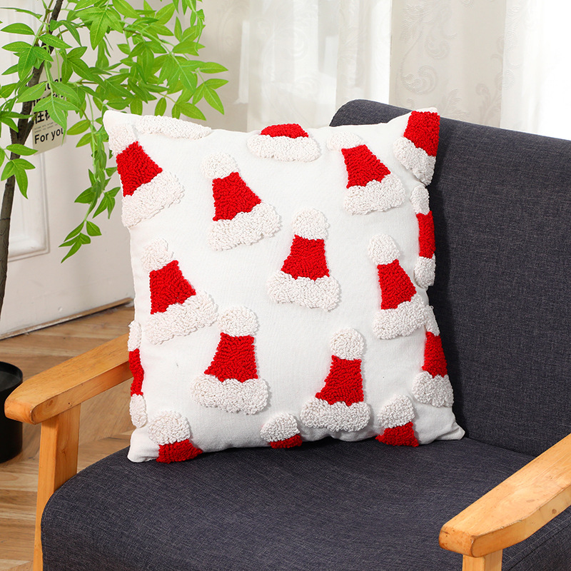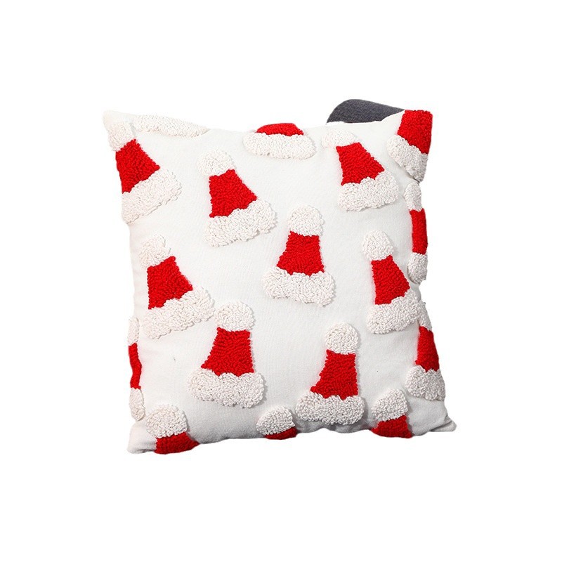 跨境刺绣圣诞节抱枕套客厅沙发圈绒圣诞元素靠垫节日装 饰枕头套
