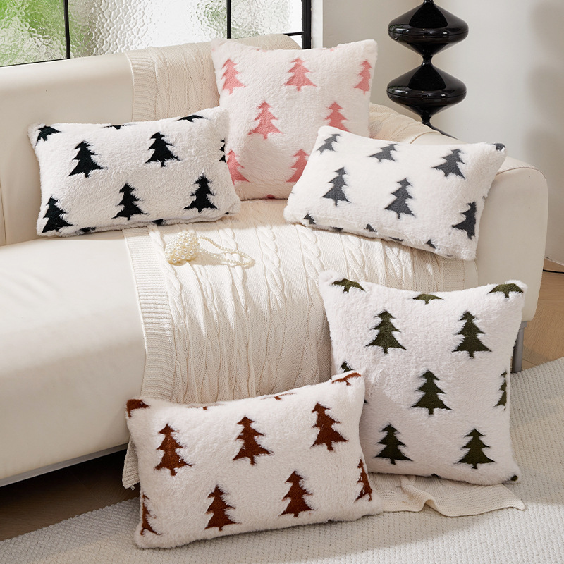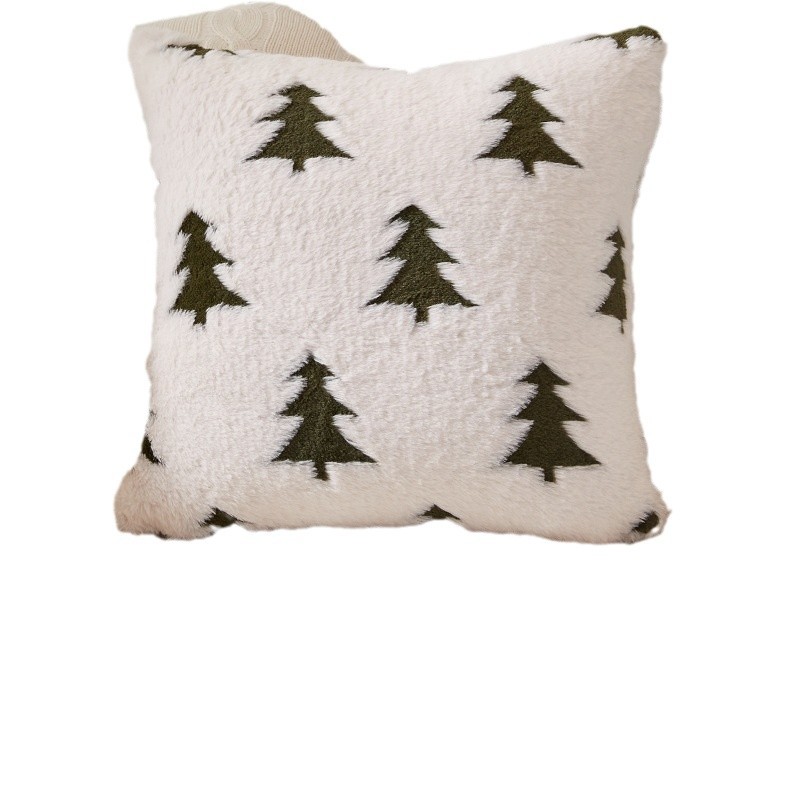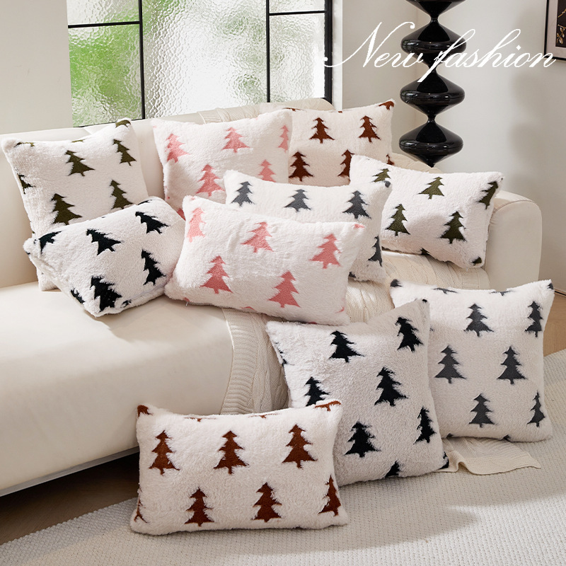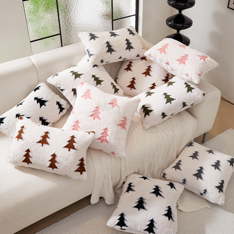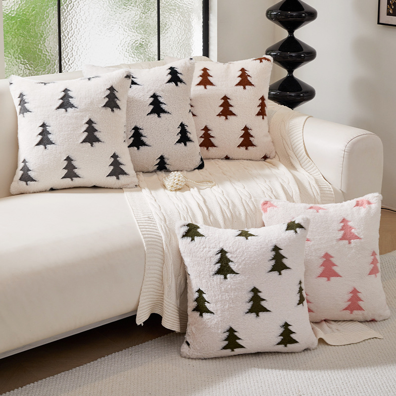 双面绒抱枕套客厅短毛绒提花圣诞节装饰抱枕靠垫松树装饰靠枕套
