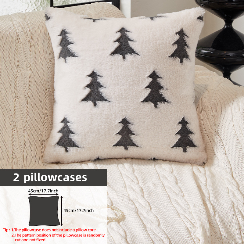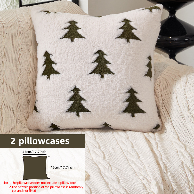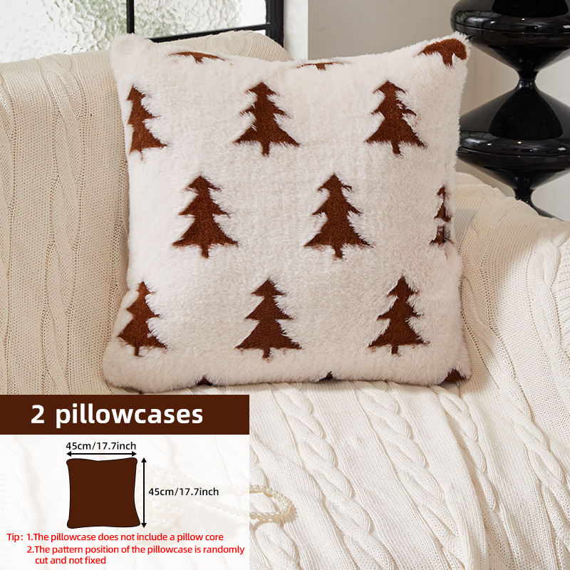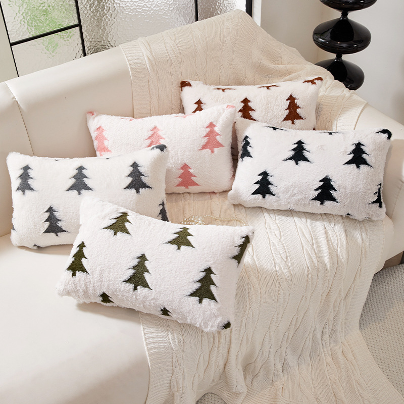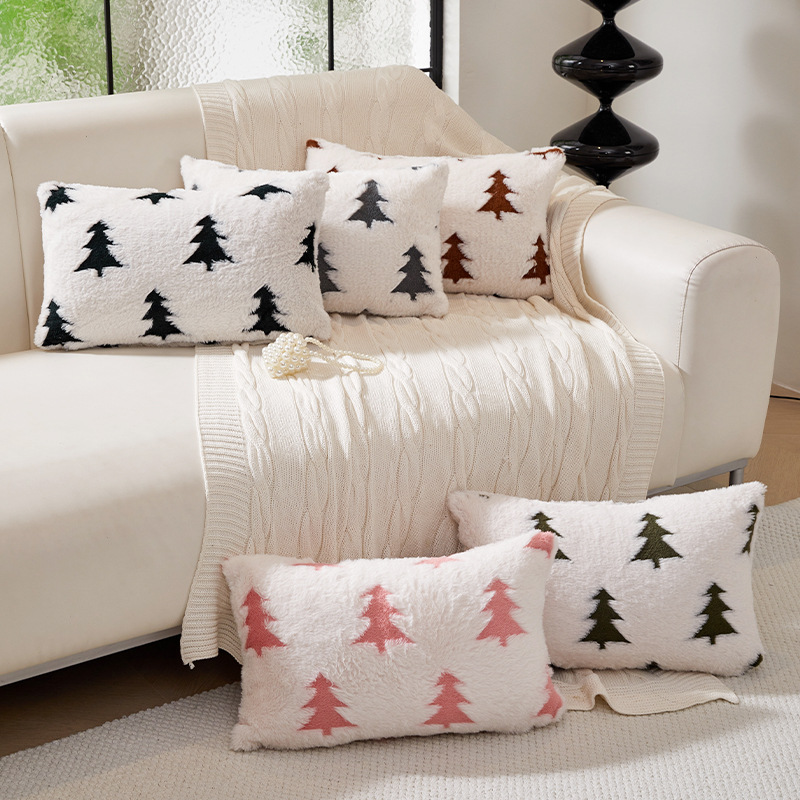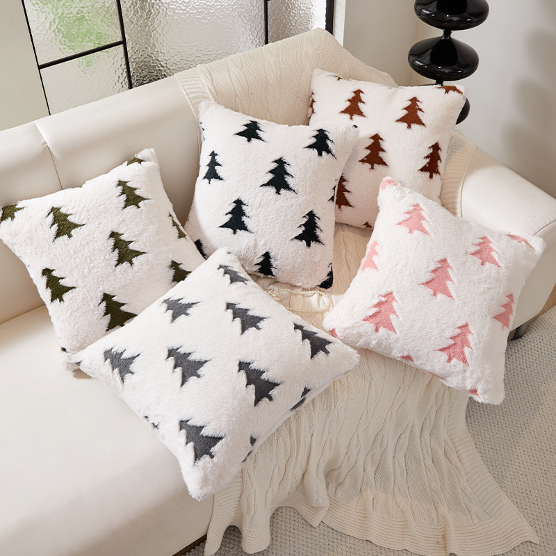 双面绒抱枕套客厅短毛绒提花圣诞节装饰抱枕靠垫松树装饰靠枕套
