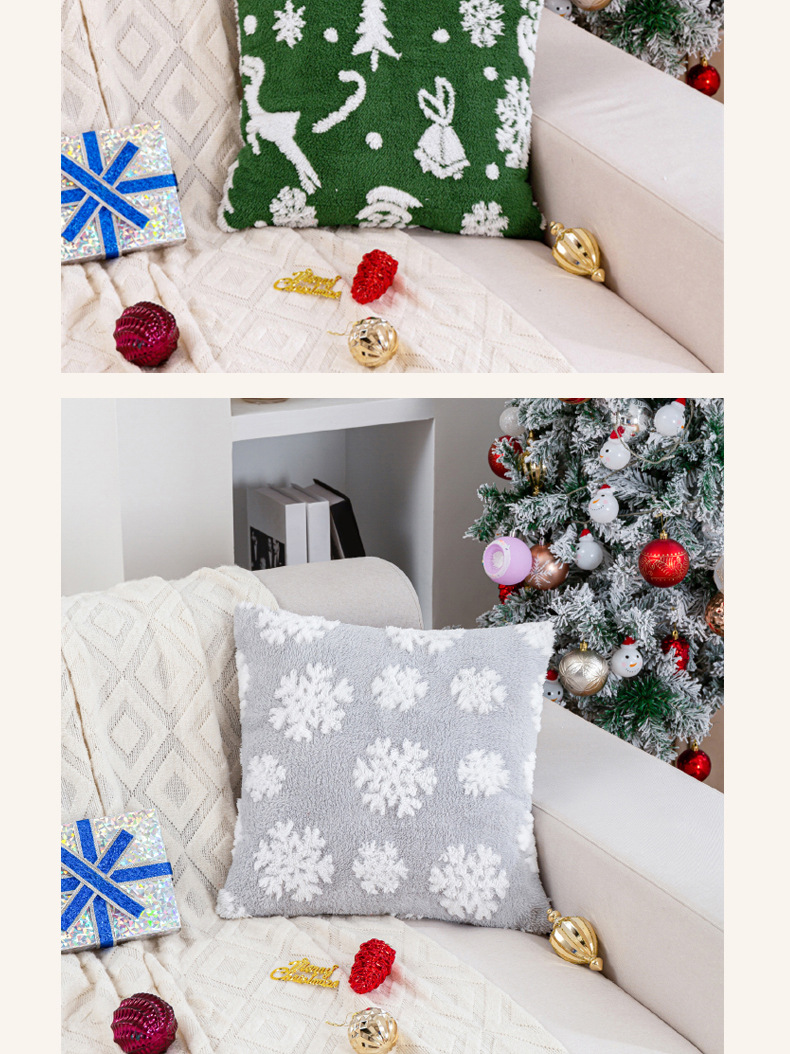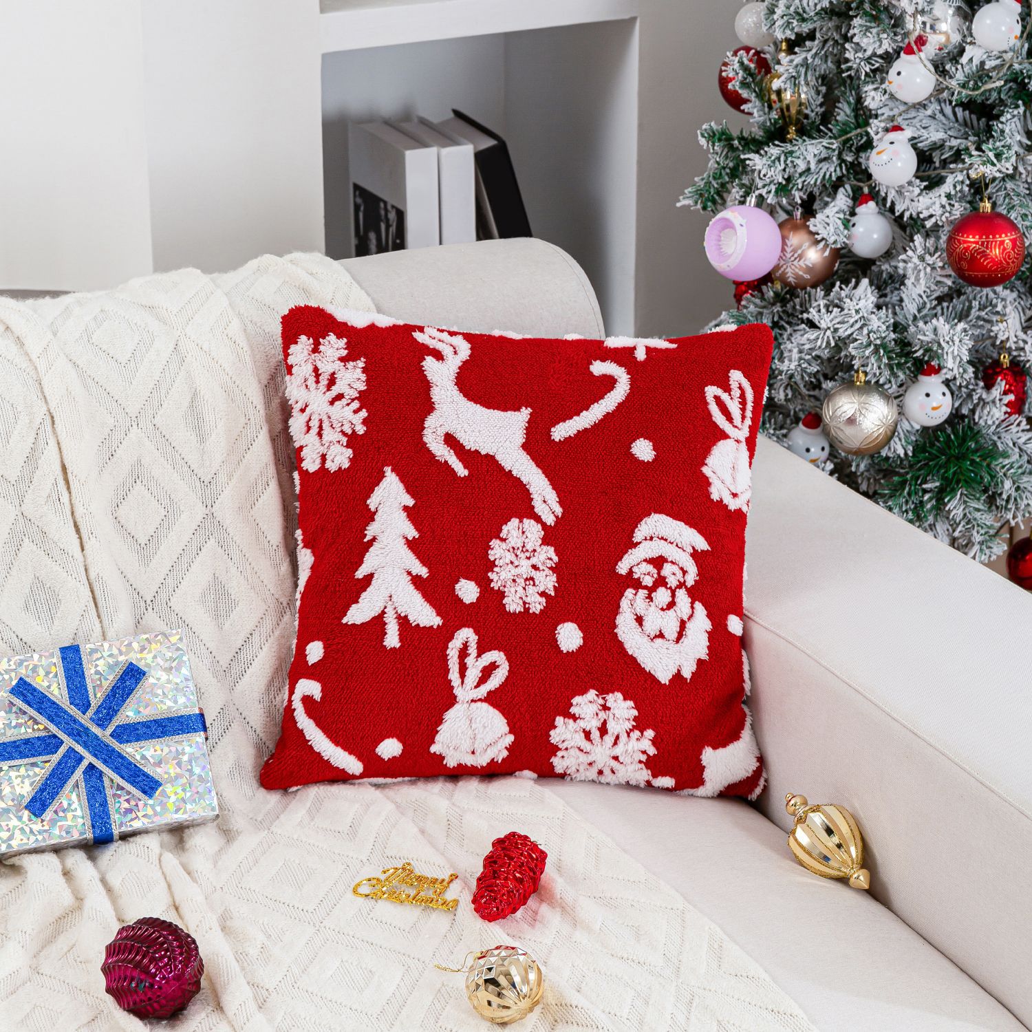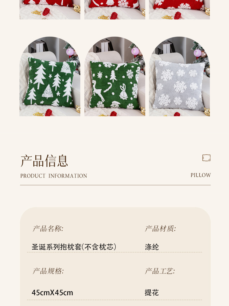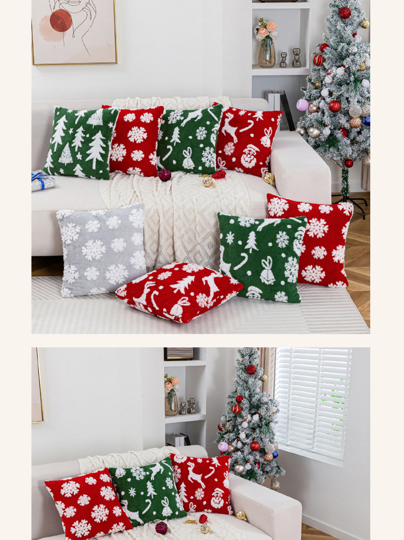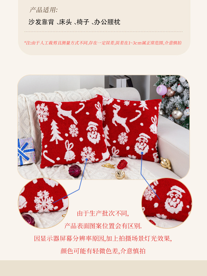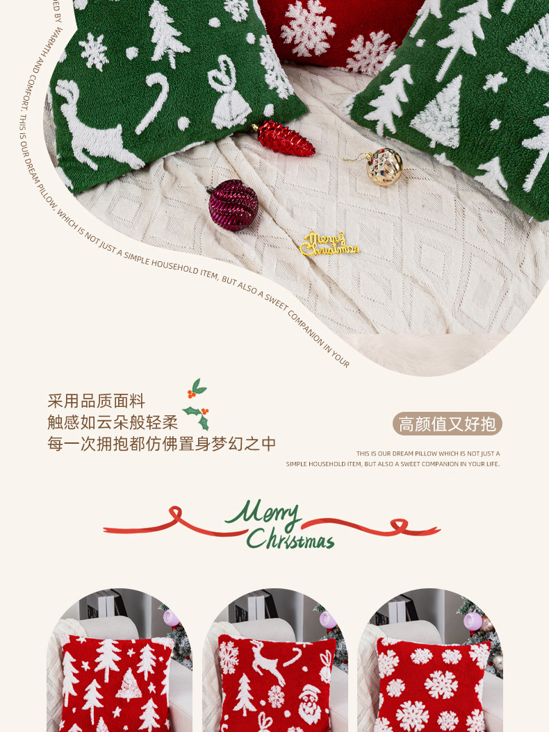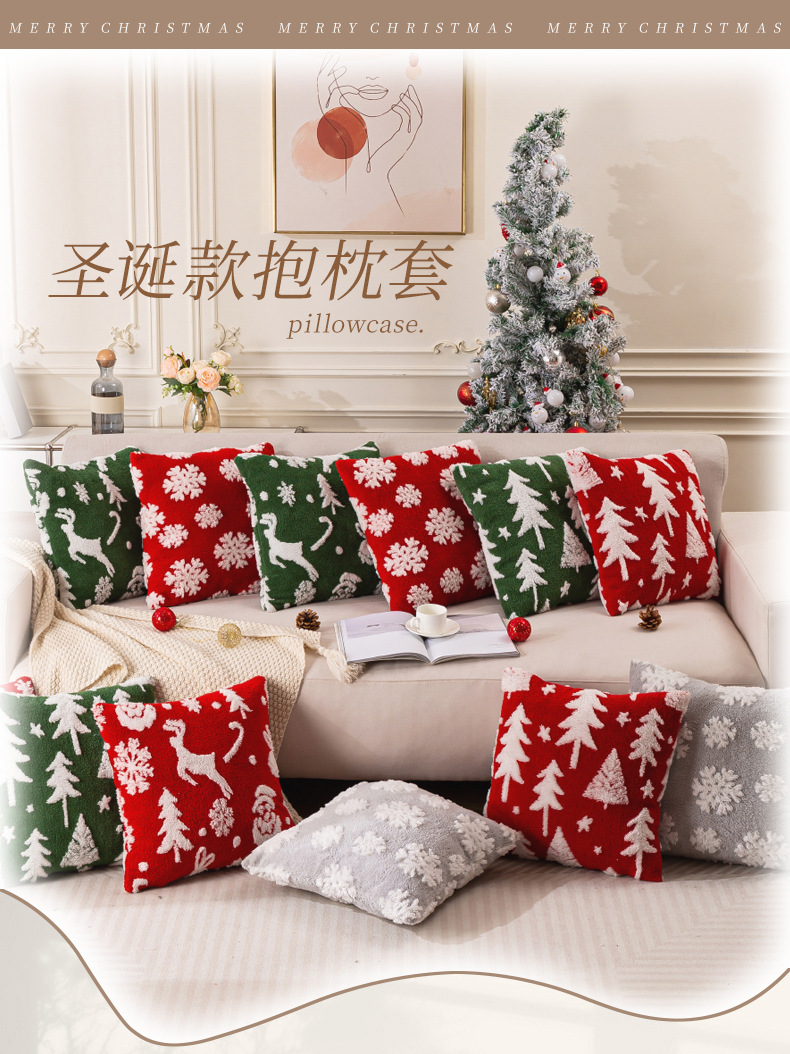 圣诞节毛绒抱枕套圣诞树雪花圣诞老人提花抱枕时尚简约沙发靠垫套