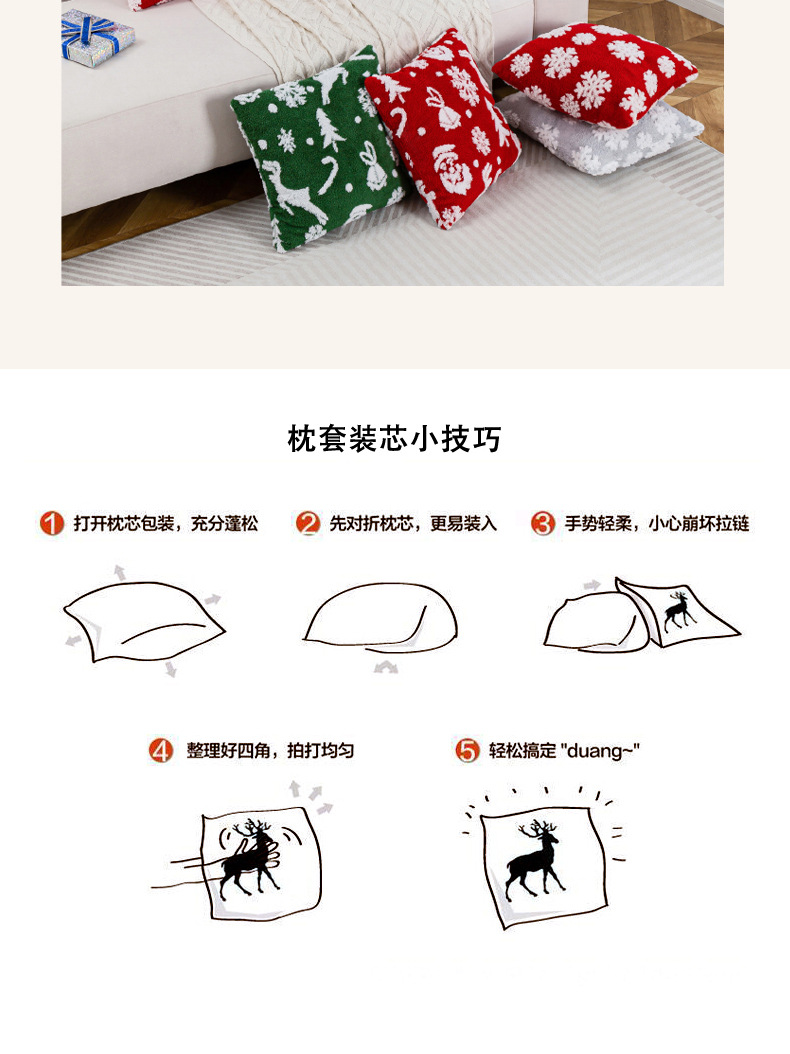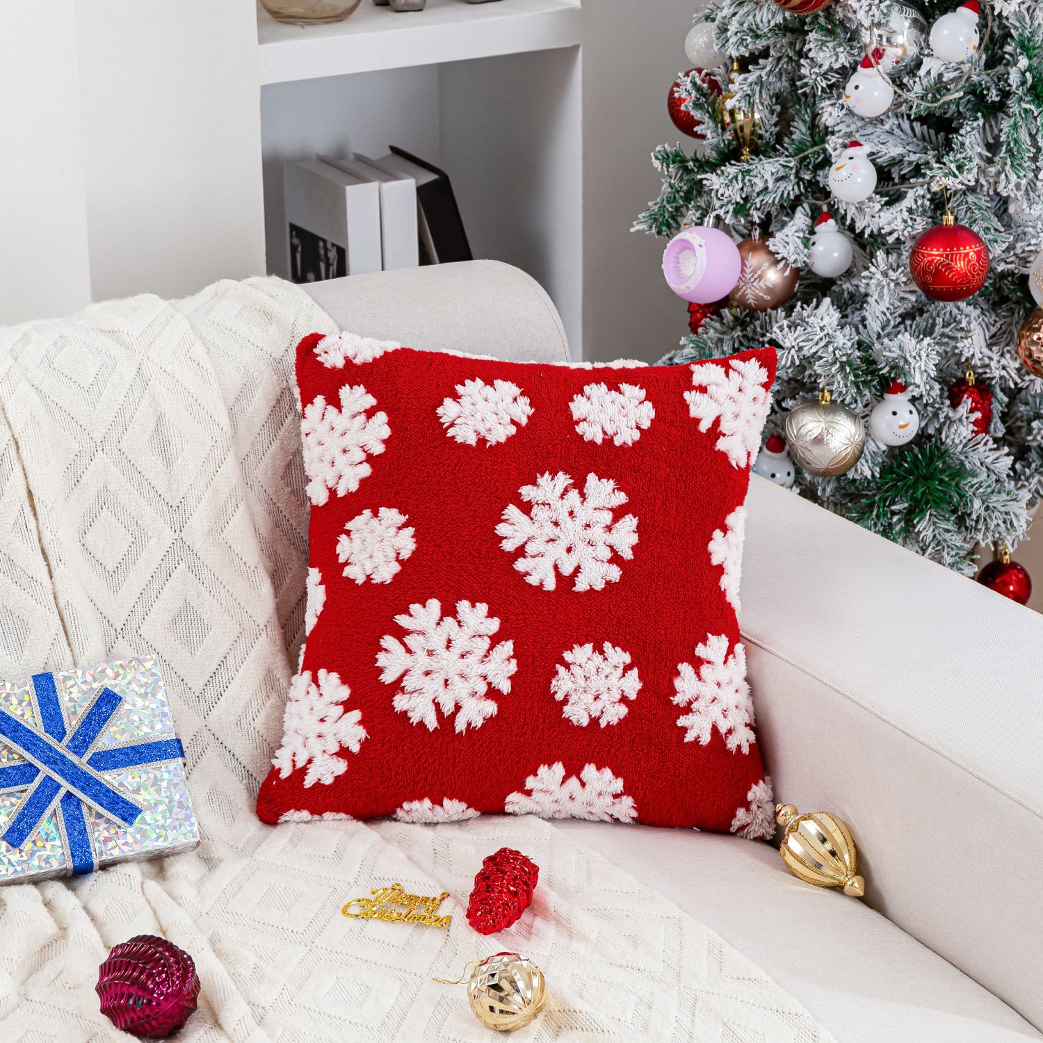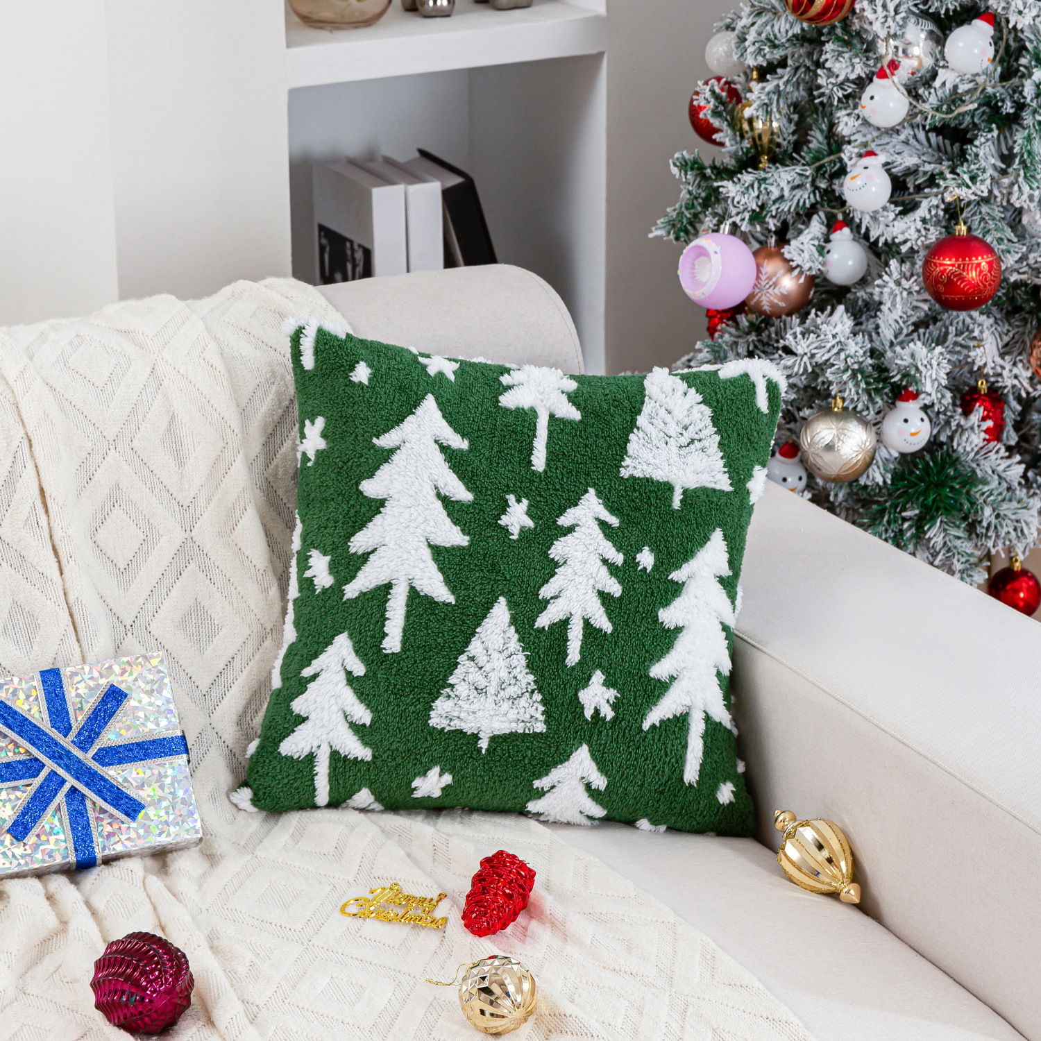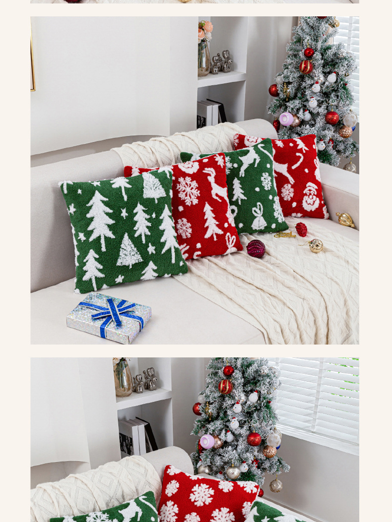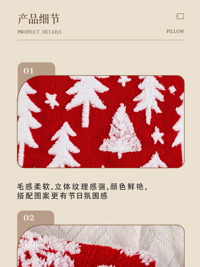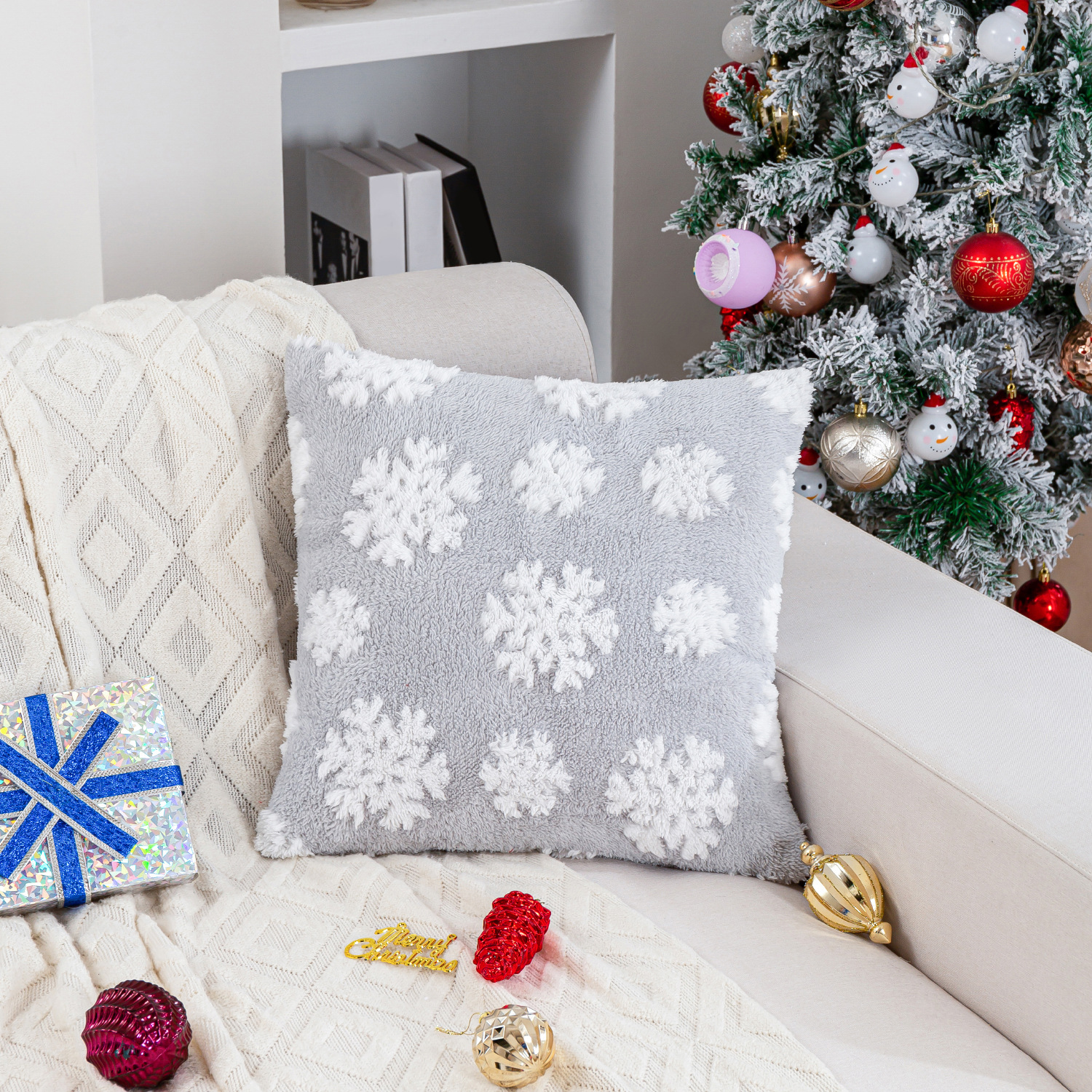 圣诞节毛绒抱枕套圣诞树雪花圣诞老人提花抱枕时尚简约沙发靠垫套
