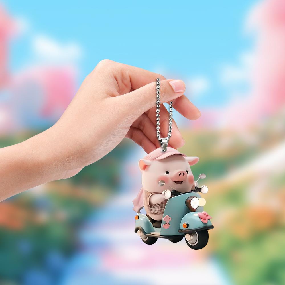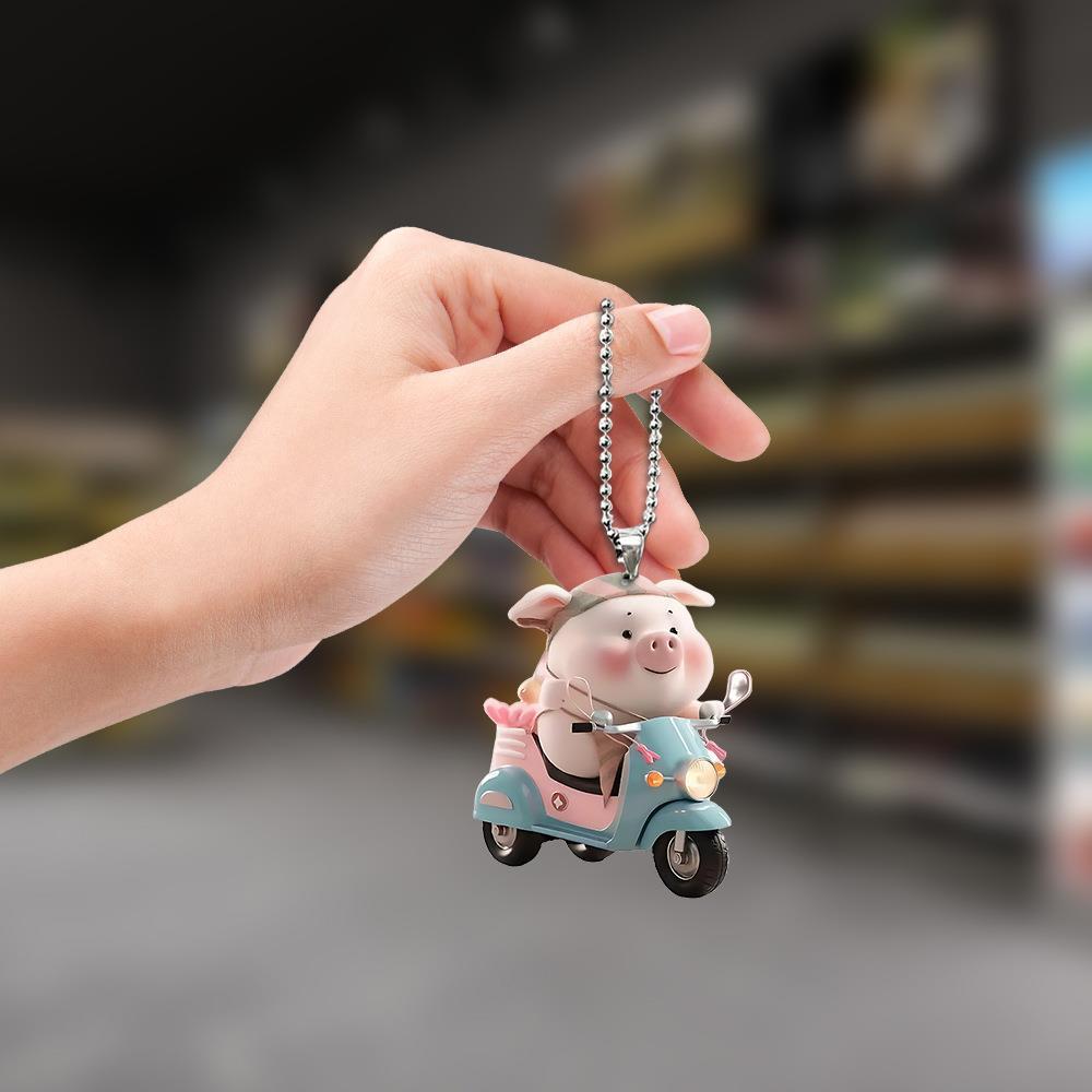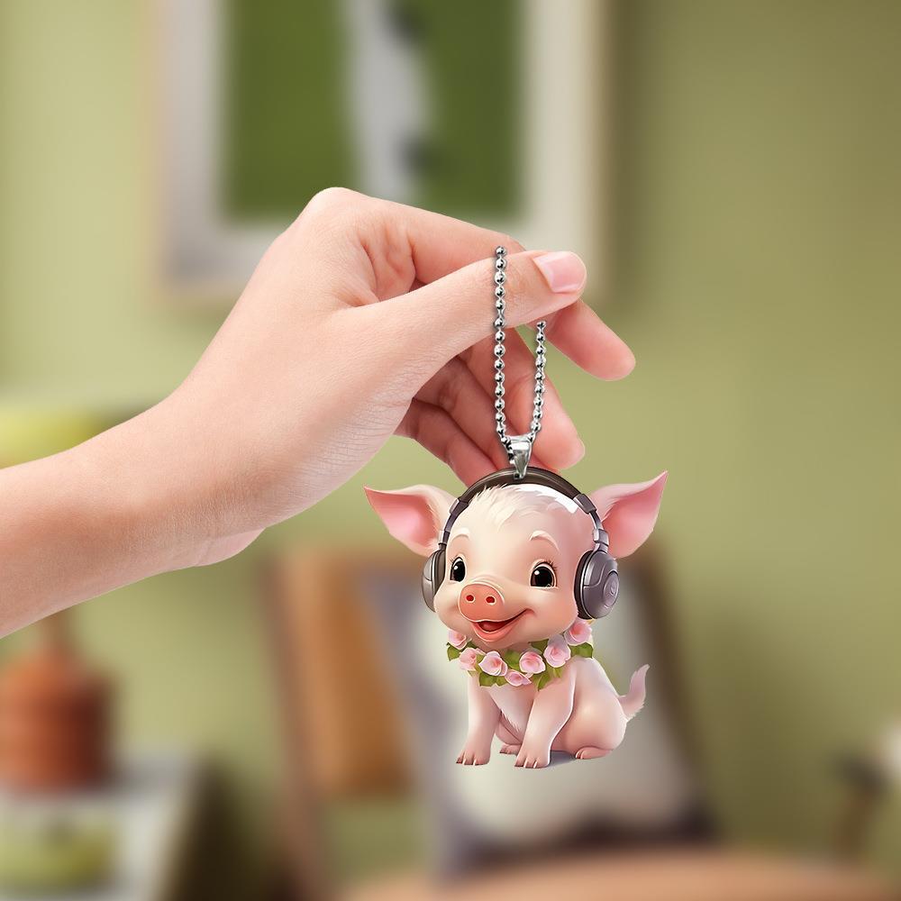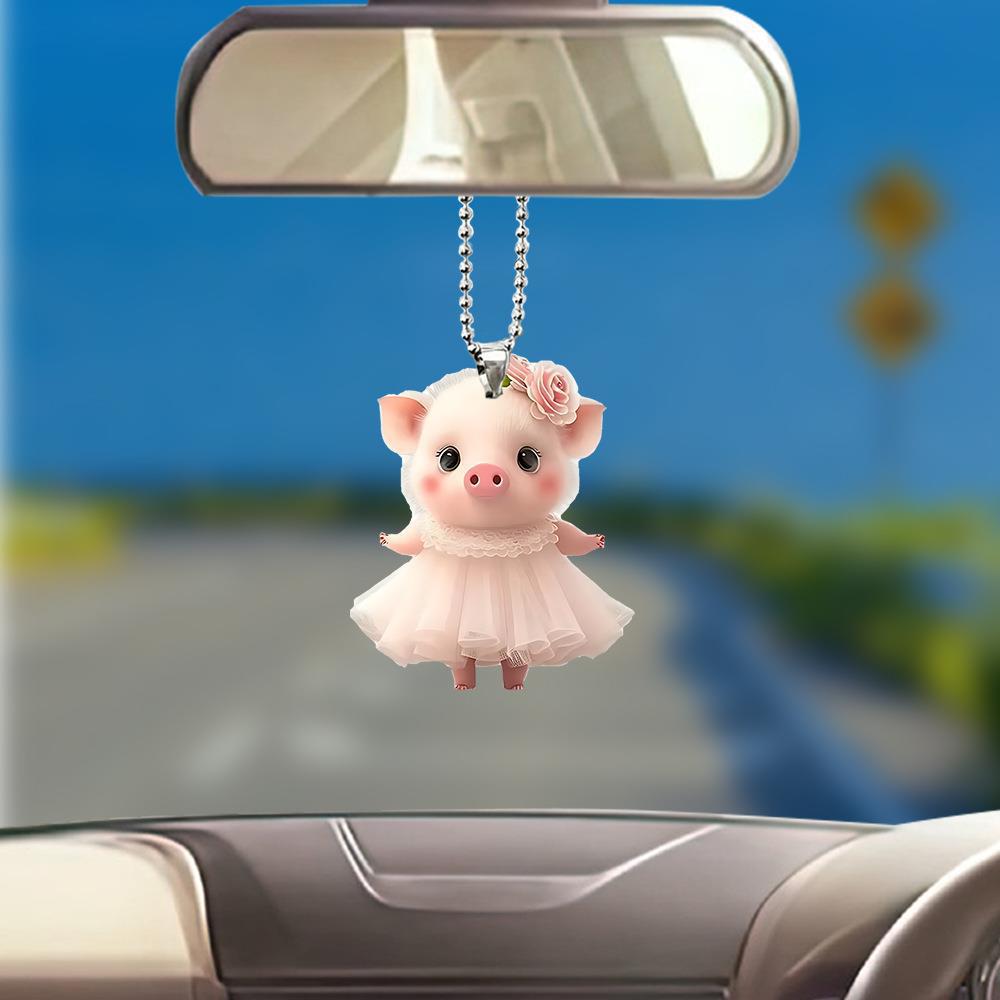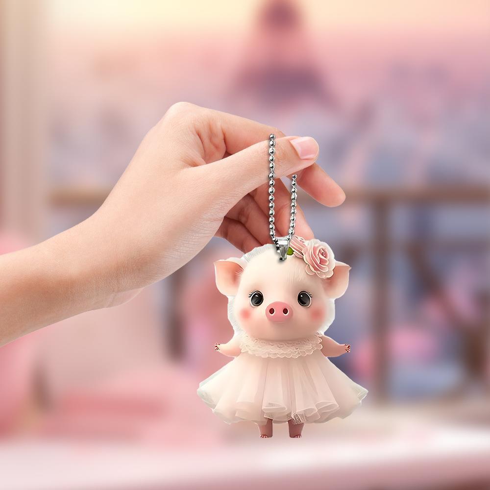 跨境外贸网红爆款可爱小猪车载内饰亚克力挂饰挂件车钥匙挂饰批发