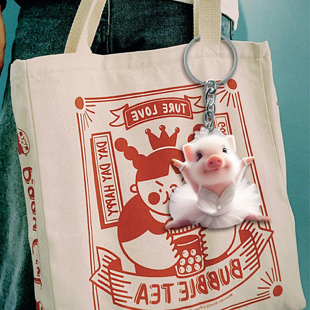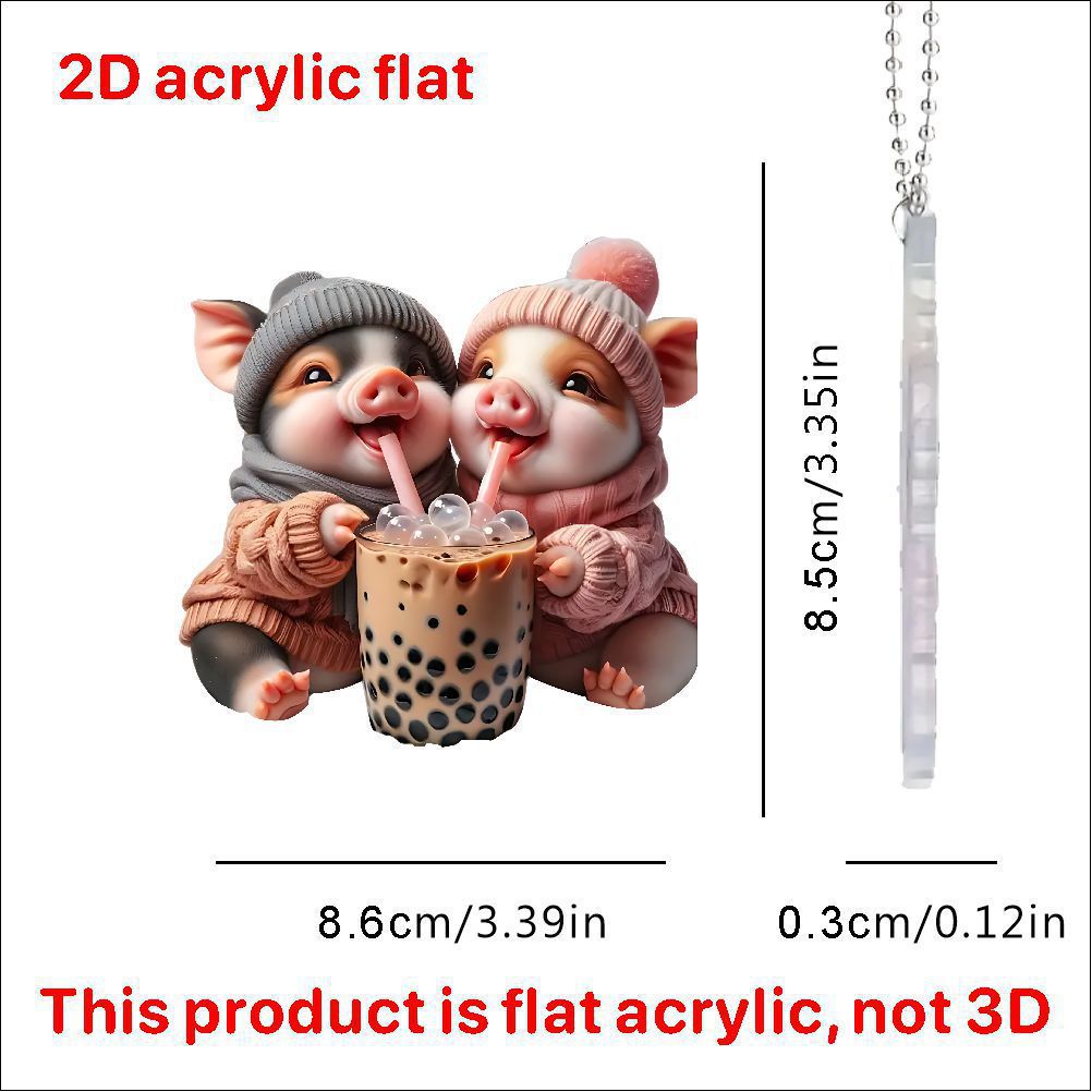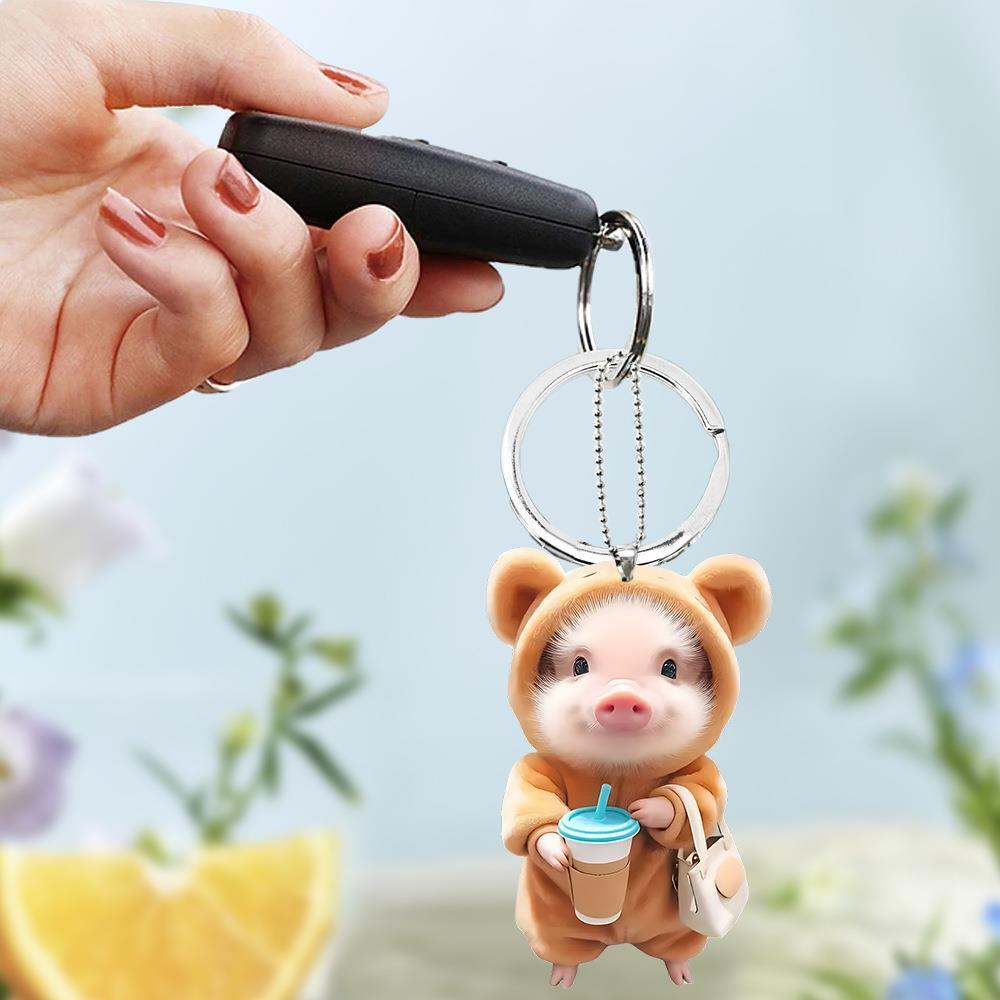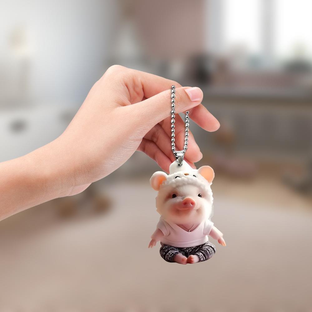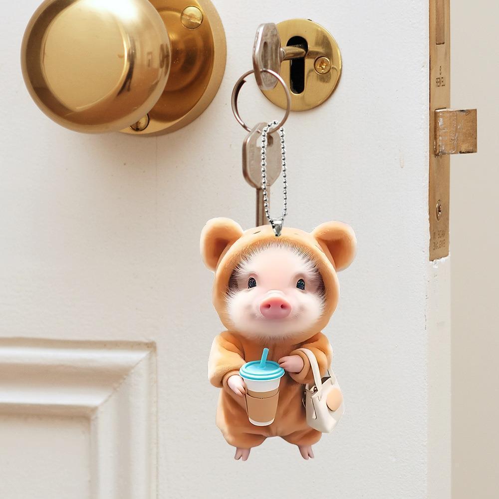 跨境外贸网红爆款可爱小猪车载内饰亚克力挂饰挂件车钥匙挂饰批发