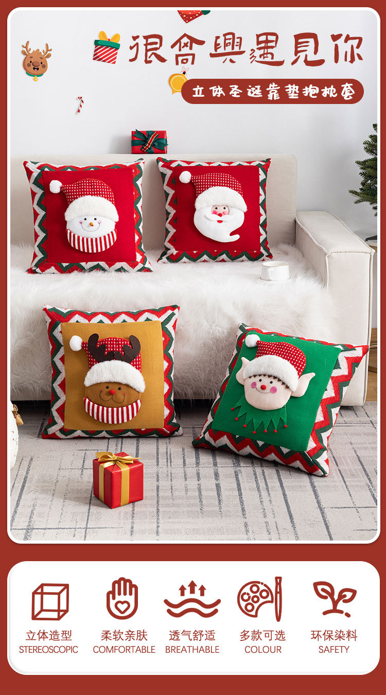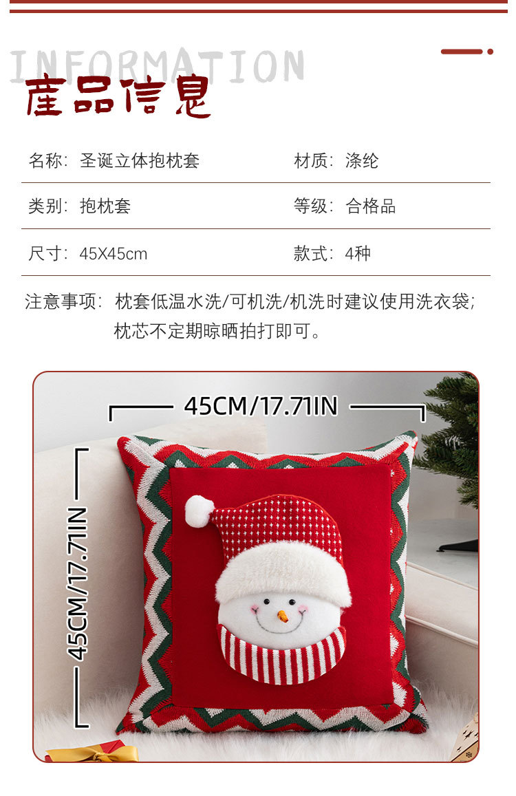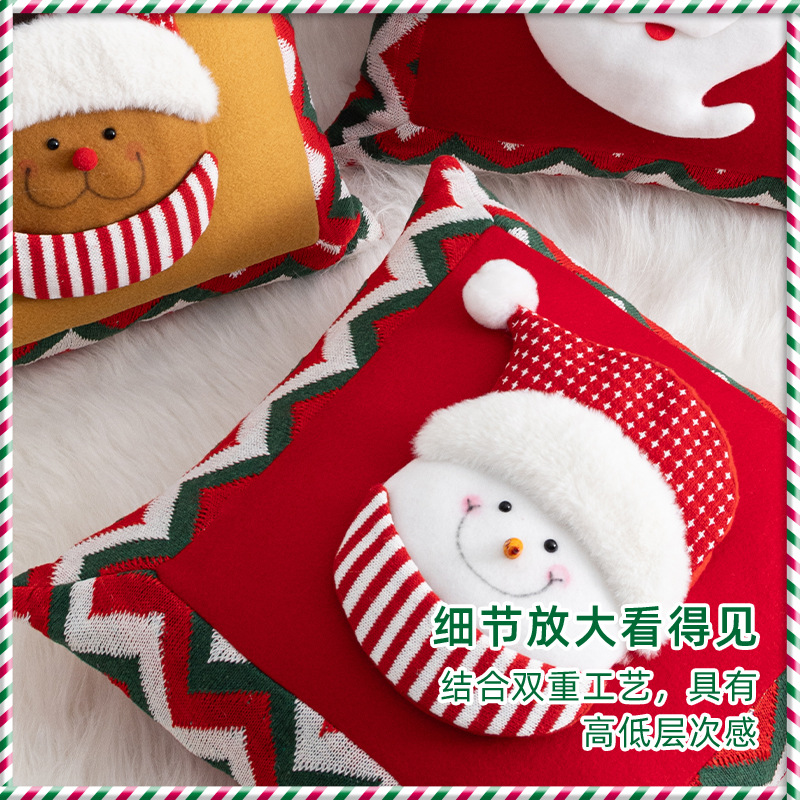 跨境新款圣诞节立体抱枕套可爱雪人装饰客厅沙发靠垫靠枕套不含芯