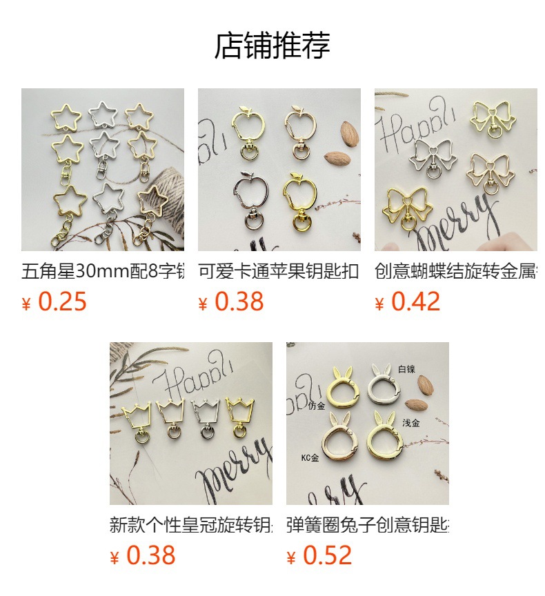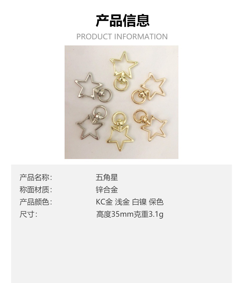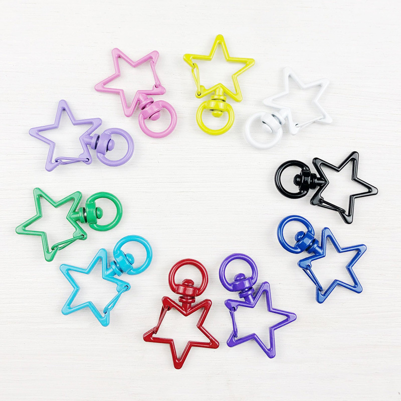 电镀彩色五角星扣钥匙扣 锌合金钥匙扣 公仔挂件配饰炫彩现货