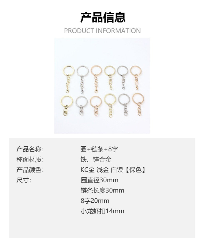 源头工厂30mm扁圈4节链 电镀工艺 钥匙单夹环金保色不易褪色