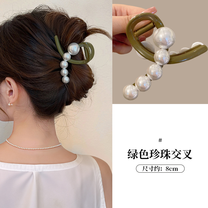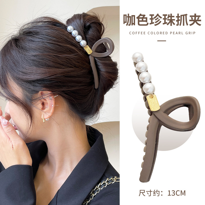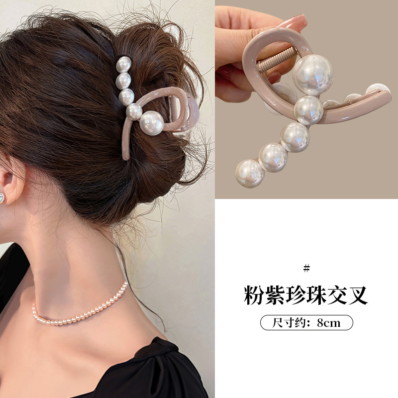 气质超大号珍珠发夹2025新款抓夹女后脑勺盘发鲨鱼夹子头饰