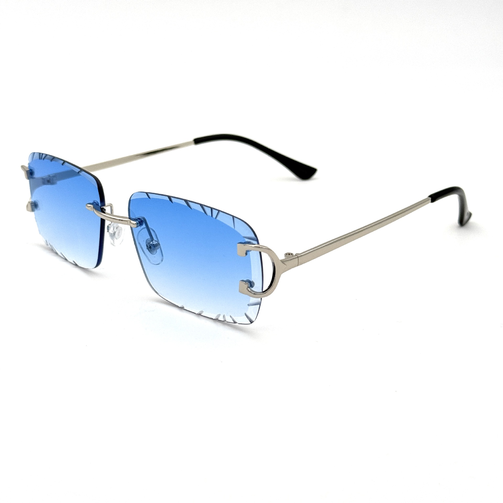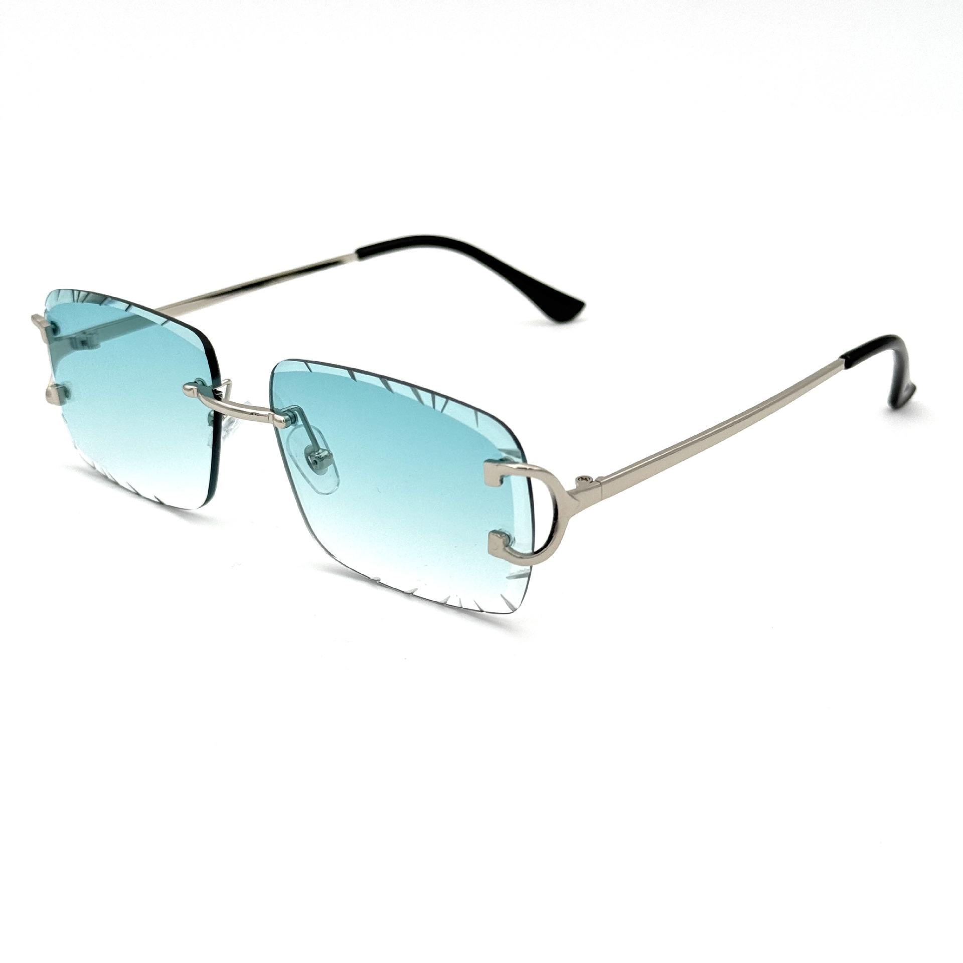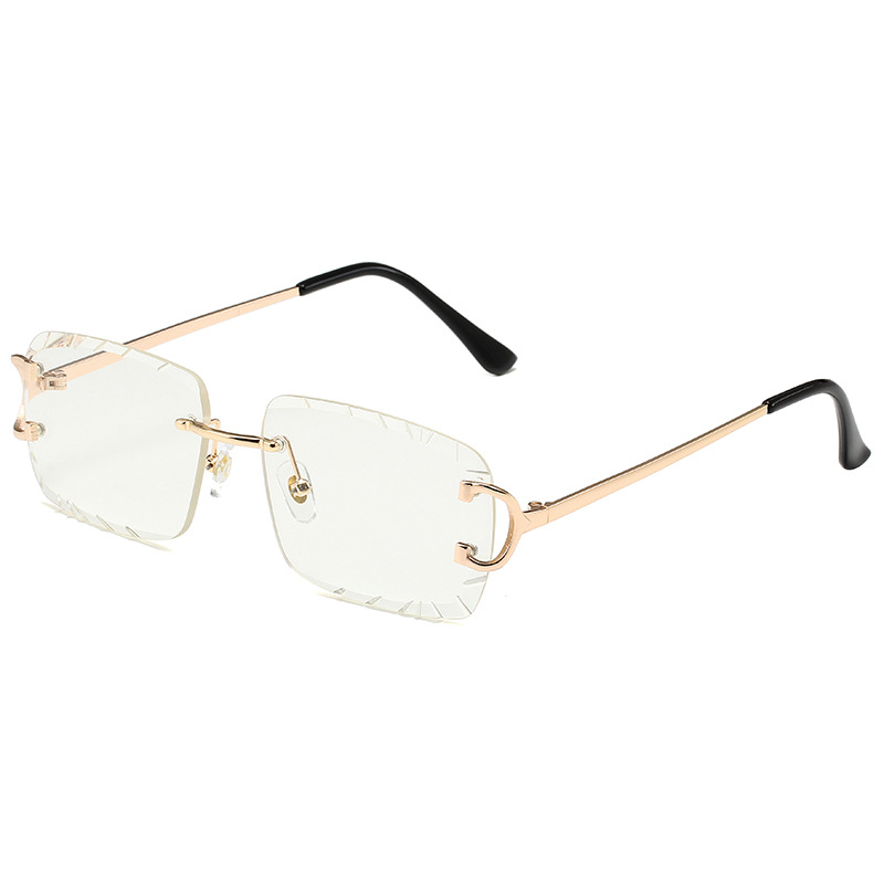 2023无框切边方形倒边太阳镜金属女欧美ins街拍潮流墨镜跨境批发