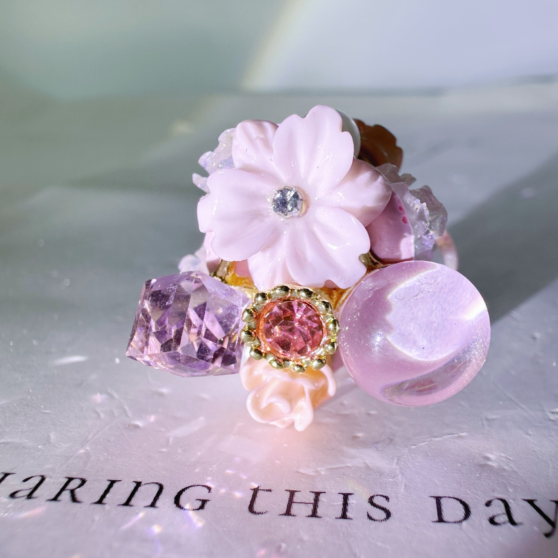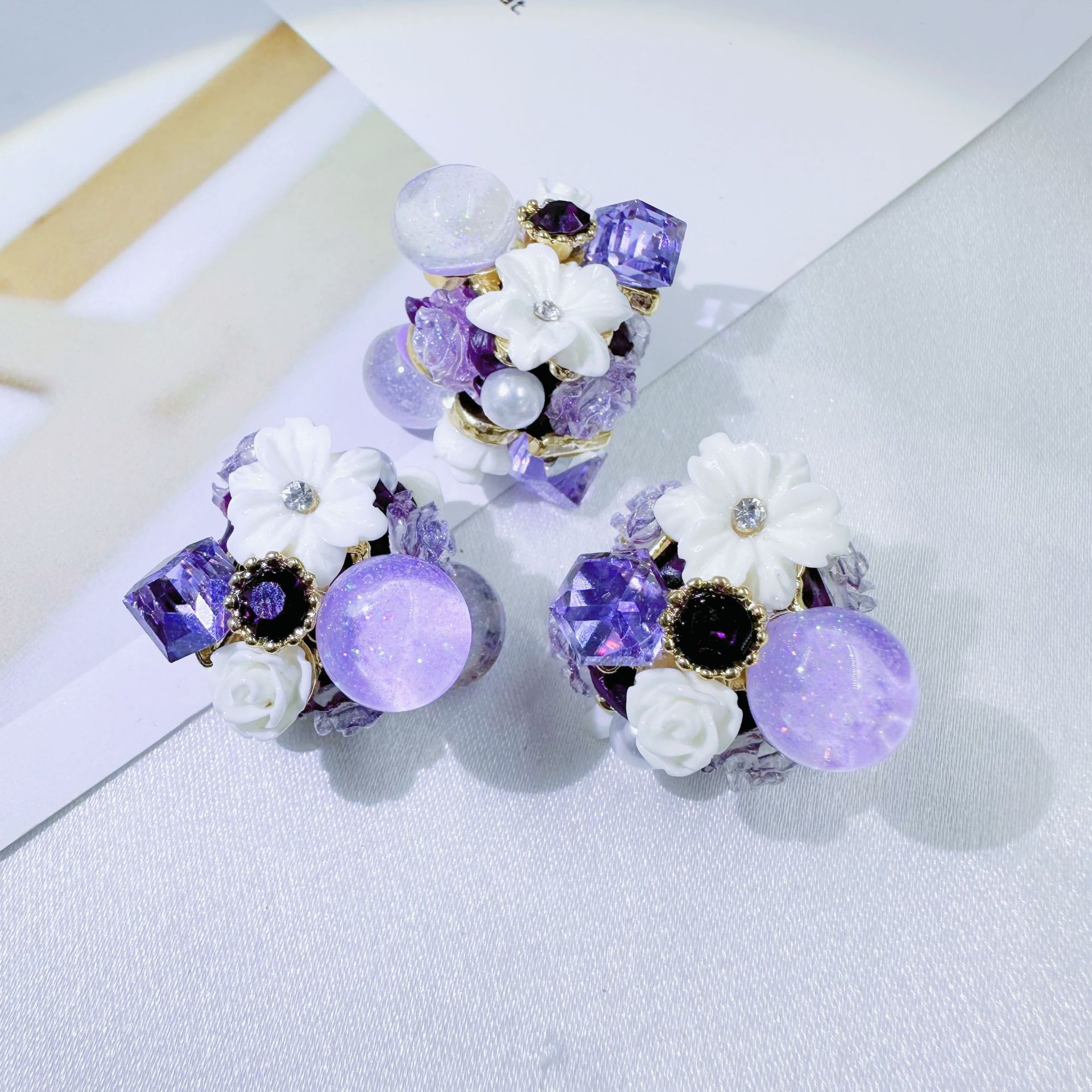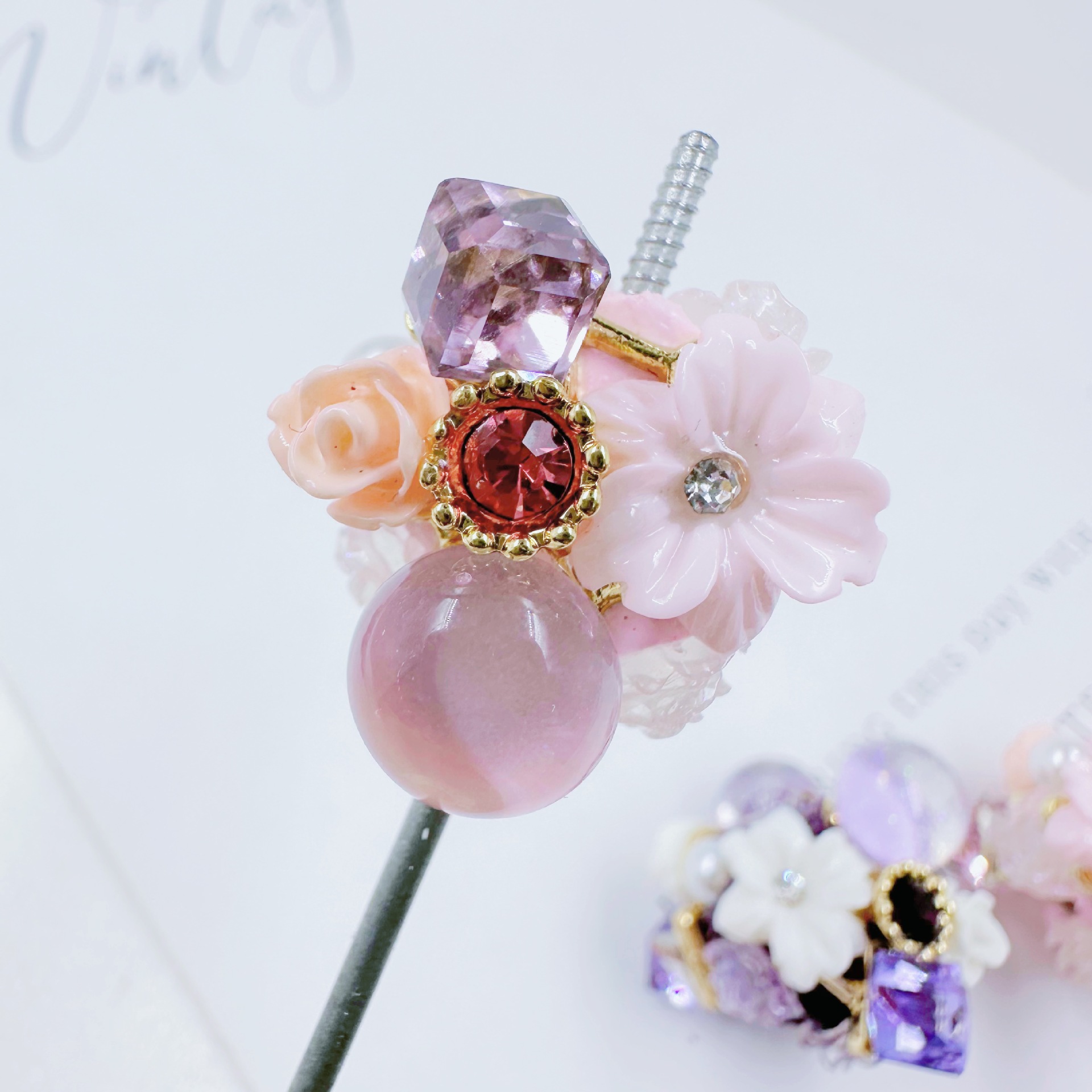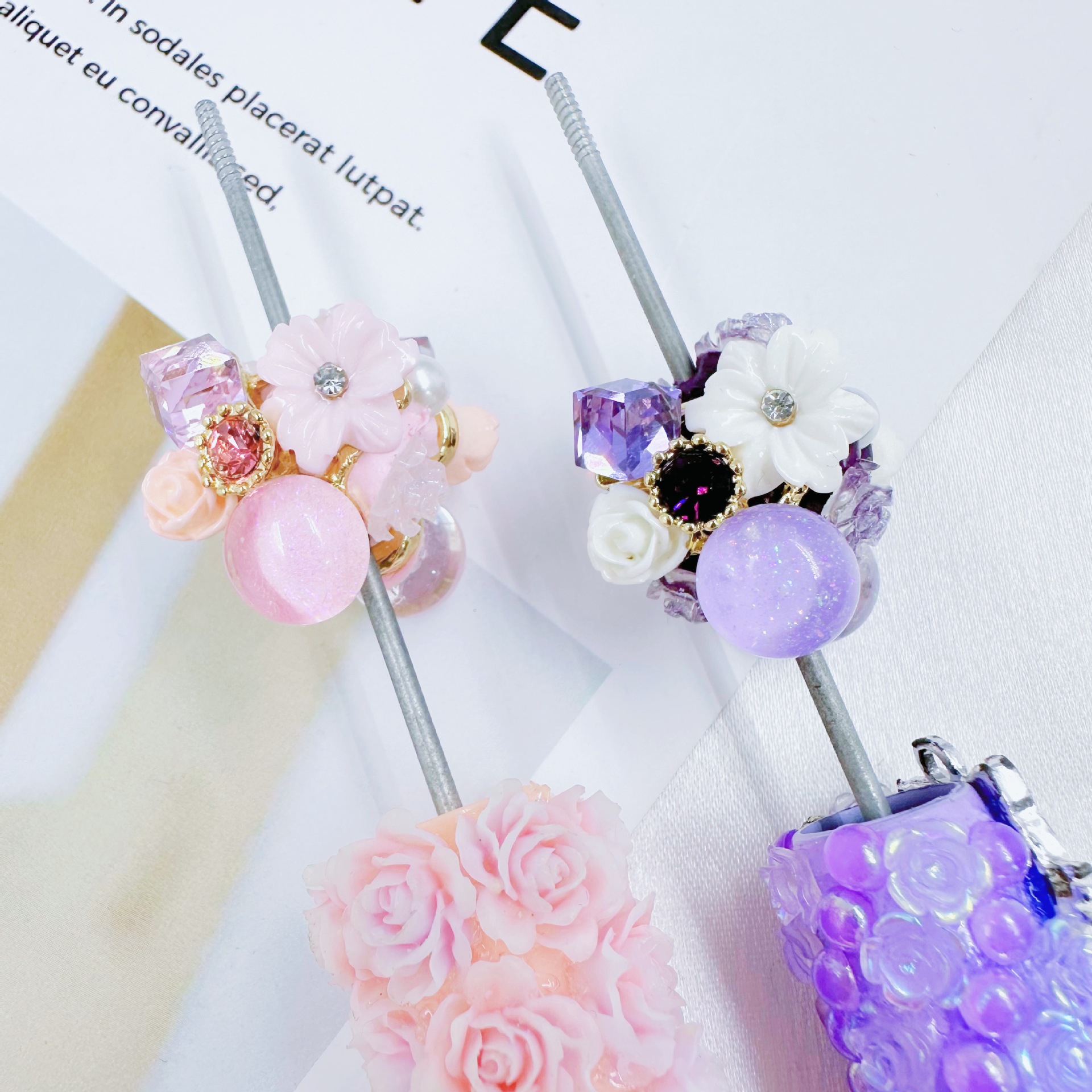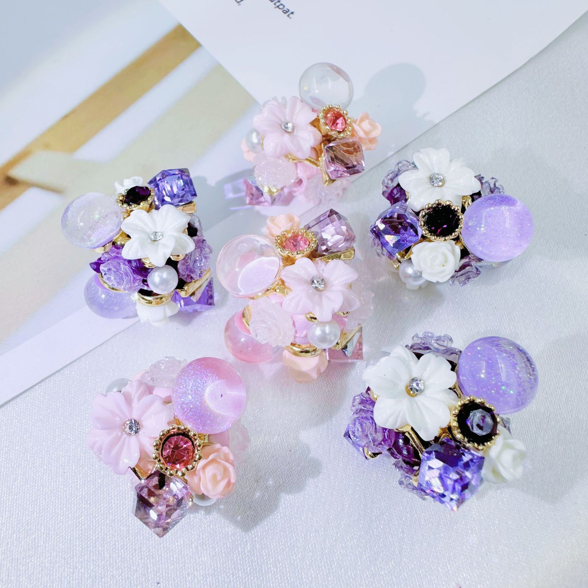 【初浔家】爆款重工珠子配件 花瓣花朵锆石手机链配件diy饰品陶泥