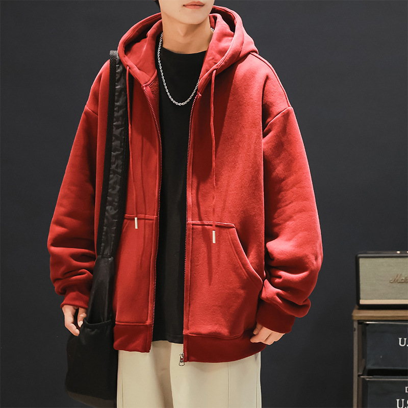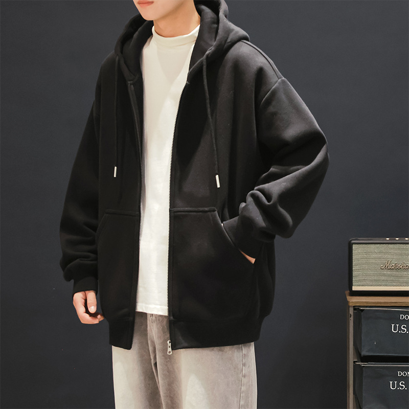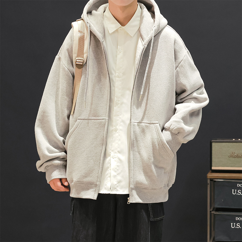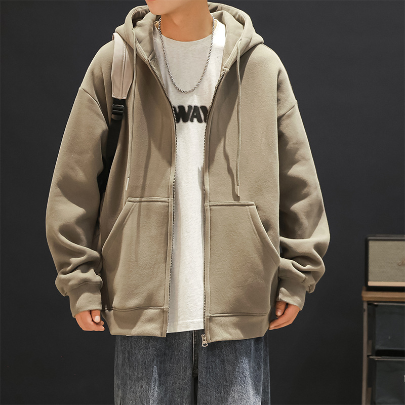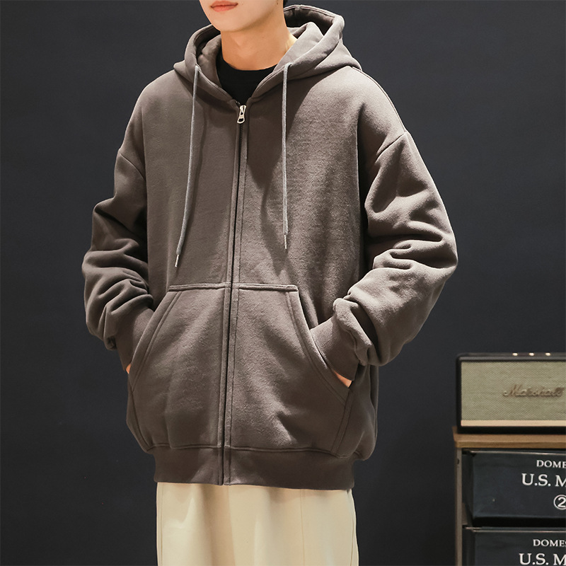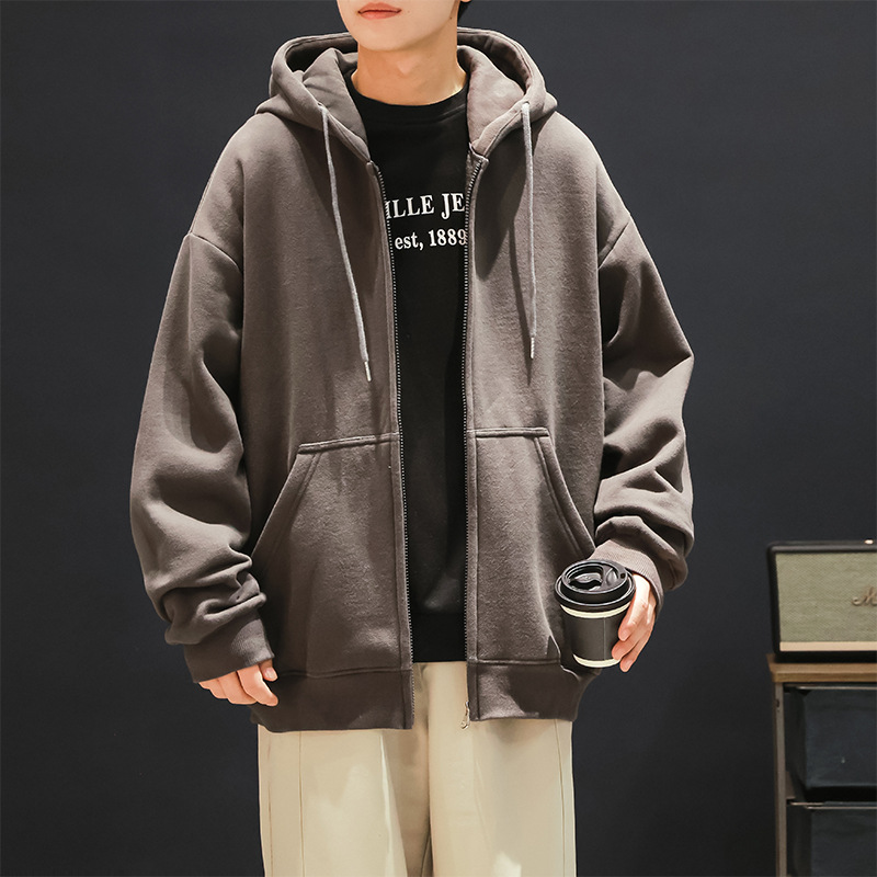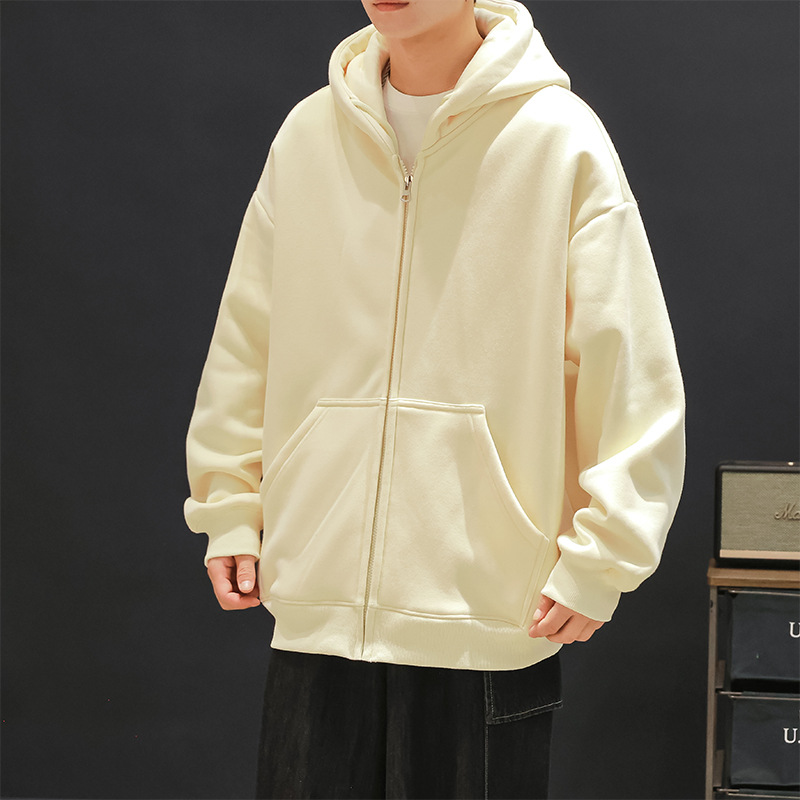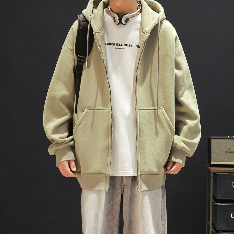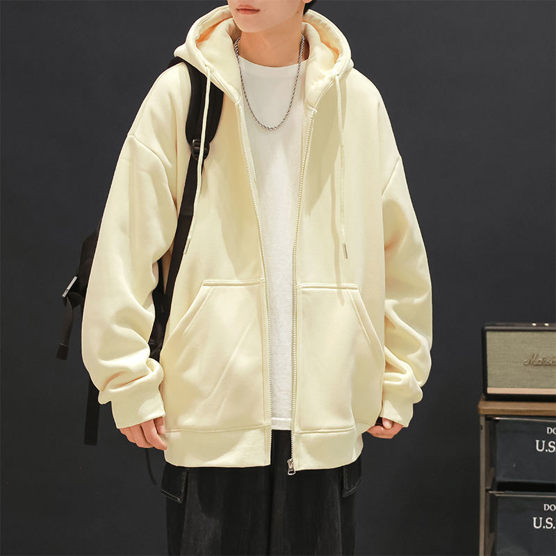 新款2025秋季学院男式卫衣免烫处理开衫长袖青春流行连帽领卫衣