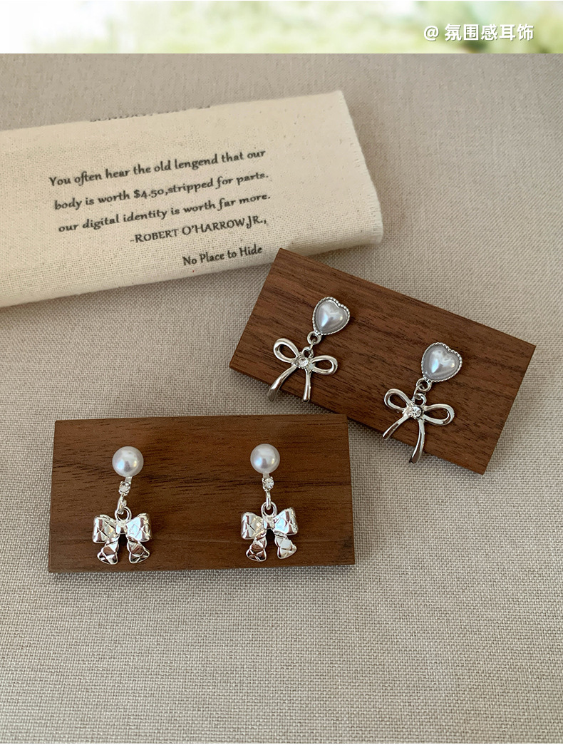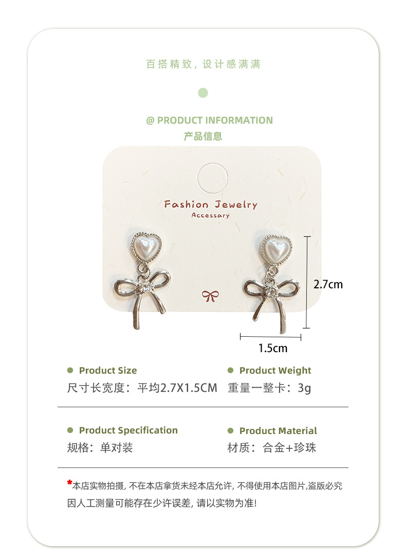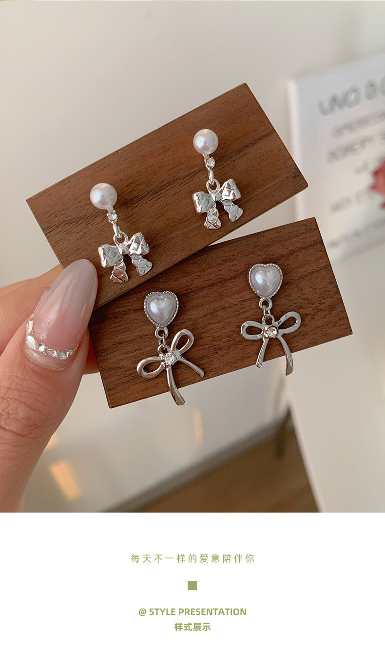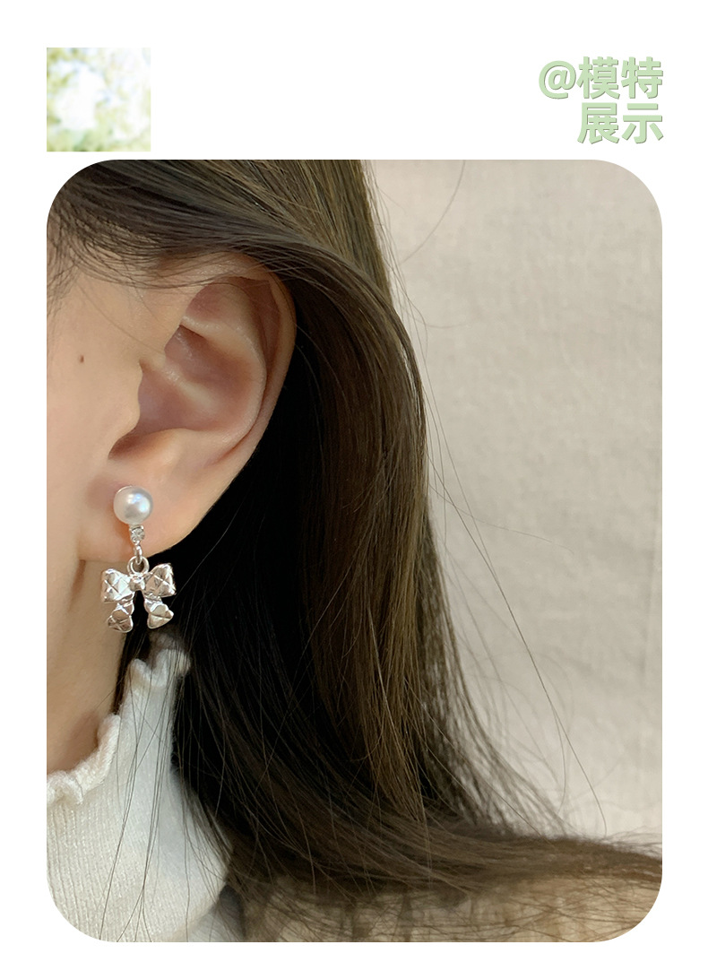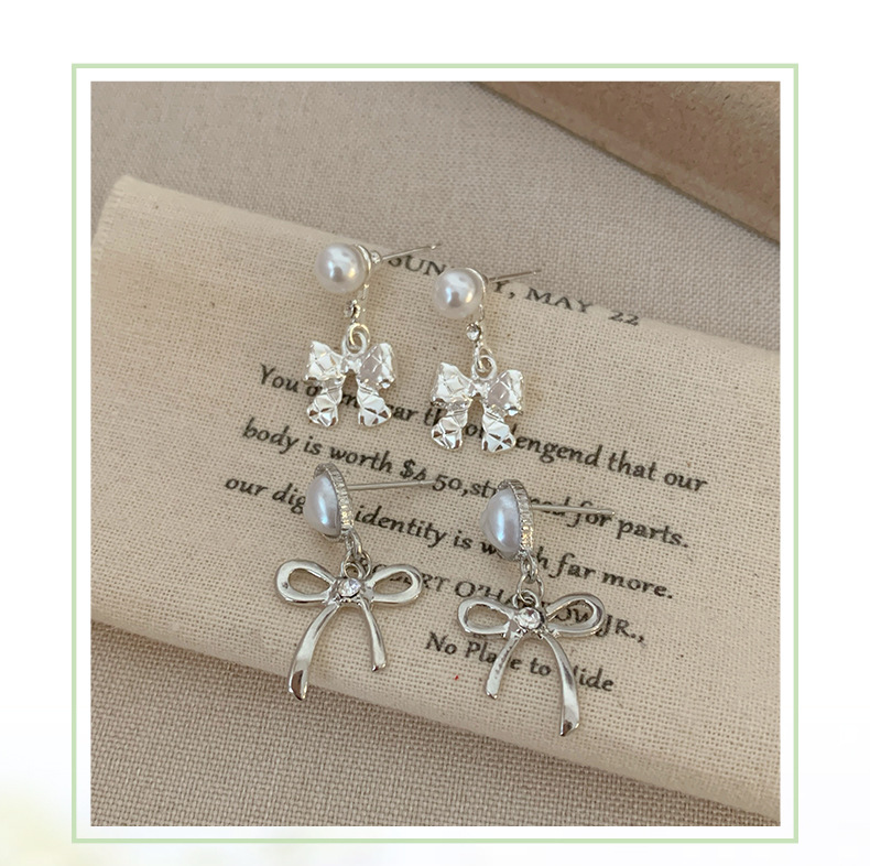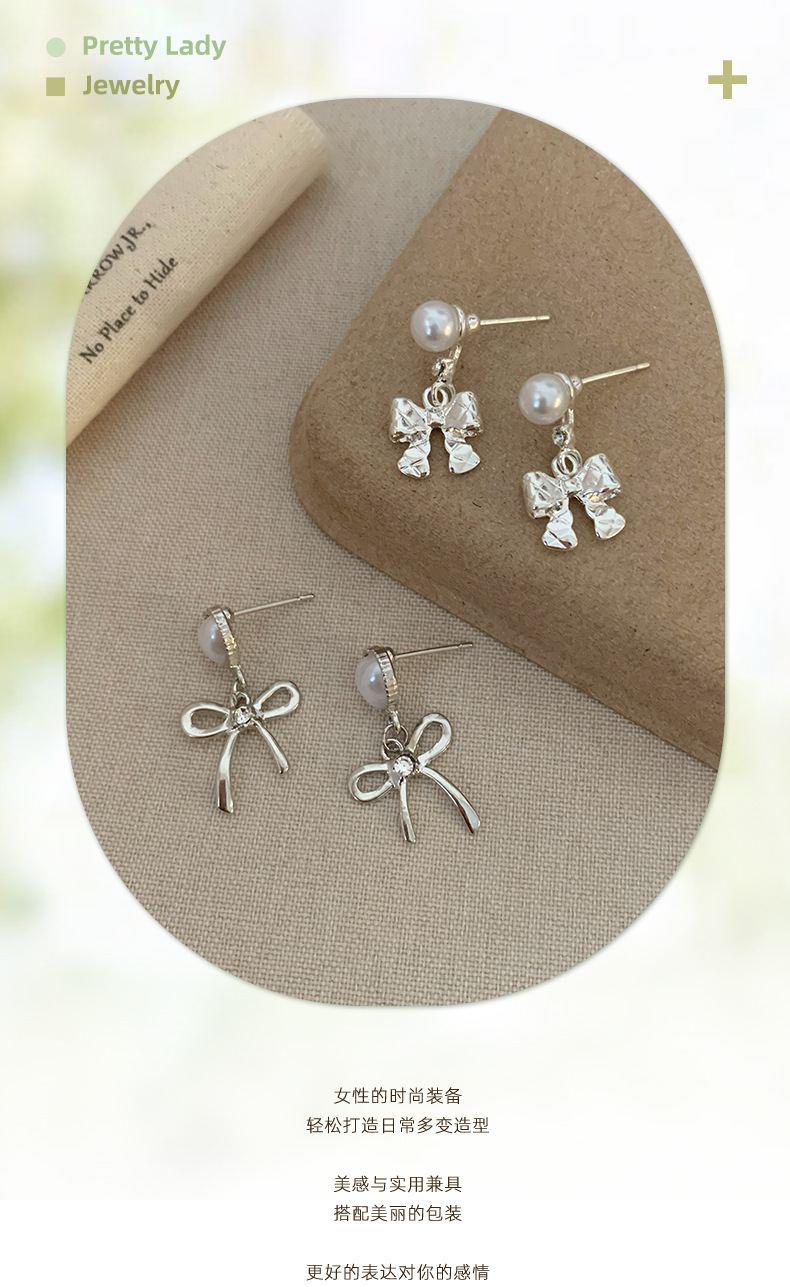 韩版清冷风银色蝴蝶结耳环女银针流苏吊坠精致百搭通勤春季耳环