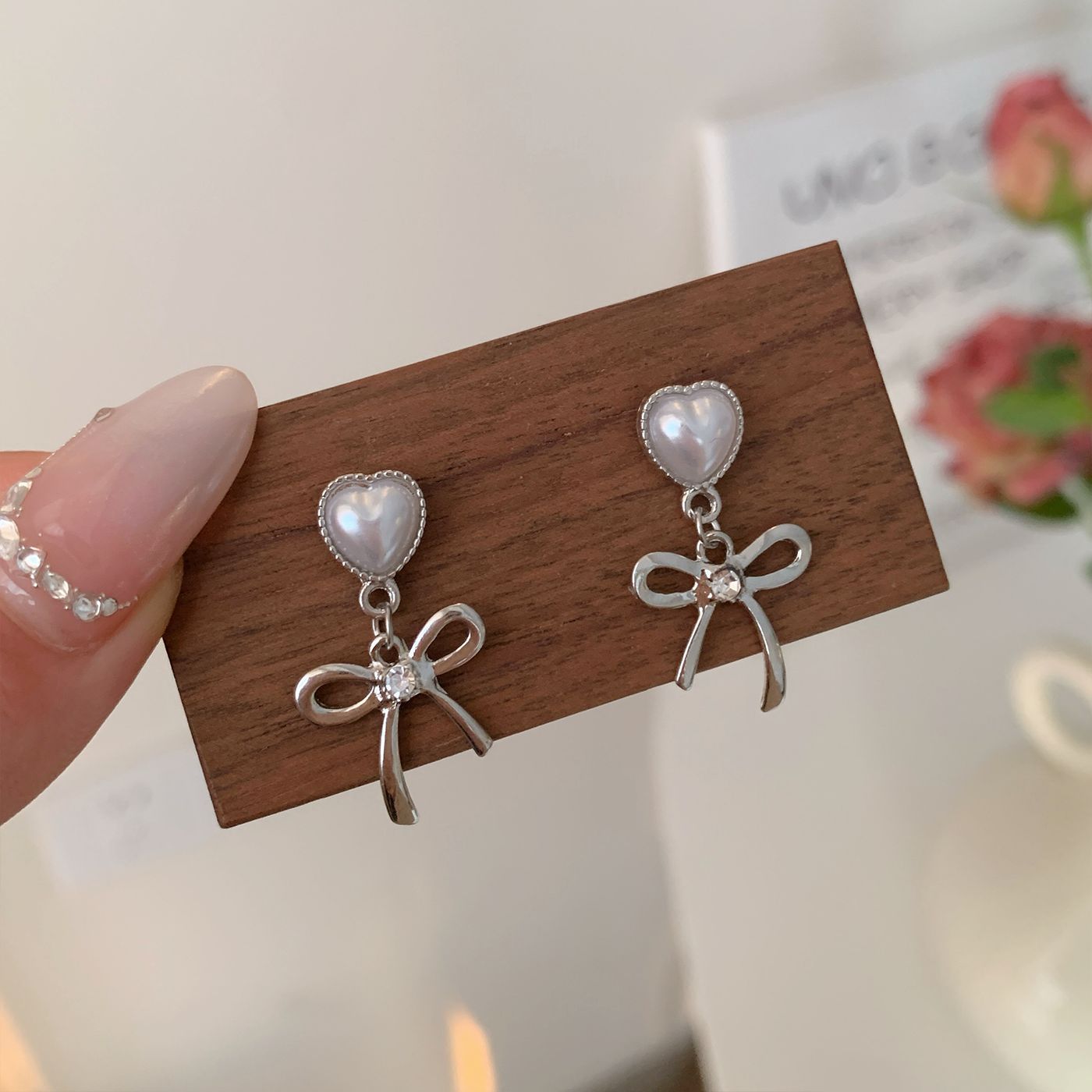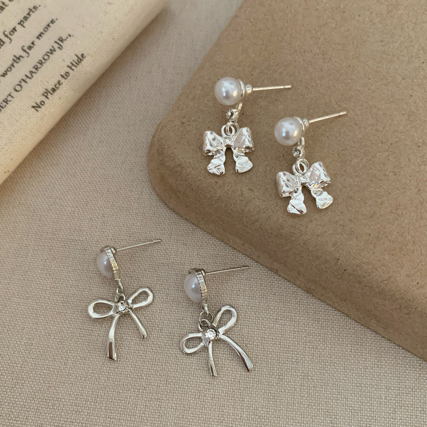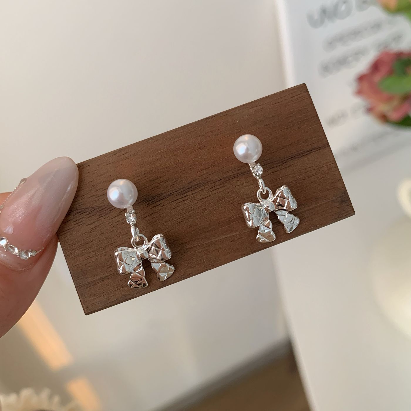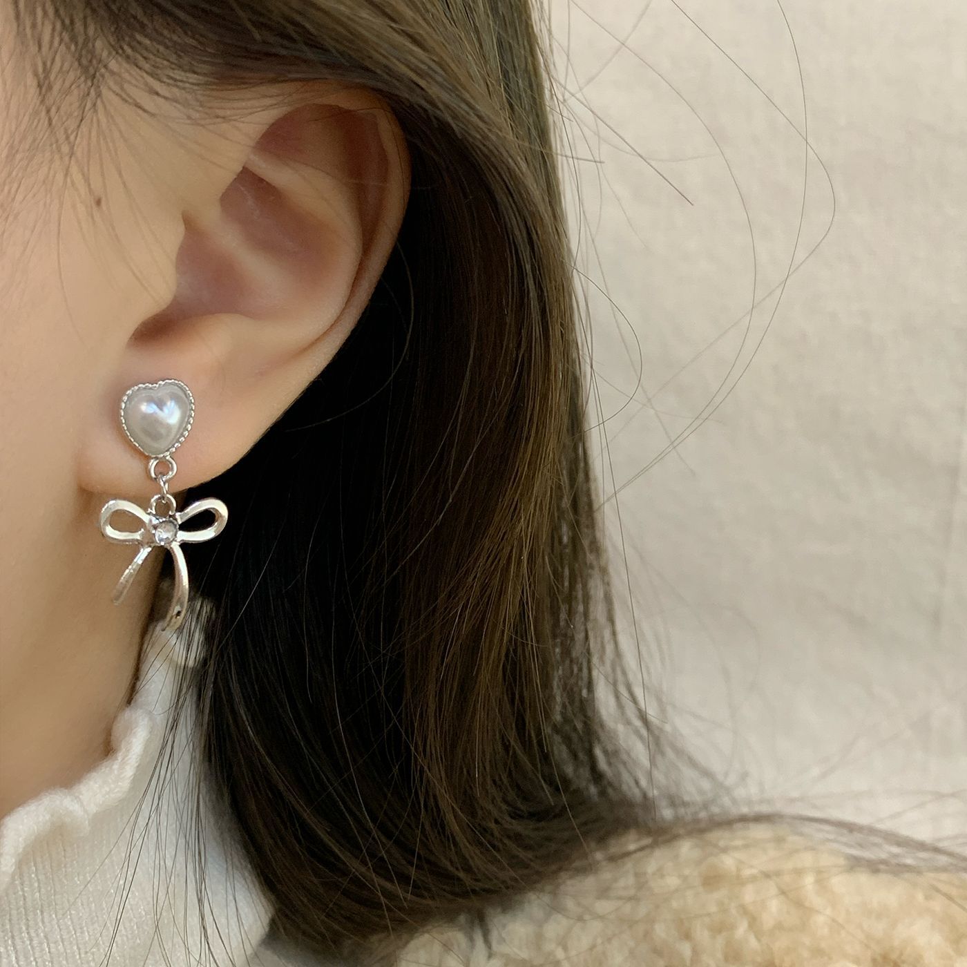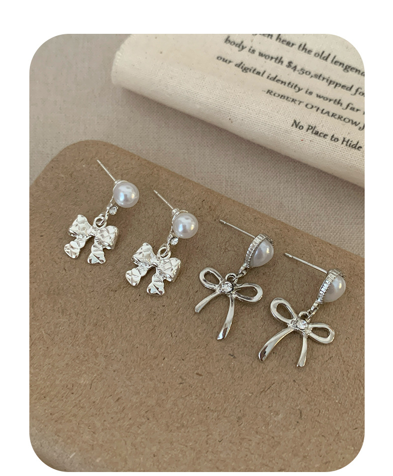 韩版清冷风银色蝴蝶结耳环女银针流苏吊坠精致百搭通勤春季耳环