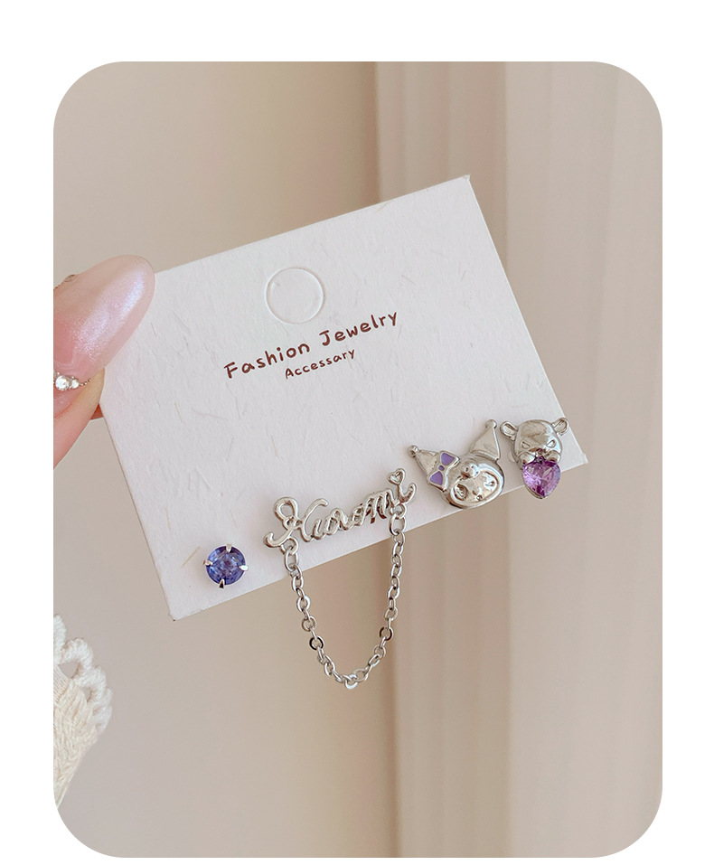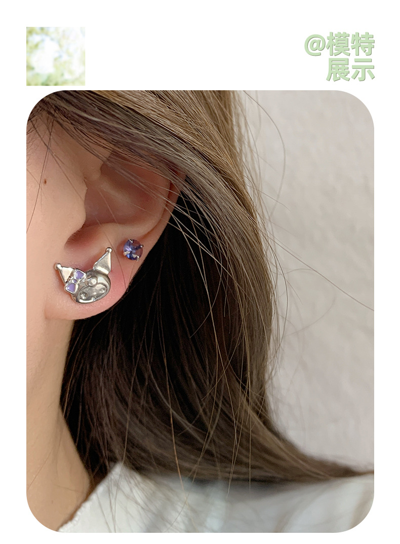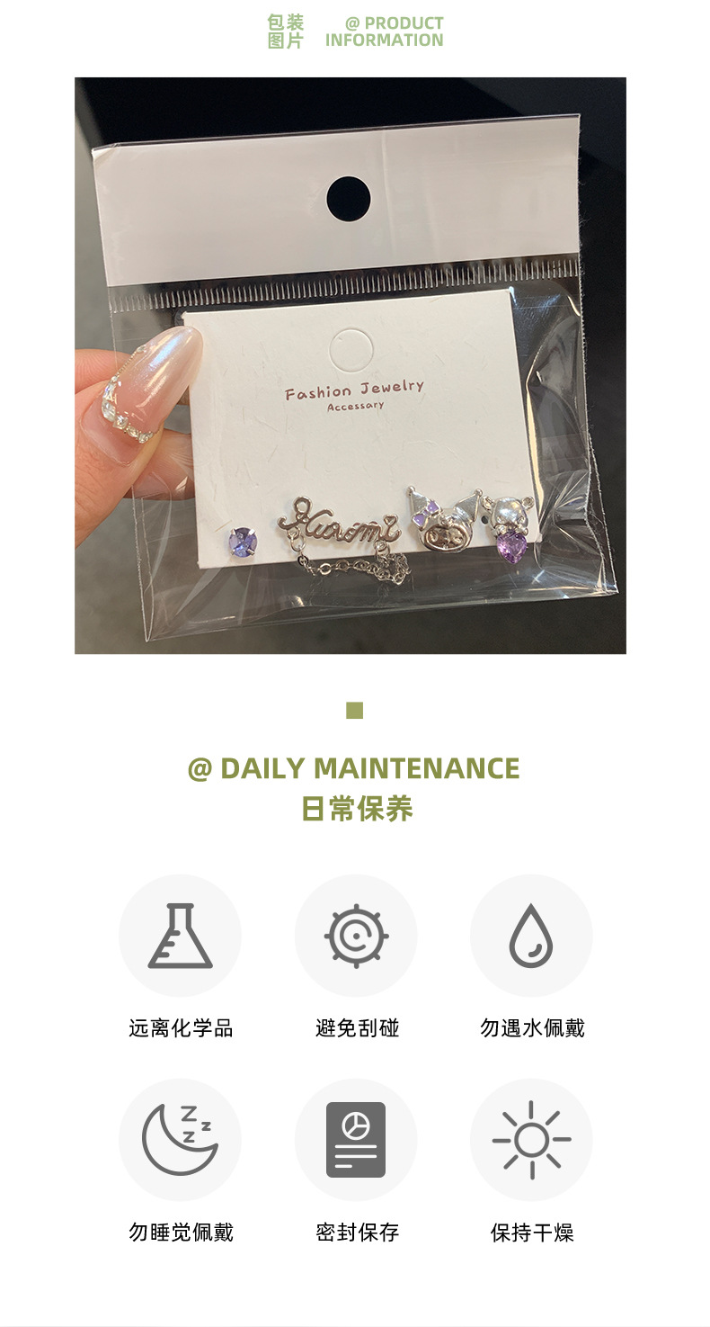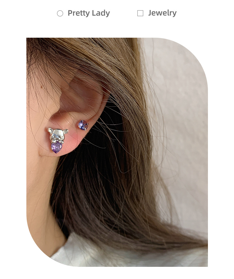 甜美卡通精致紫钻银色兔子耳钉套装女银针小众设计感童趣学生耳饰