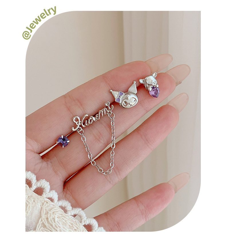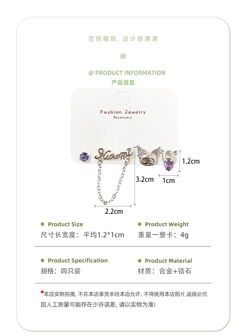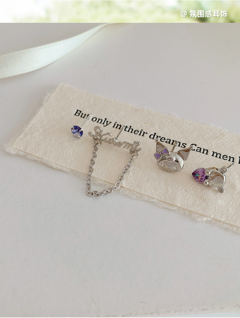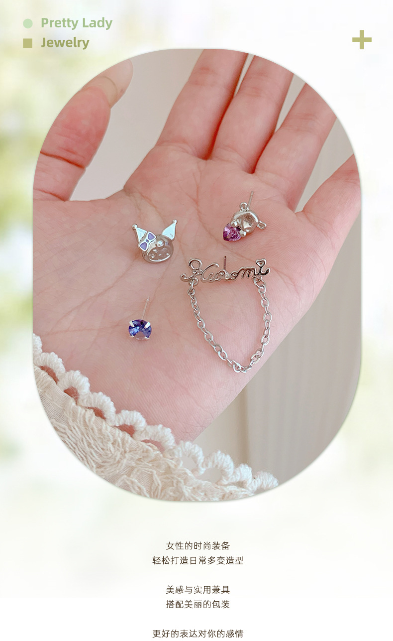 甜美卡通精致紫钻银色兔子耳钉套装女银针小众设计感童趣学生耳饰