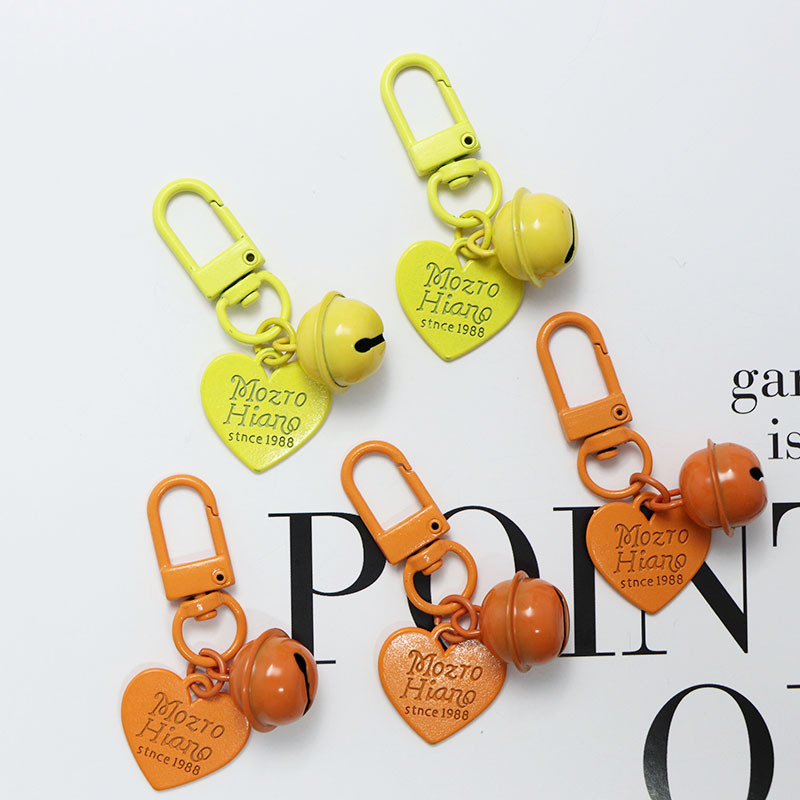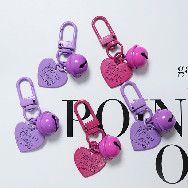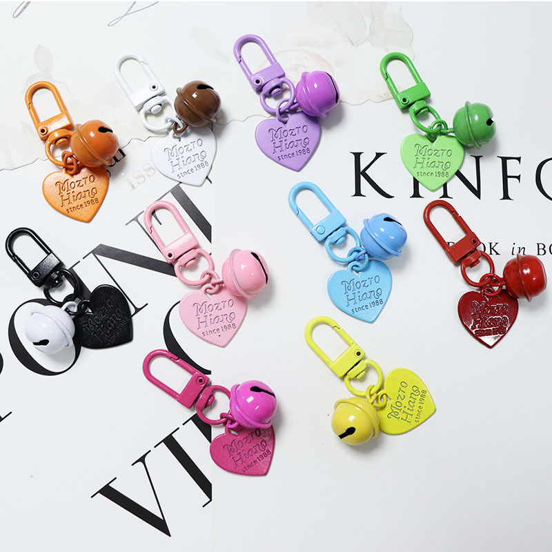 新款合金爱心钥匙扣烤漆糖果色双面爱心铃小铛挂件包包耳机套配饰