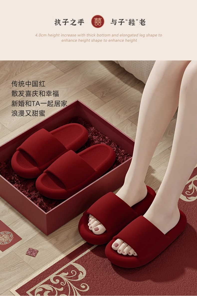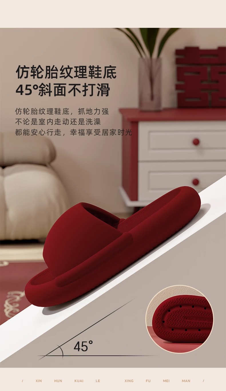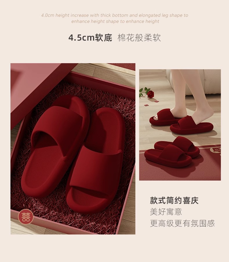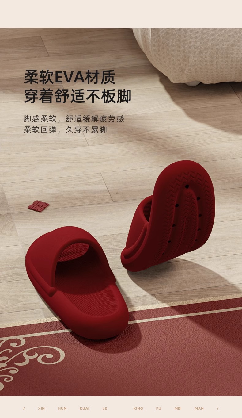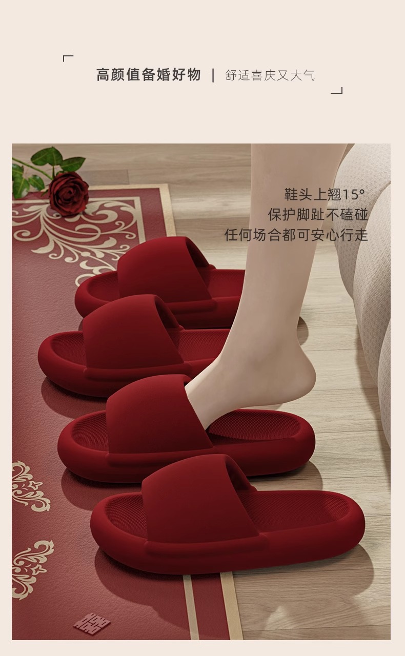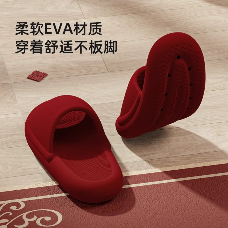 本命年eva红色踩屎感结婚凉拖鞋男女夏高端情侣一对家居室内喜庆