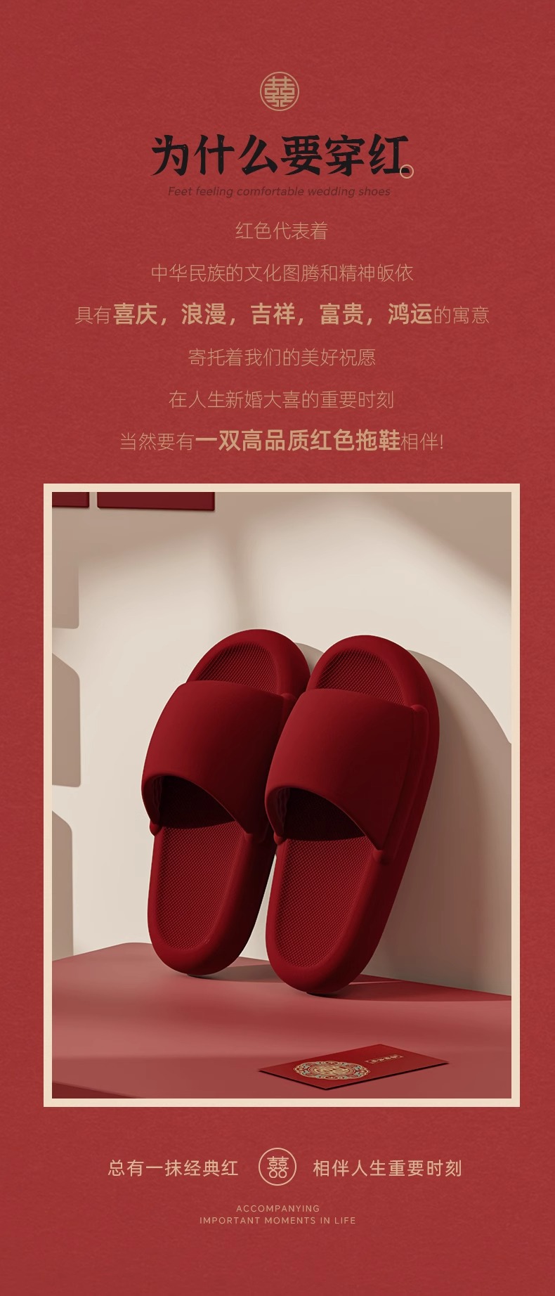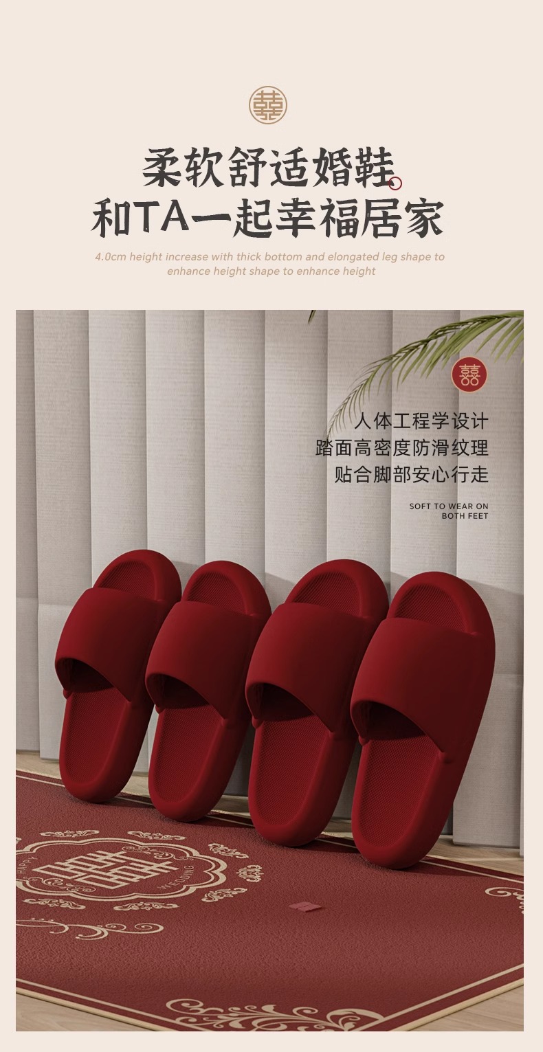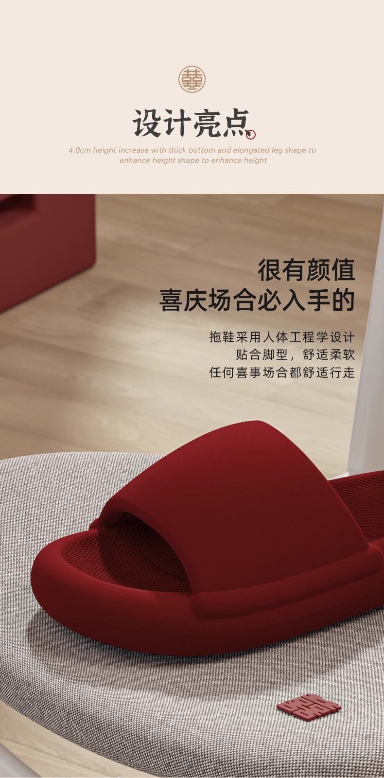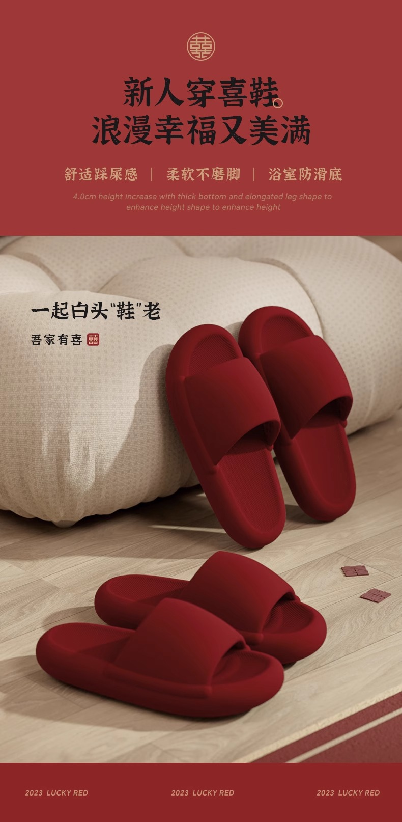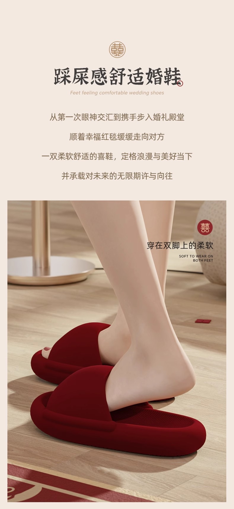 本命年eva红色踩屎感结婚凉拖鞋男女夏高端情侣一对家居室内喜庆