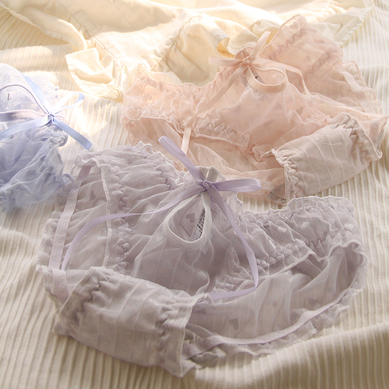 爱心蕾丝内裤透气日系可爱裸感少女中腰性感舒适三角裤批发 0131