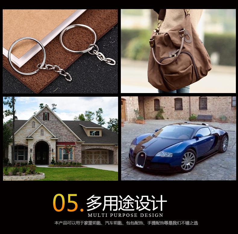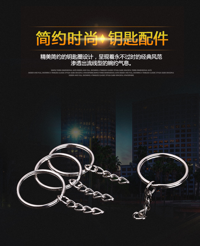 厂家供应优质1.5x25光圈带4节链条 金属圈钥匙扣 挂链 钥匙链