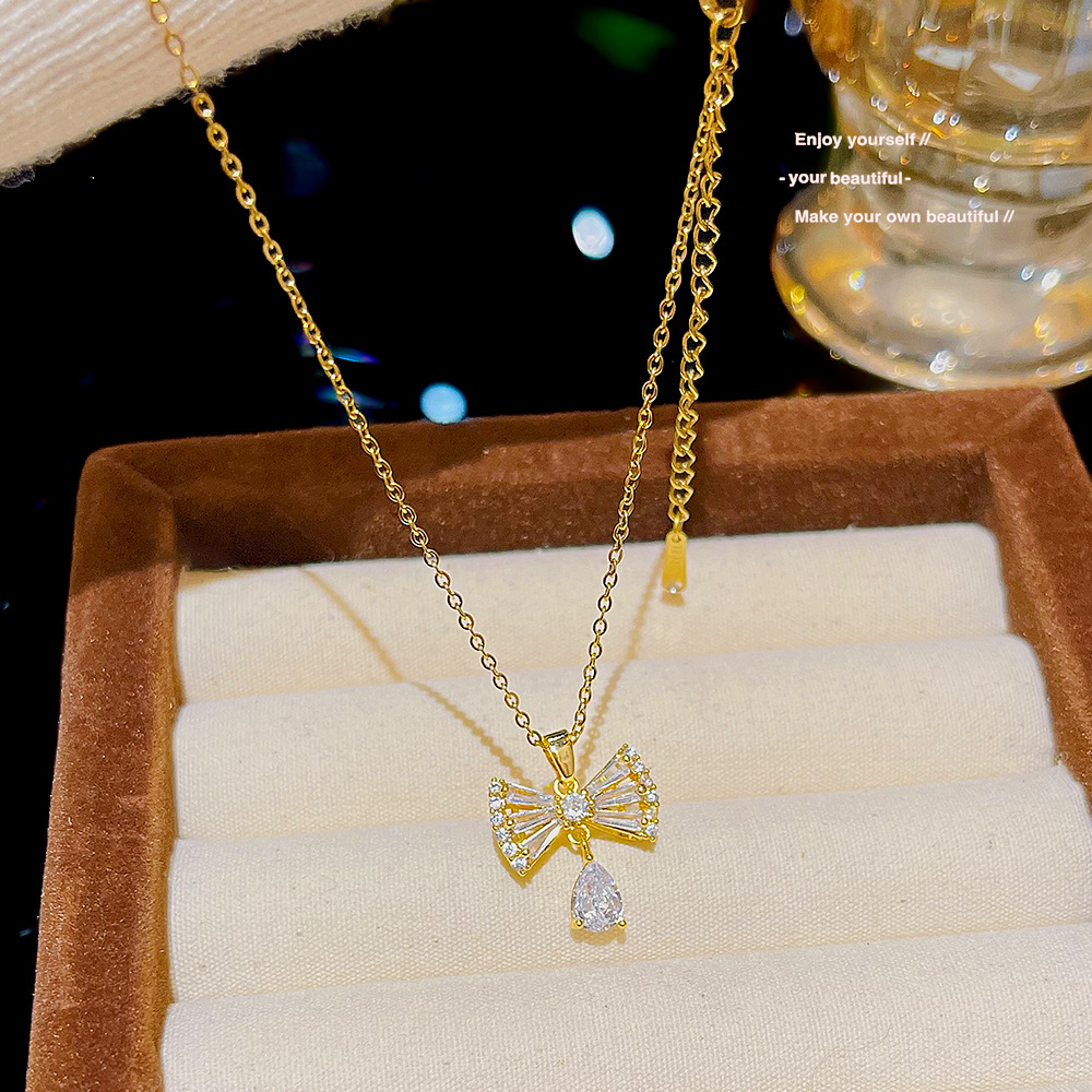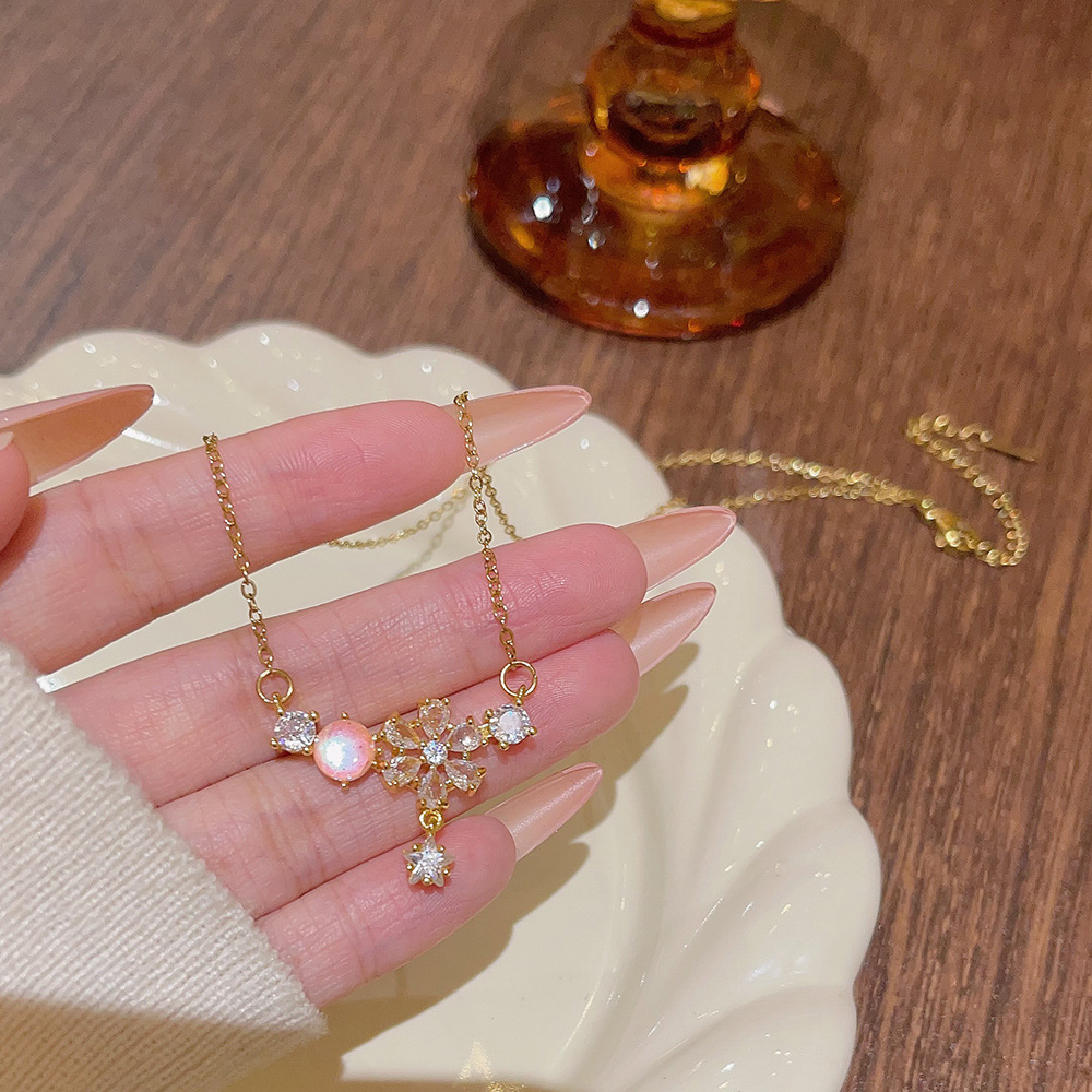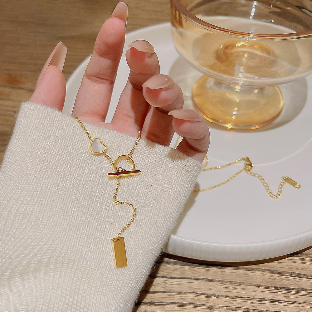 跨境18K时尚钛钢锁骨链不掉色小众气质吊坠百搭感珍珠项链女