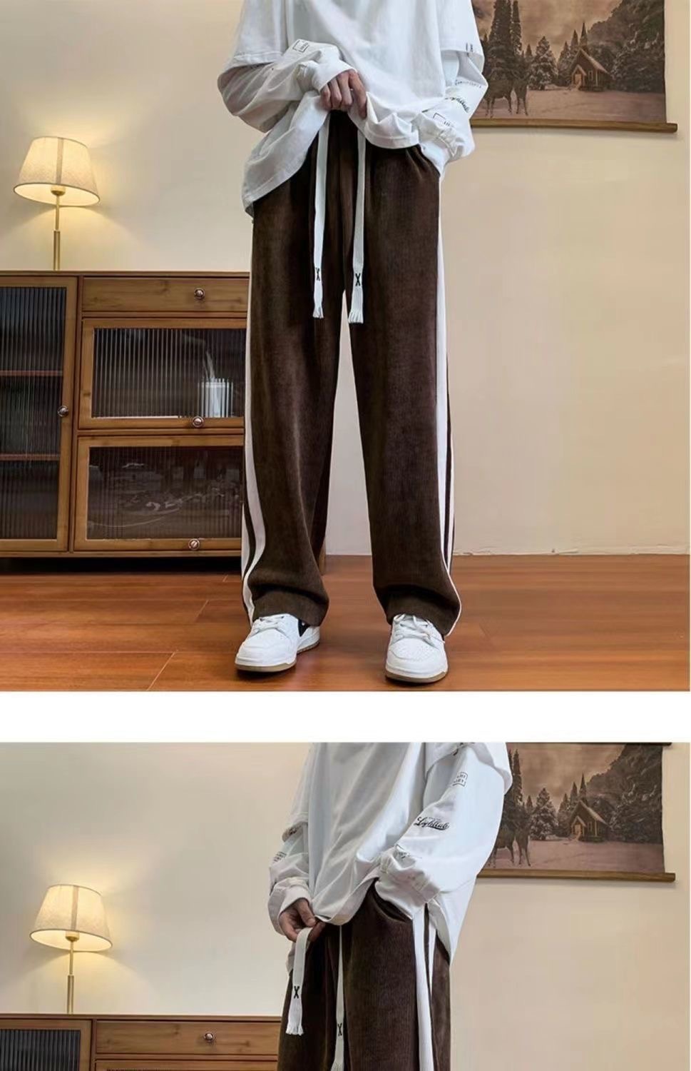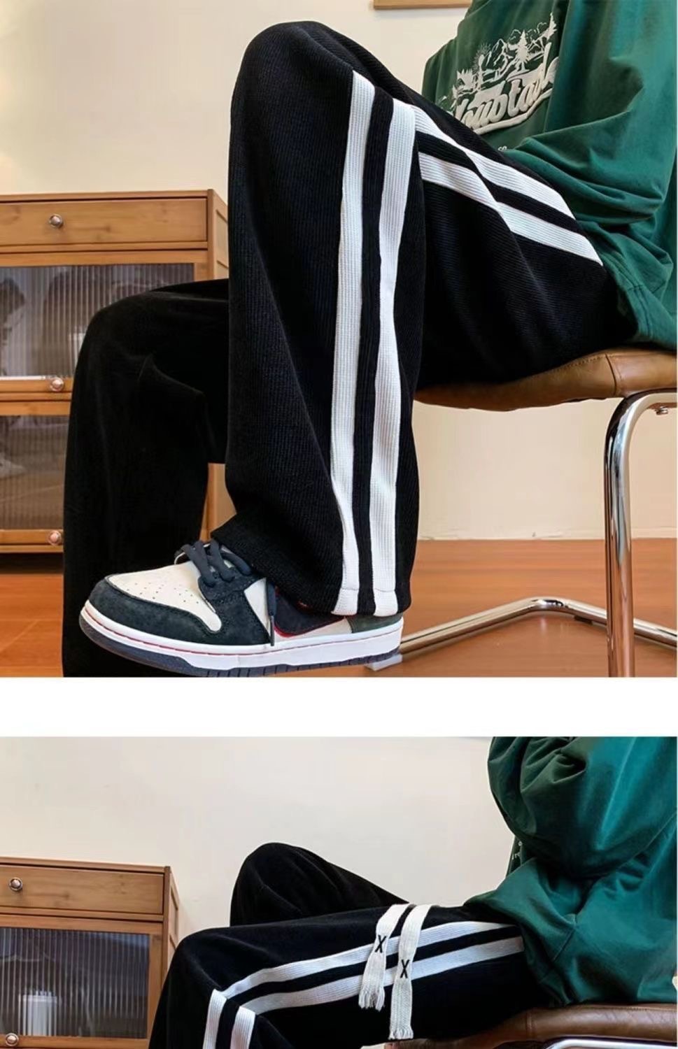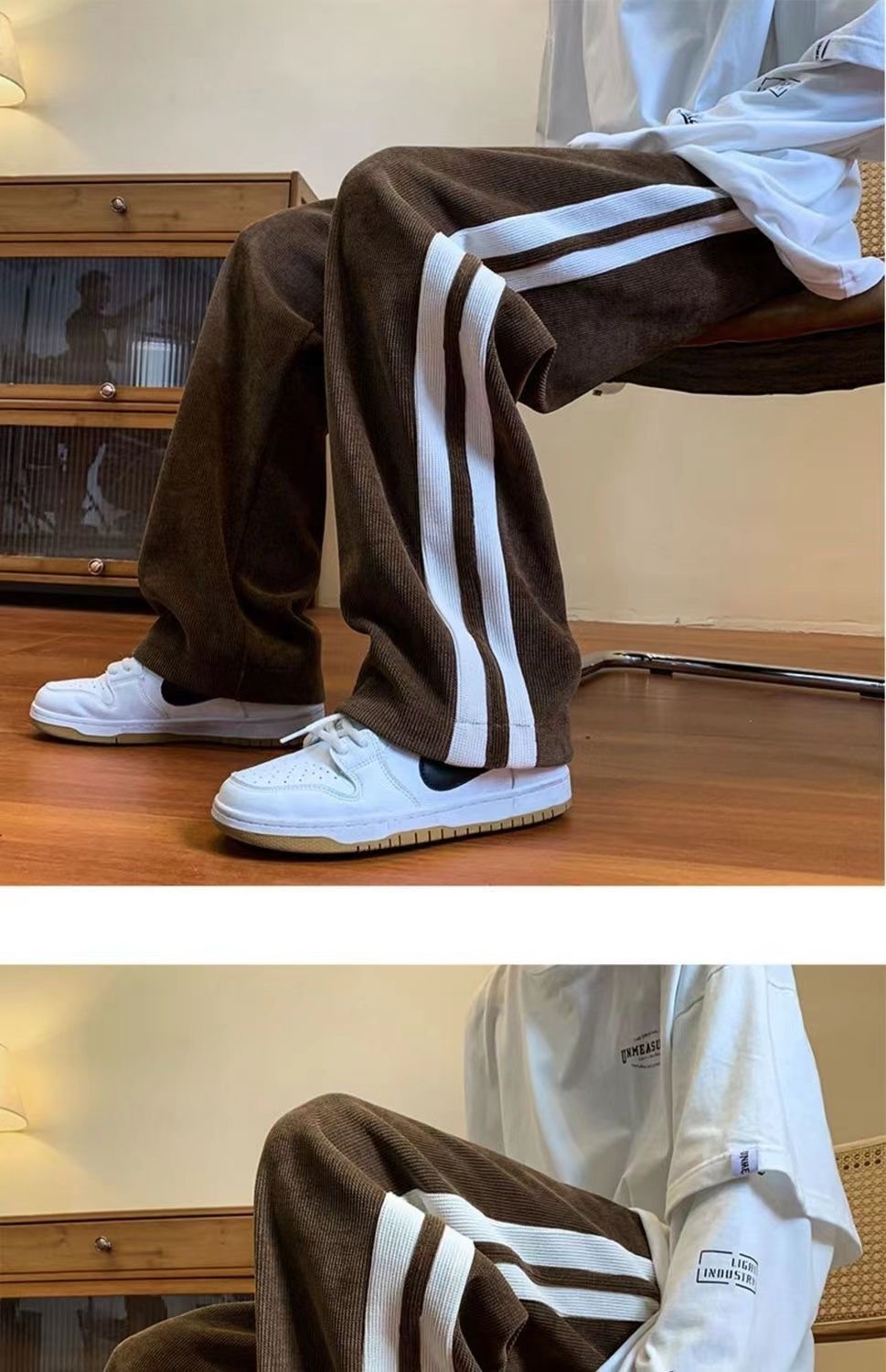 裤子男春秋季灯芯绒高街ins潮运动百搭直筒宽松潮牌垂感休闲长裤