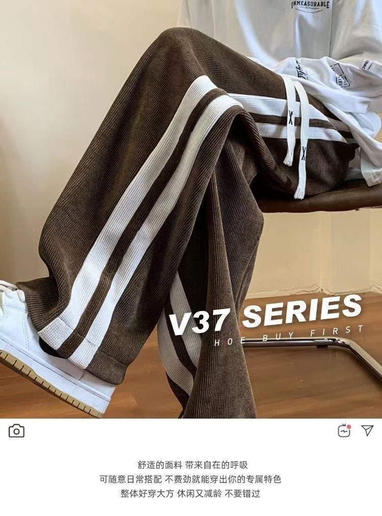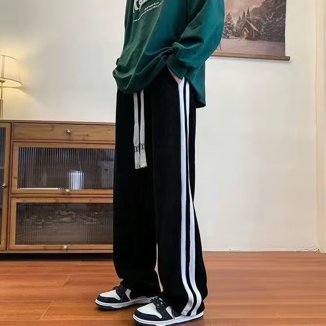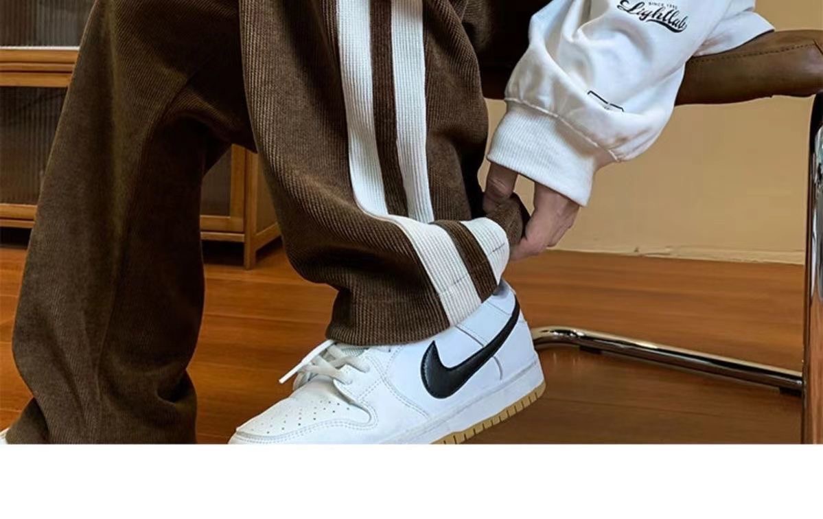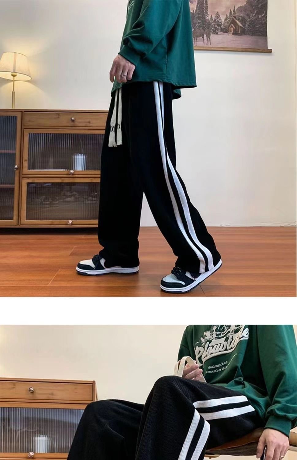 裤子男春秋季灯芯绒高街ins潮运动百搭直筒宽松潮牌垂感休闲长裤
