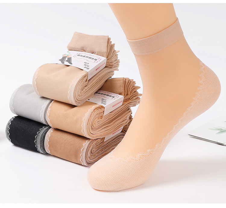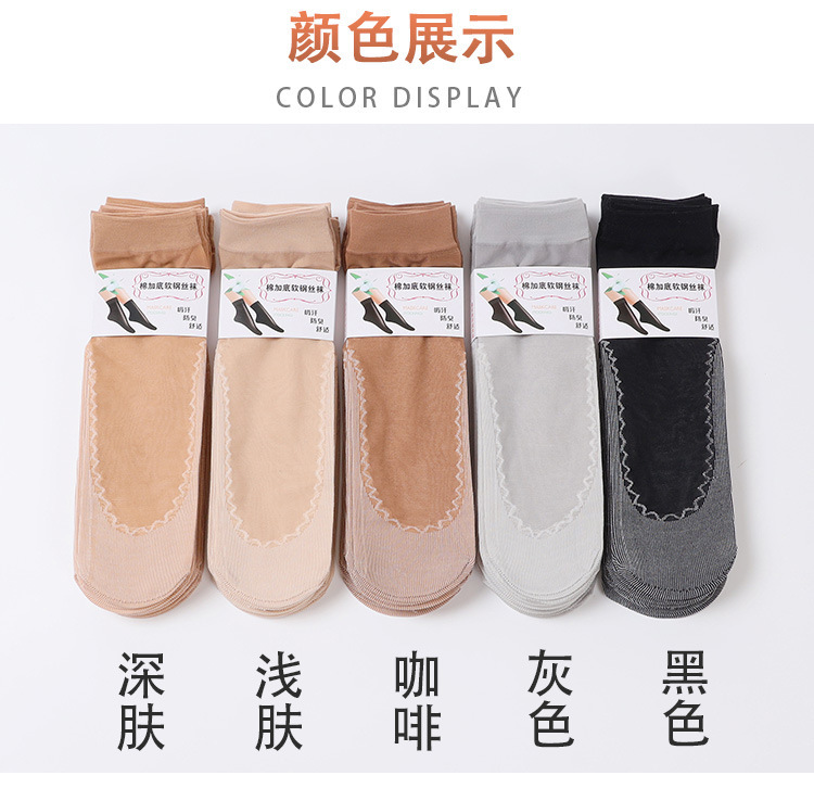 棉底防滑短丝袜女春秋款薄款夏季纯肉色松口包芯防勾丝耐磨水晶袜