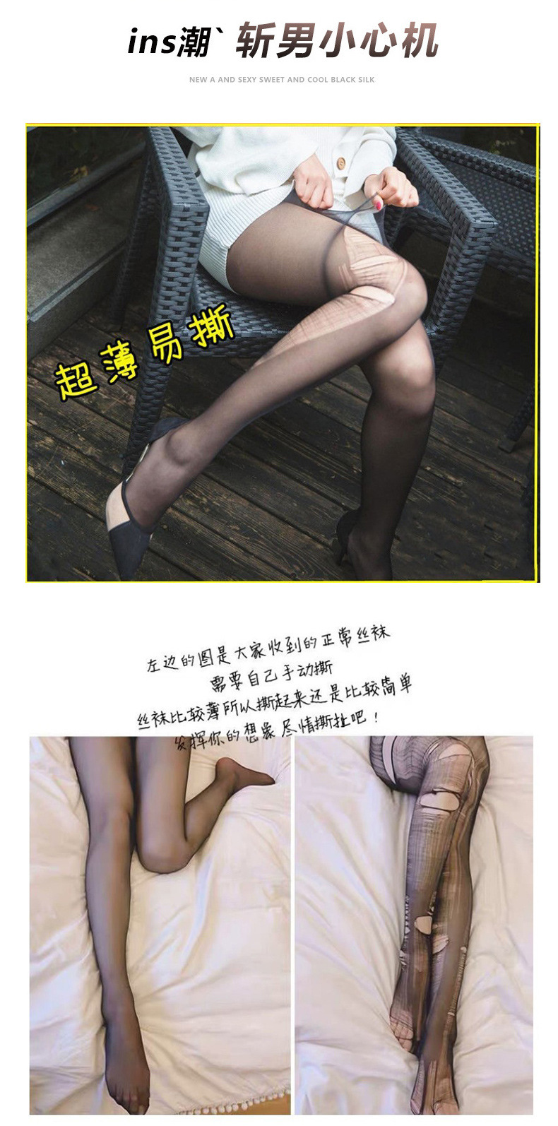 MM诱惑手撕超薄半透减压可撕烂开裆情趣丝袜性感塑形连袜裤女