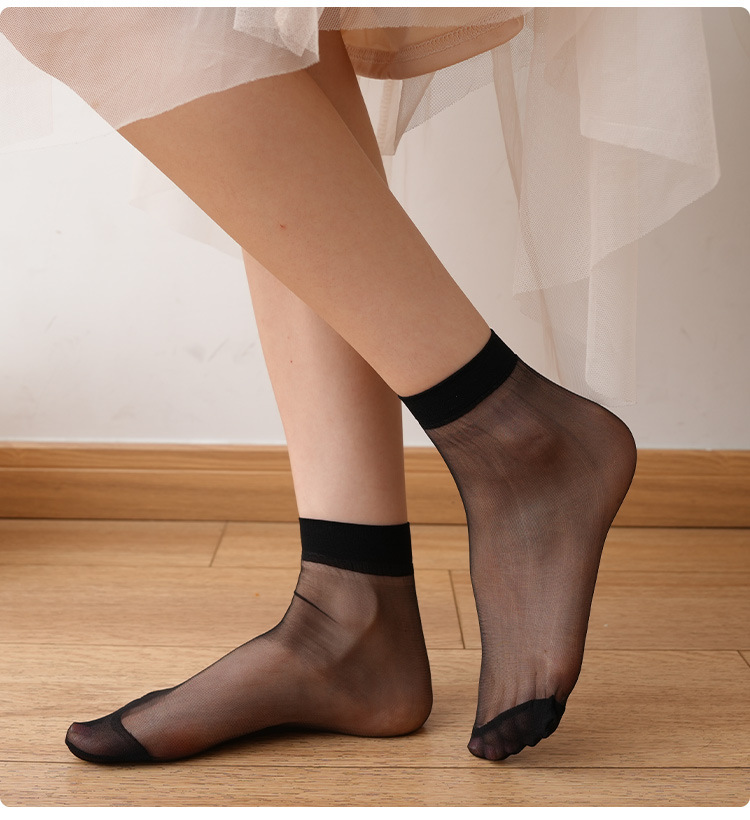 超薄丝袜女短薄款耐磨夏季袜子女短袜黑肉色短筒水晶丝袜女士透明