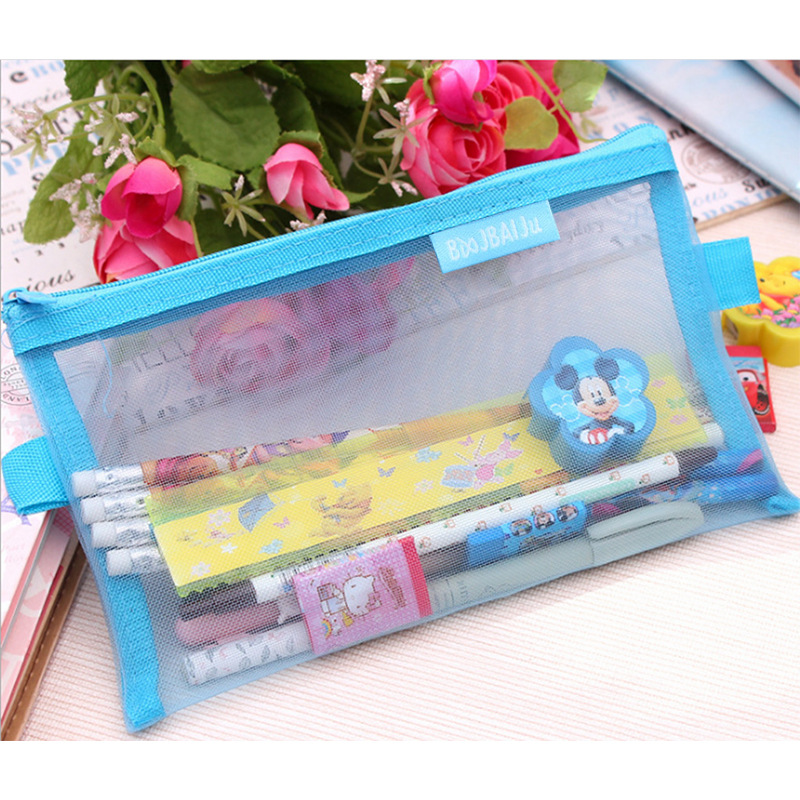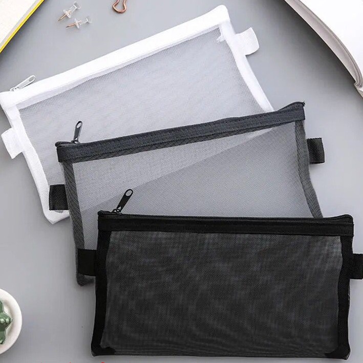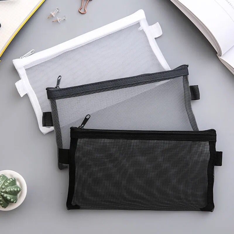 透明笔袋定制学生大容量考试便携铅笔袋尼龙网纱文具收纳袋文件袋