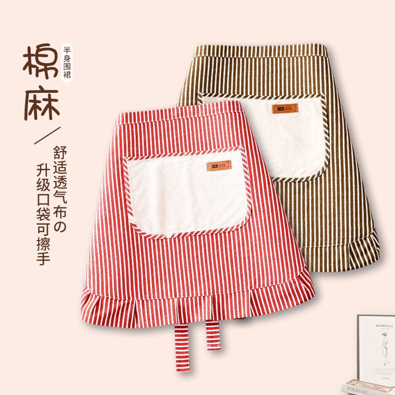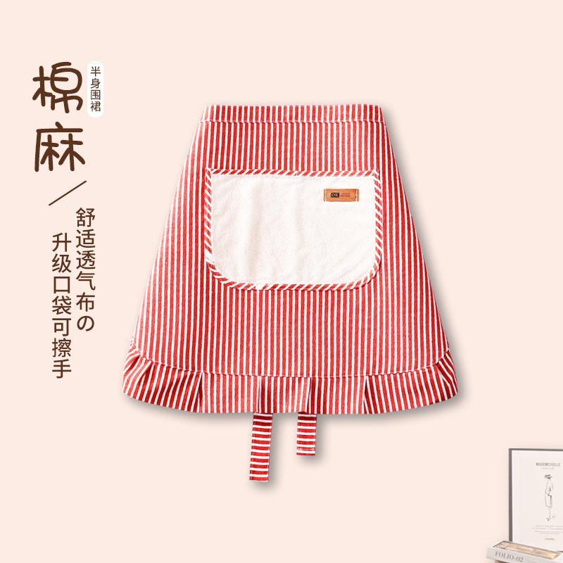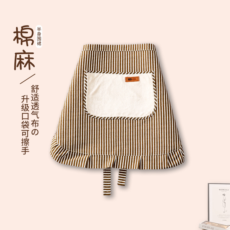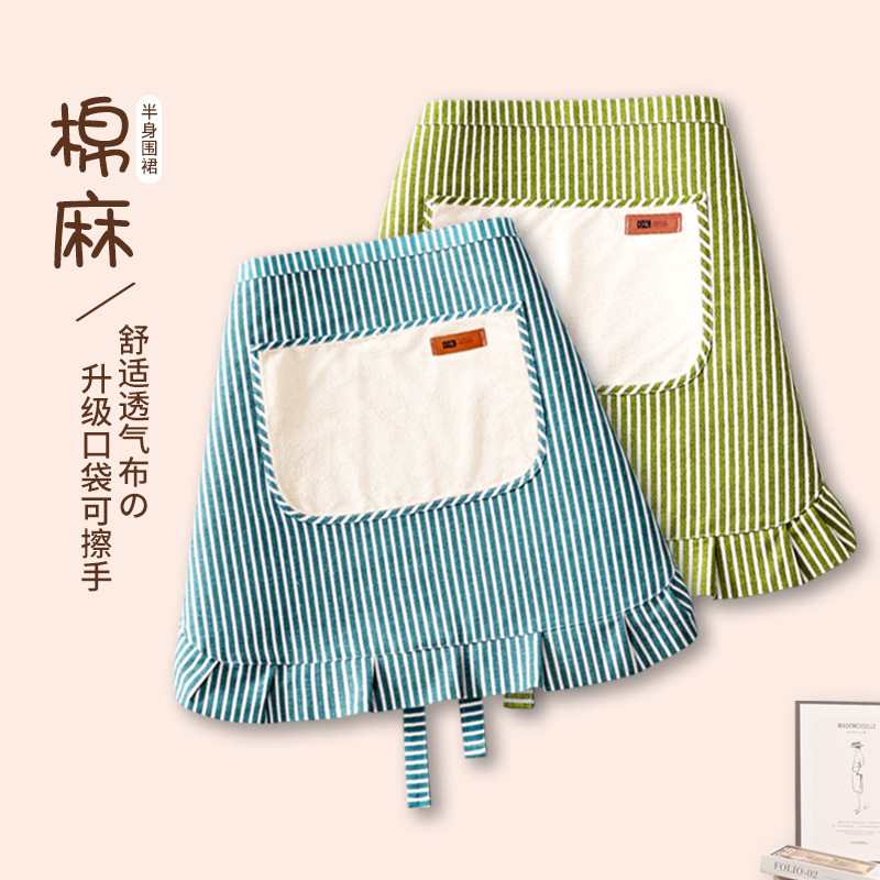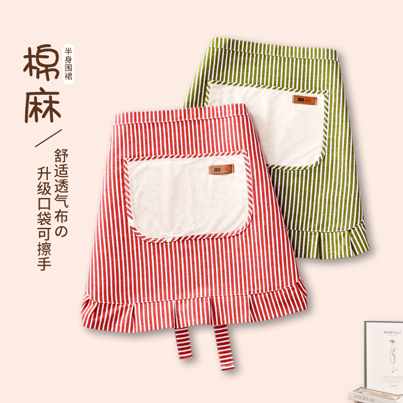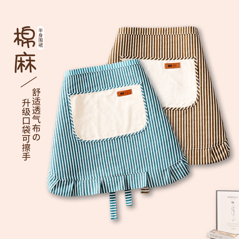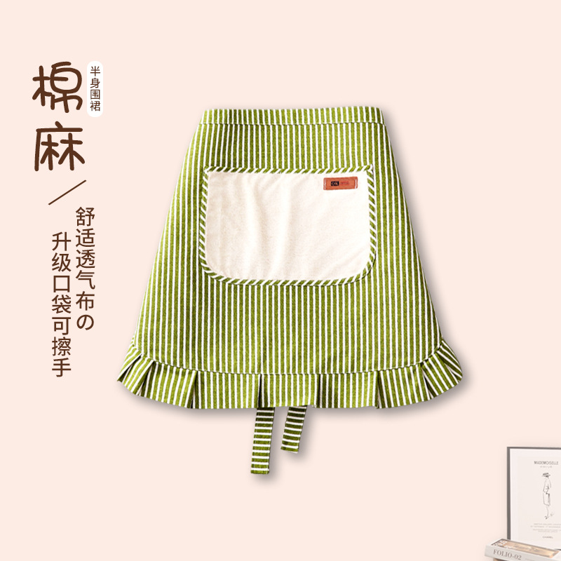 围裙夏季薄款半身2025新款超好看一片式透气棉麻厨房家用工作上班