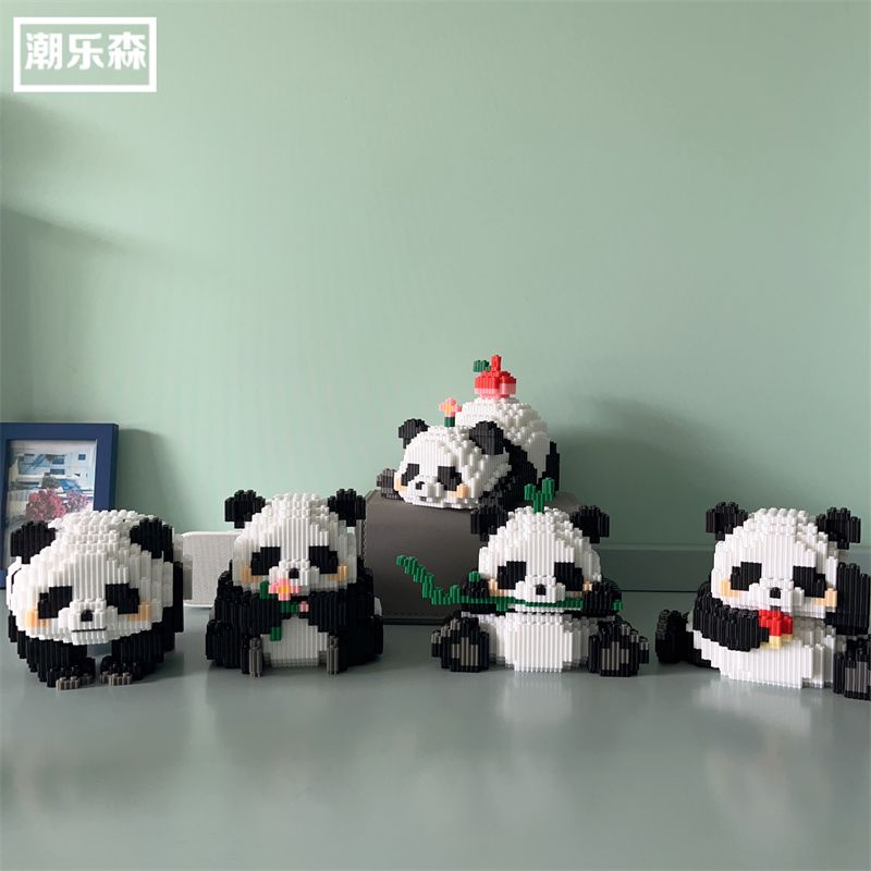 熊猫家族清仓组合款兼容乐高积木3d拼装玩具桌面摆件送大学生礼物