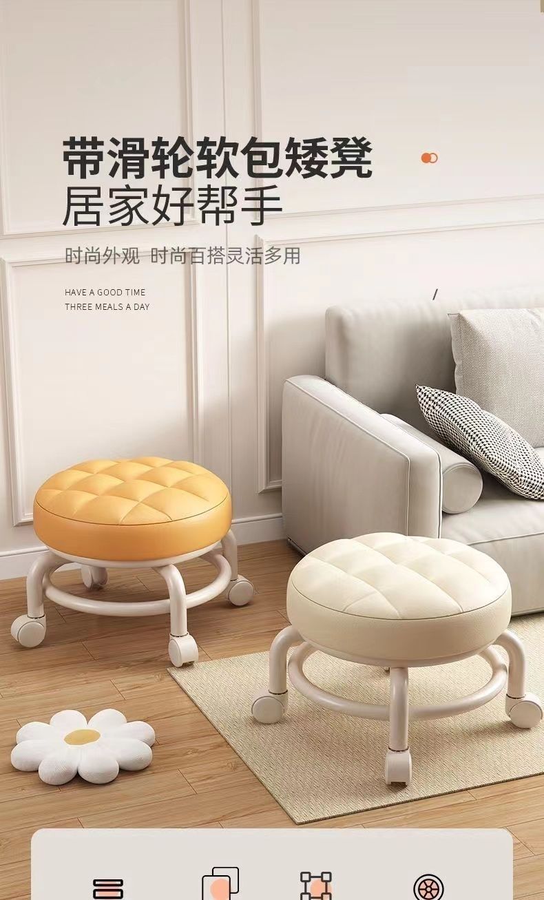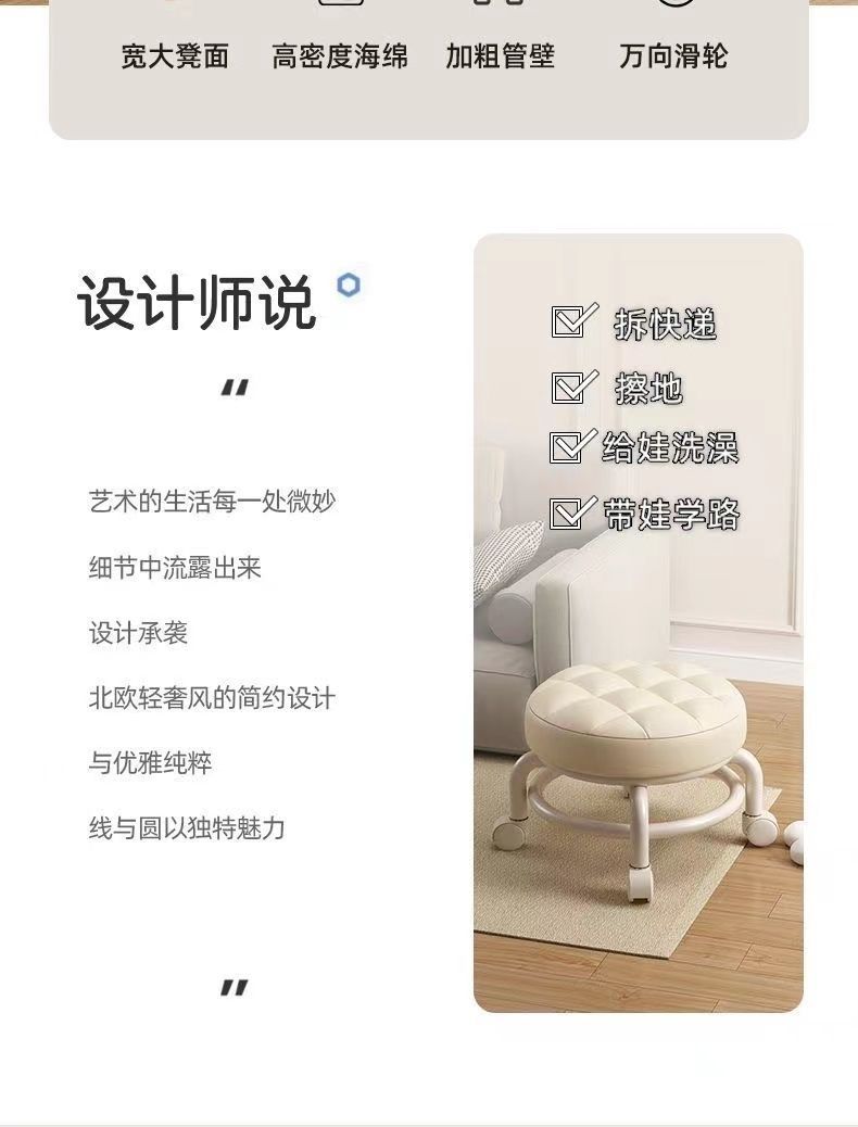 带娃神器万向轮滑轮矮凳儿童学步凳美缝修脚换鞋凳圆凳软座小凳子
