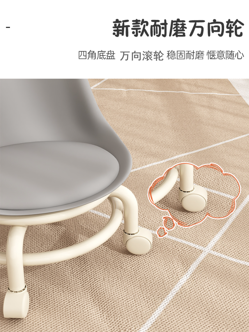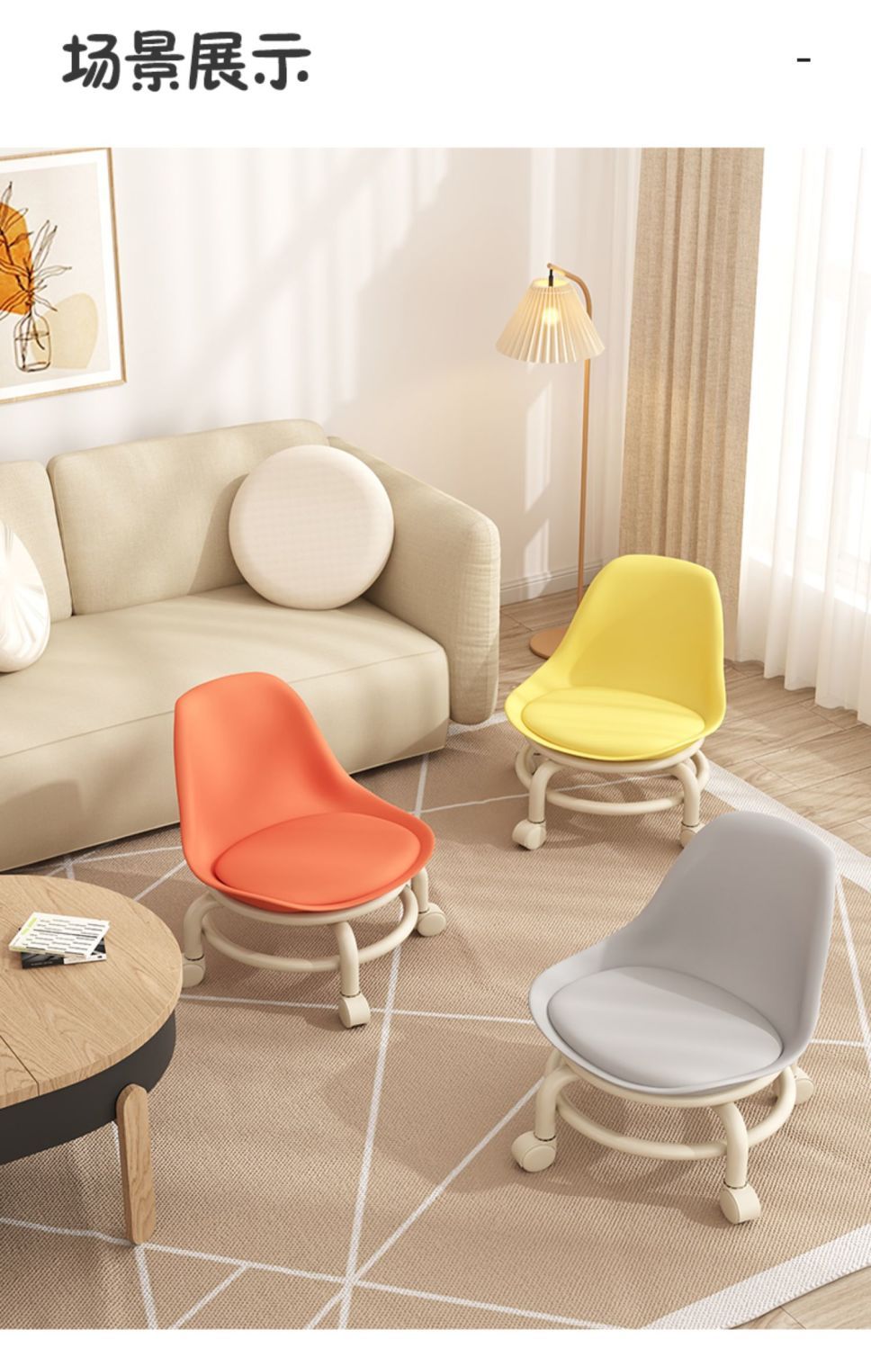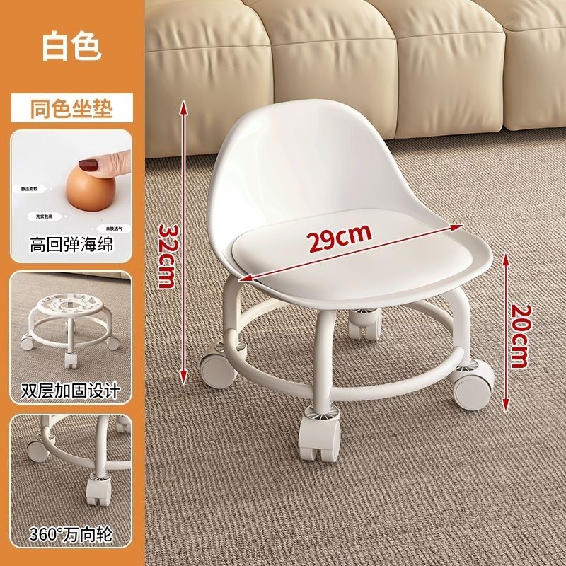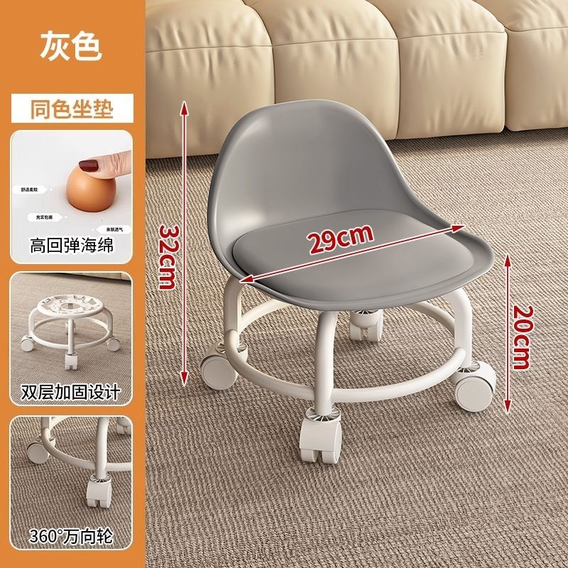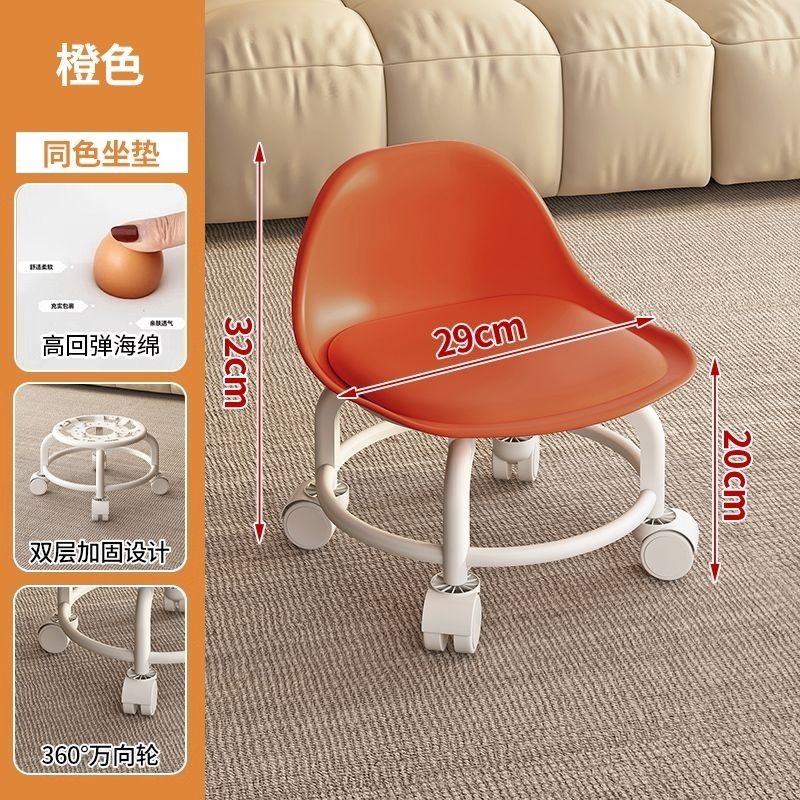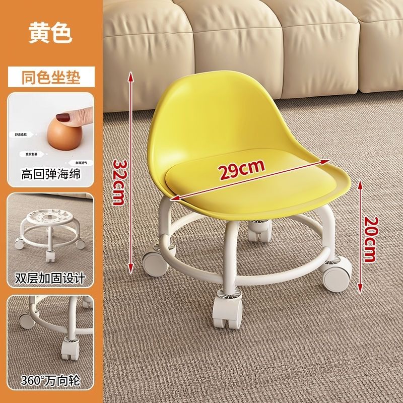靠背滑轮矮儿童旋转小椅子带万向轮静音凳子家用懒人网红圆凳