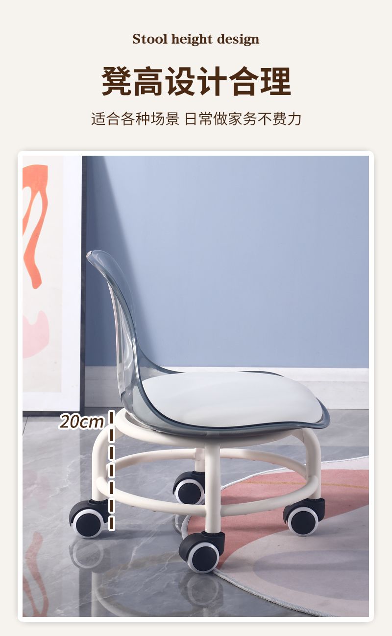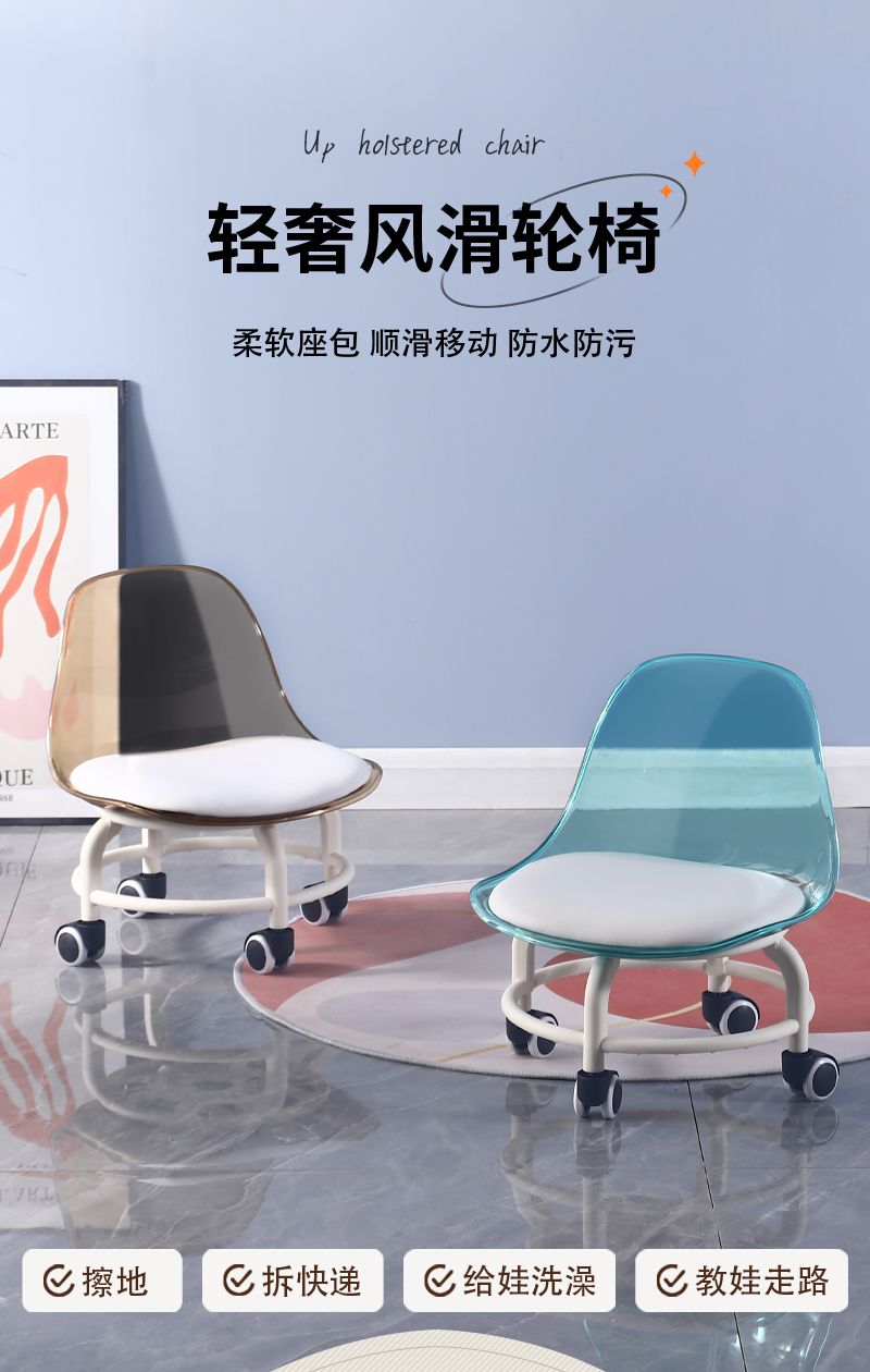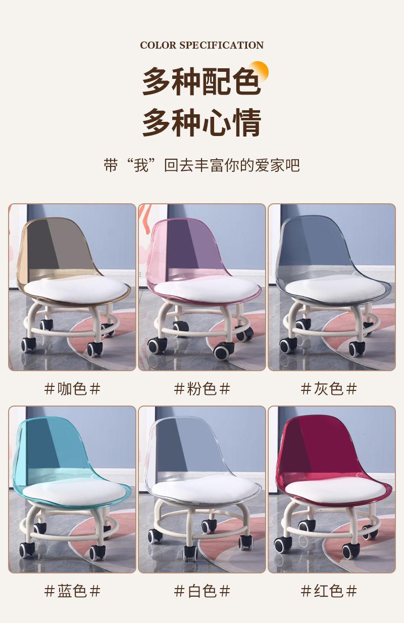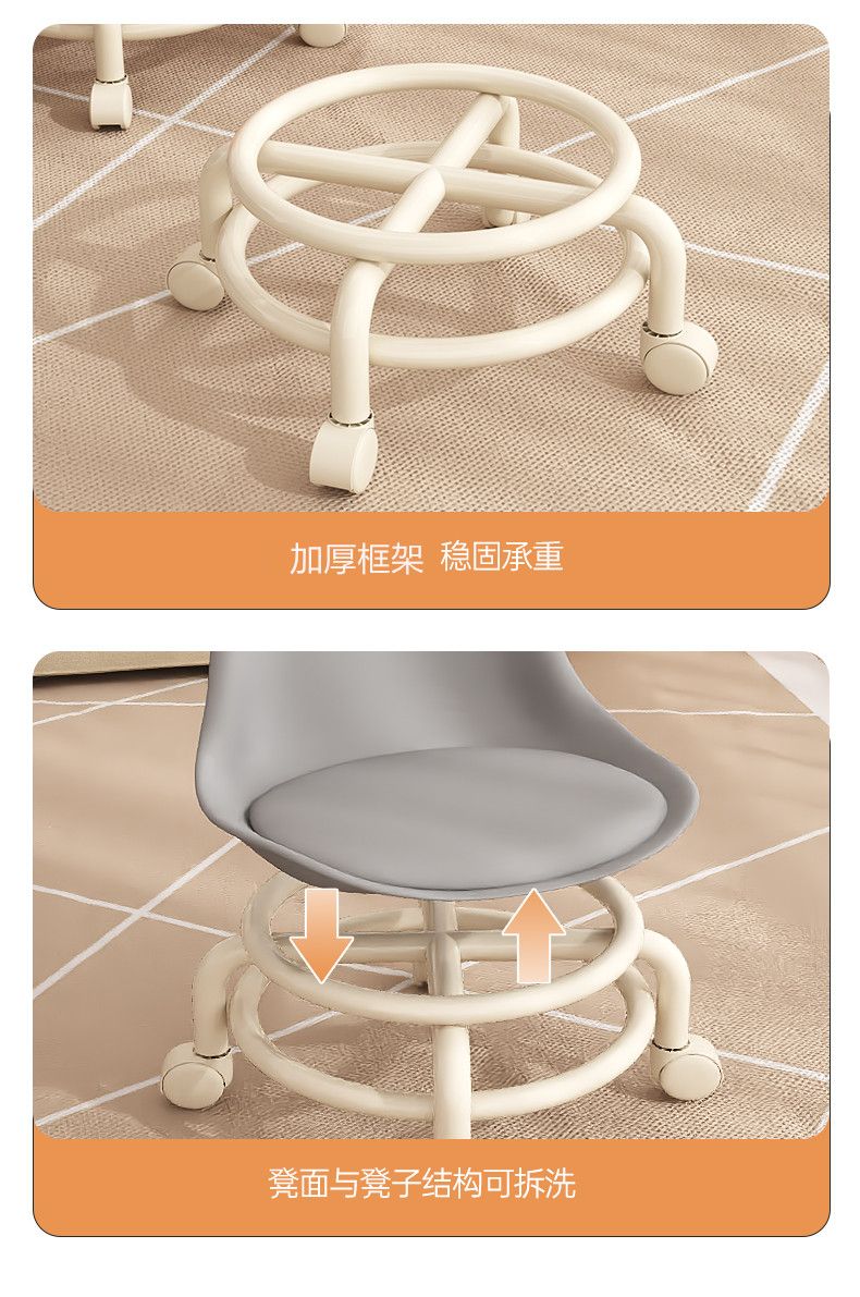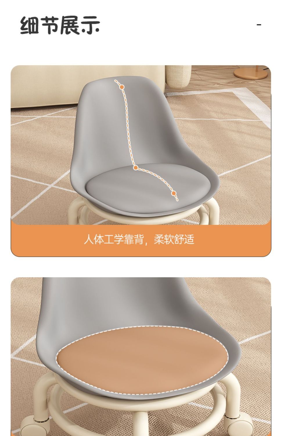 靠背滑轮矮儿童旋转小椅子带万向轮静音凳子家用懒人网红圆凳