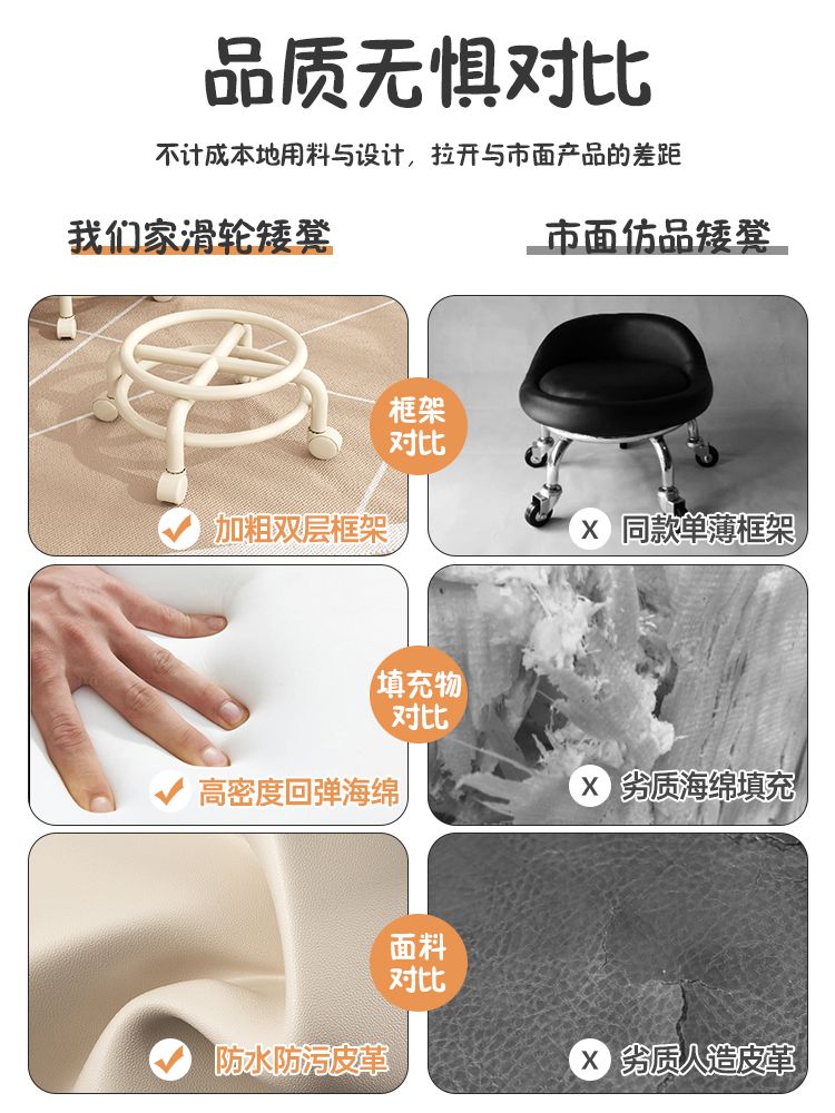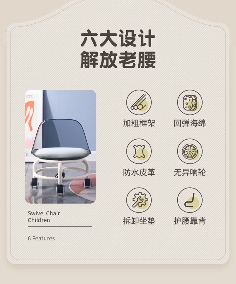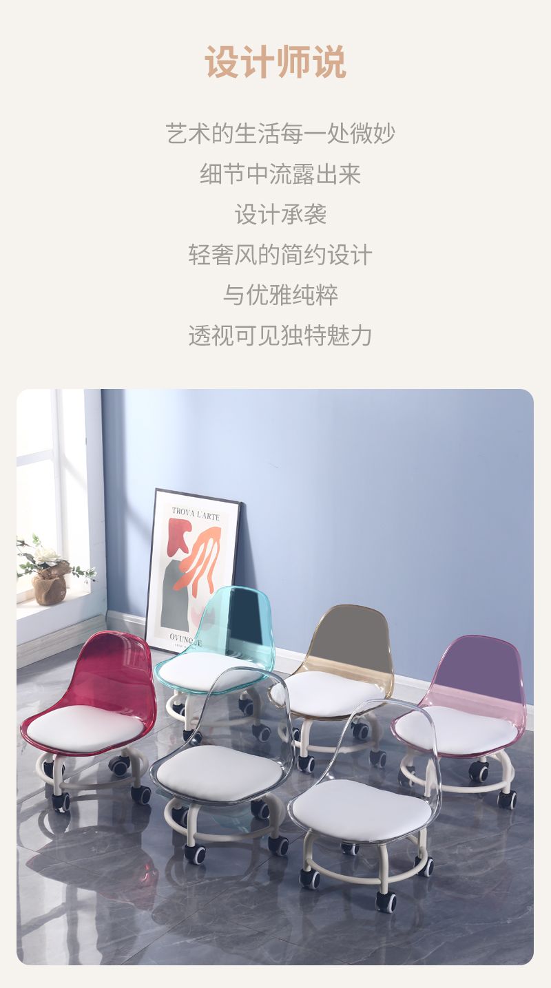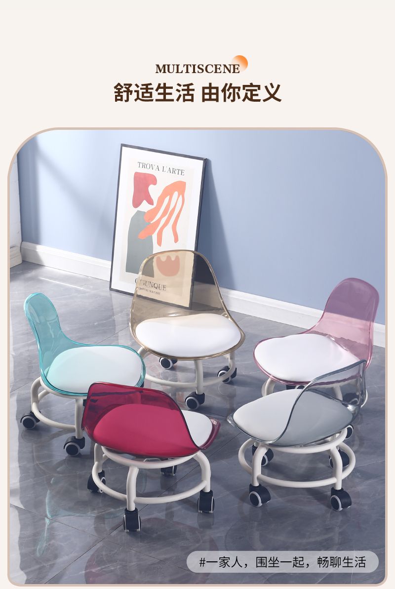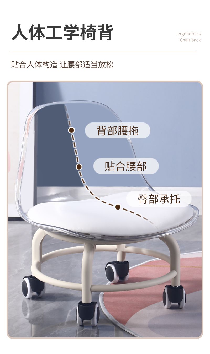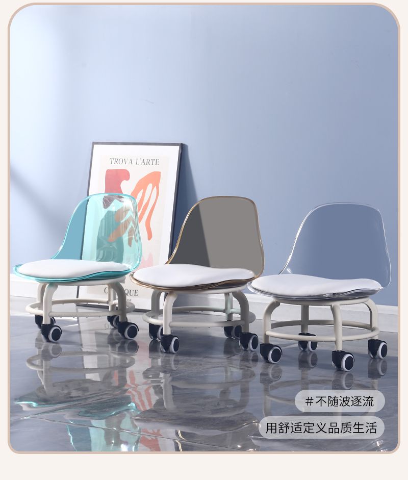 靠背滑轮矮儿童旋转小椅子带万向轮静音凳子家用懒人网红圆凳