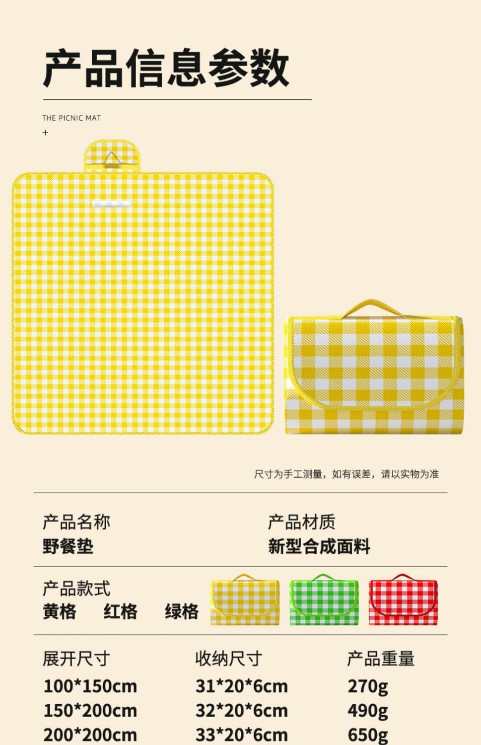 野餐垫防潮垫加厚户外露营野餐装备防水便携春游郊游可折叠野餐布