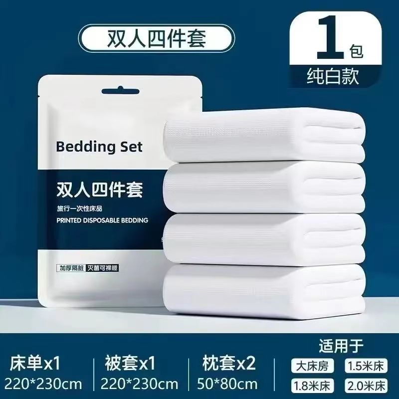 一次性床单被套枕套加厚三四件套双人旅行酒店床上用品隔脏便携式