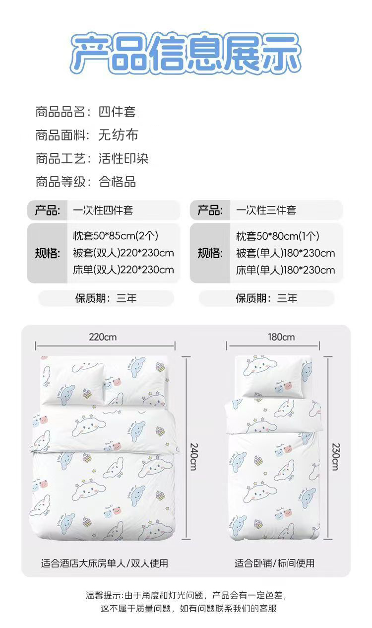 酒店一次性床单被罩枕套旅行四件套出差便携隔脏旅游宾馆孕妇可用