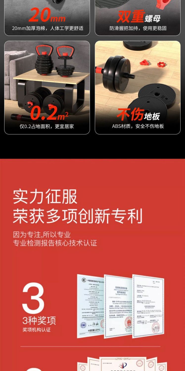 英尔健哑铃可拆卸多功能调节健身家用男士力量训练器材组合哑铃