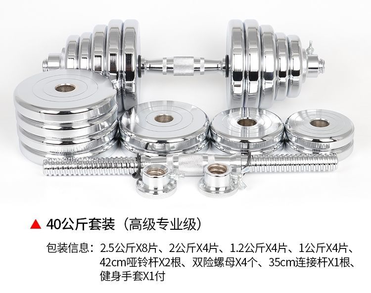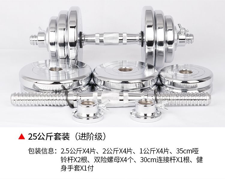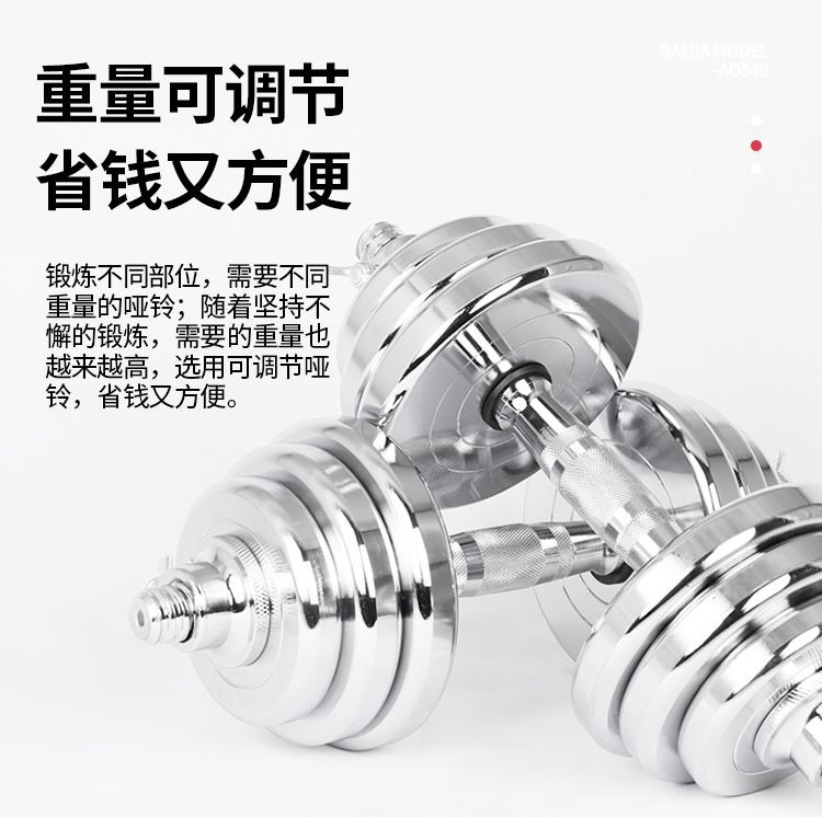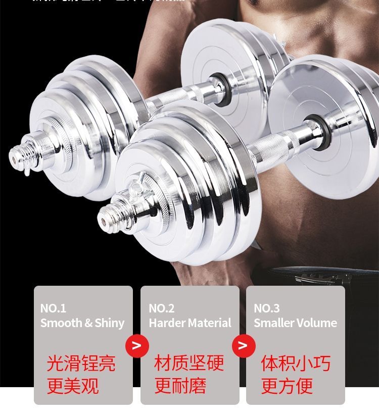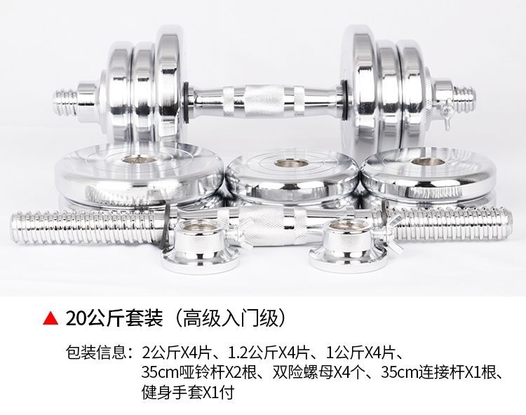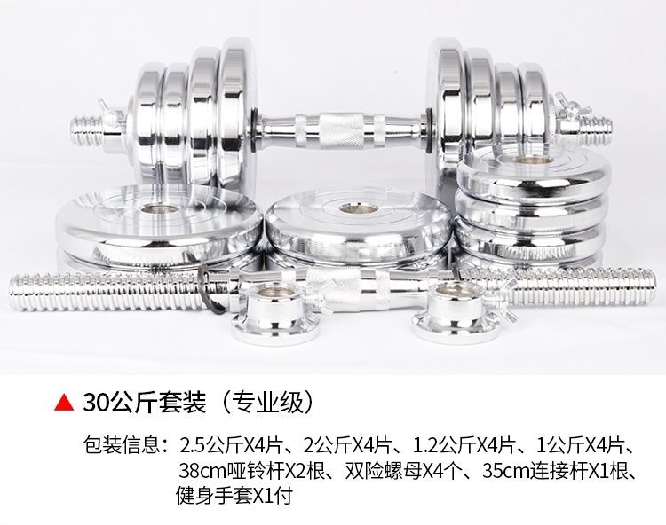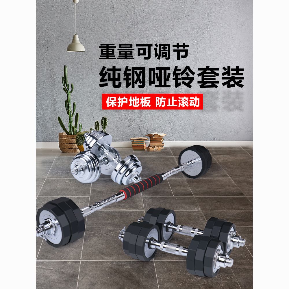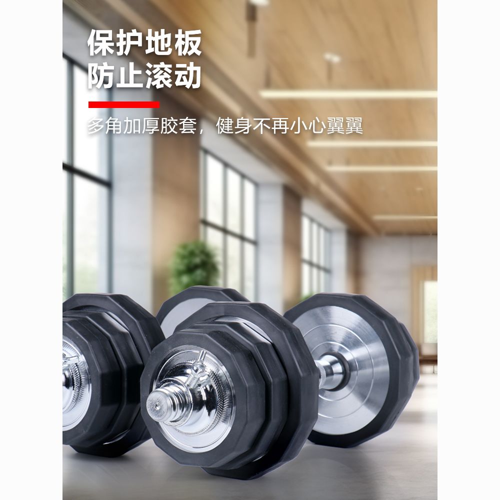 纯钢哑铃男女健身器材可调节重量杠铃2030公斤套装包胶铸铁