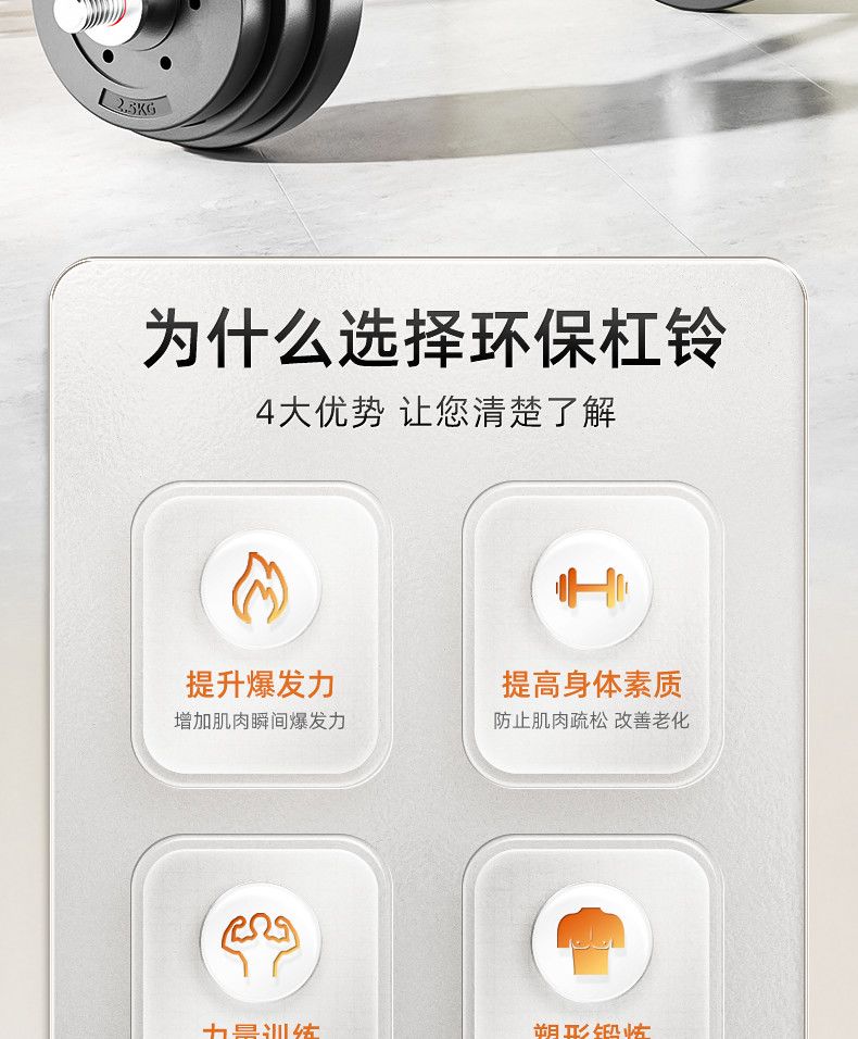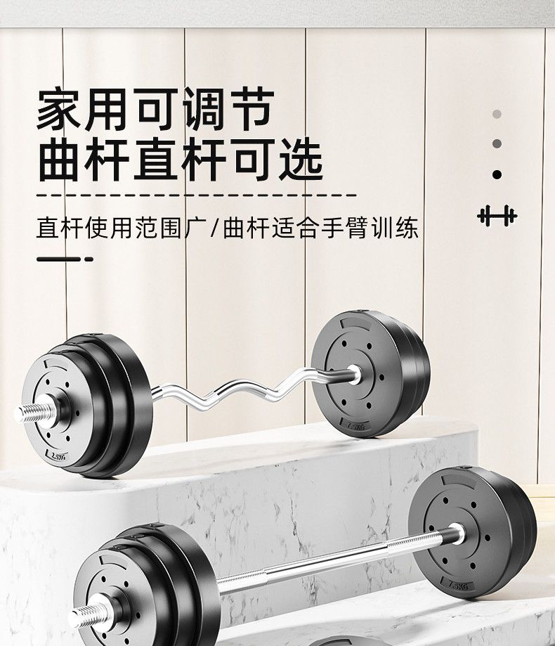 杠铃套装男士家用健身 深蹲直杆曲杆举重器材 杠铃哑铃两用组合女