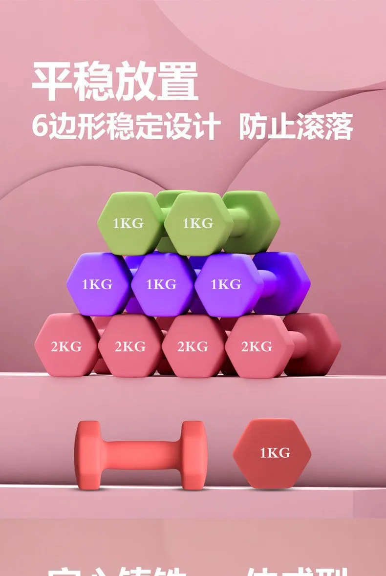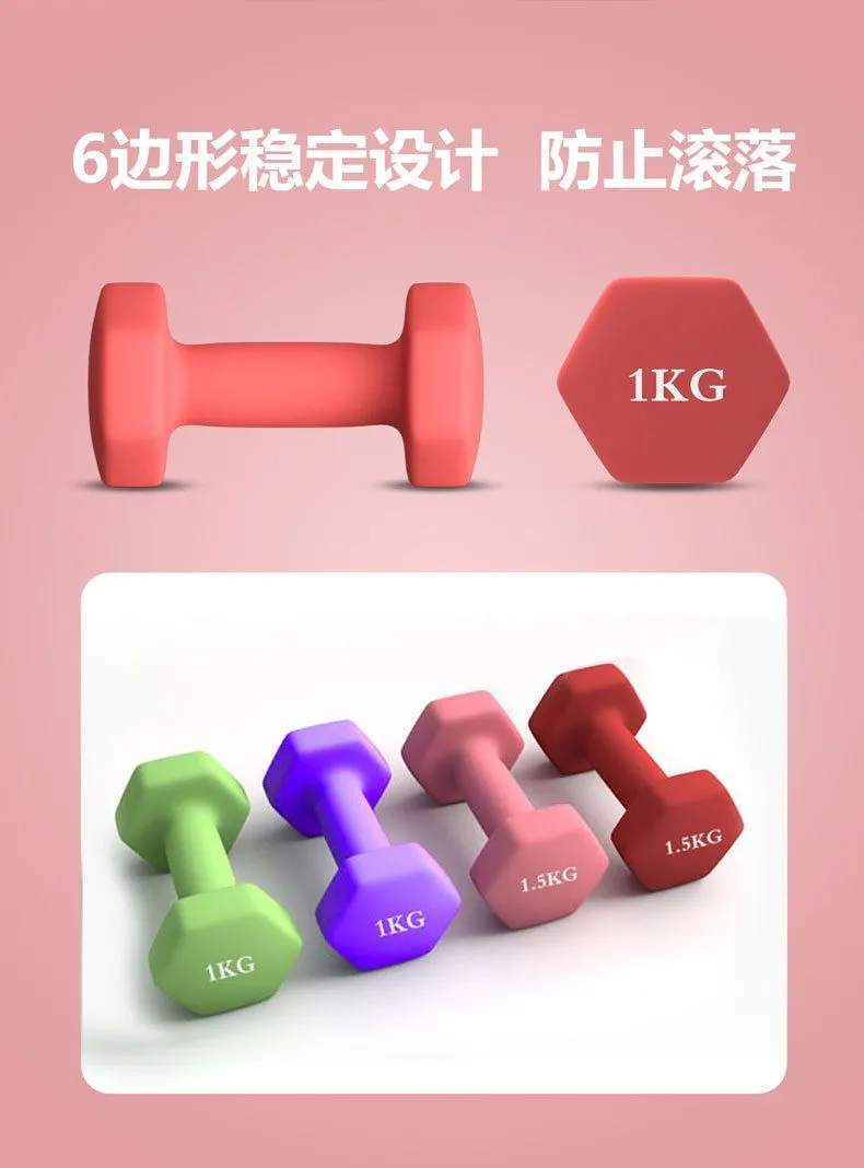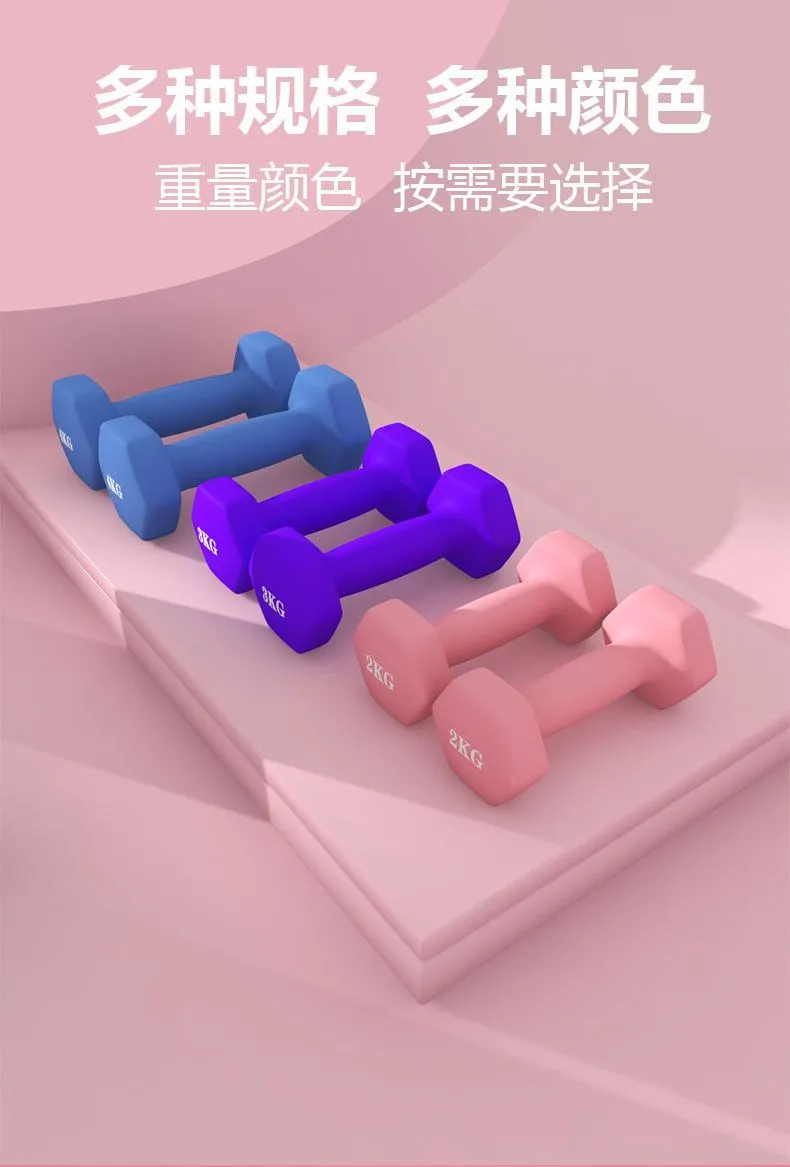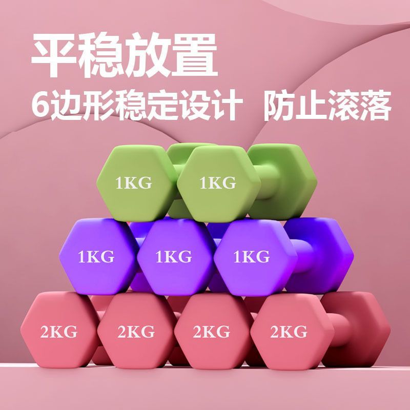 小哑铃女士健身家用一对小哑铃实心铸铁浸塑哑铃儿童哑铃男士增肌