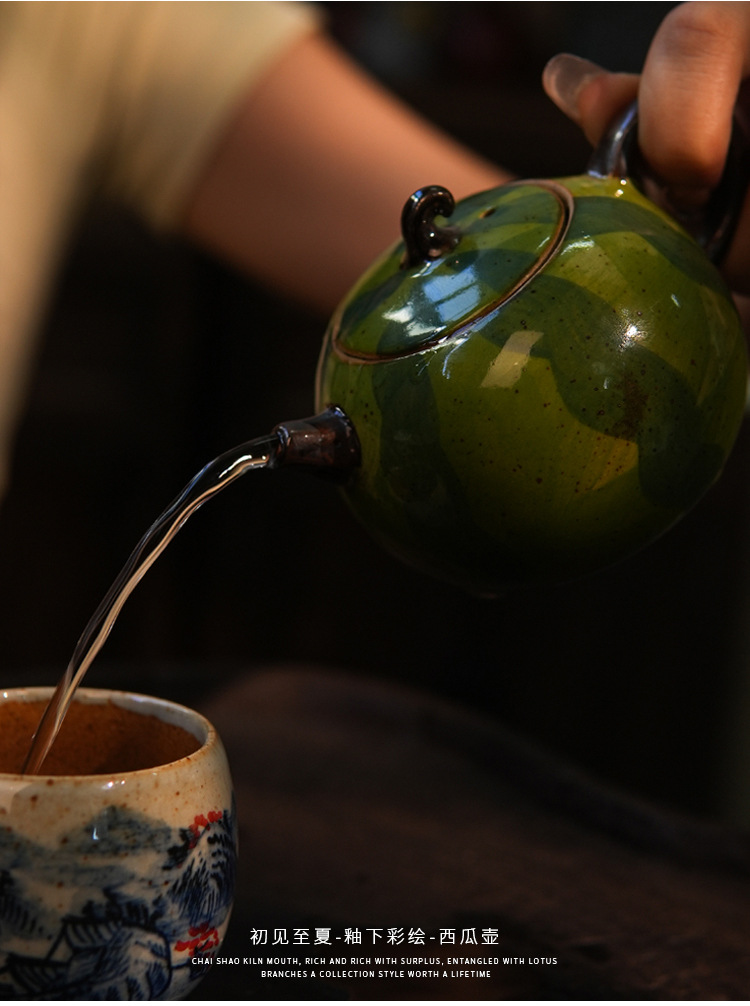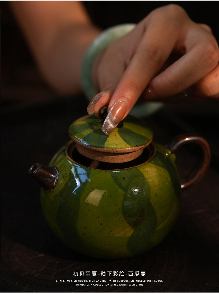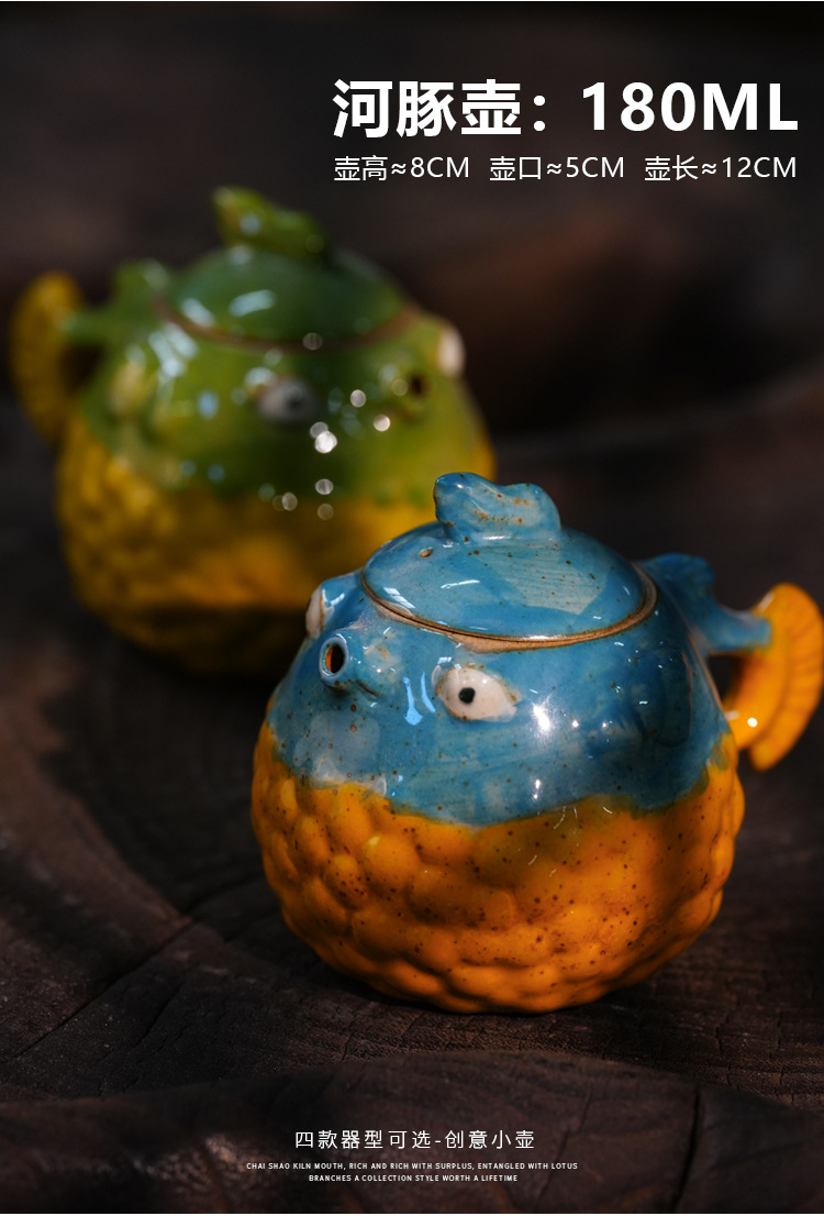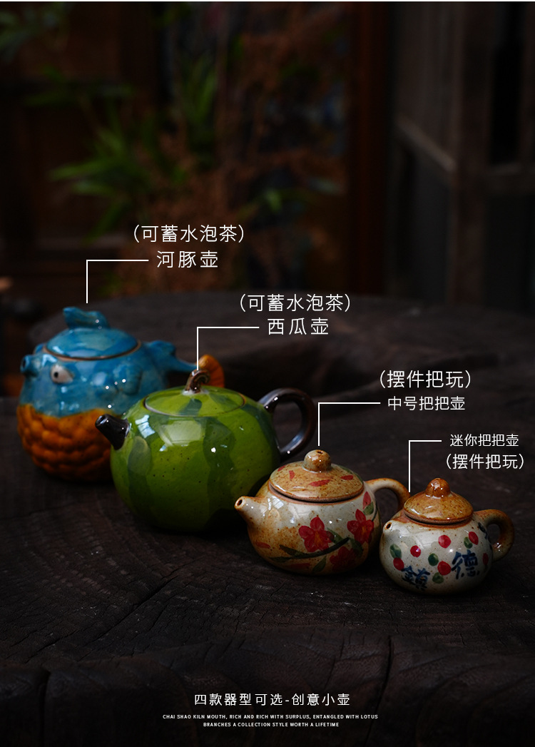 河豚壶西瓜壶迷你小茶壶创意茶玩文创摆件茶具手绘景德镇陶瓷批发