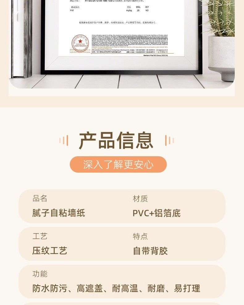 腻子白墙纸自粘防水防潮卧室遮丑翻新墙壁纸墙贴超厚贴纸墙面改造