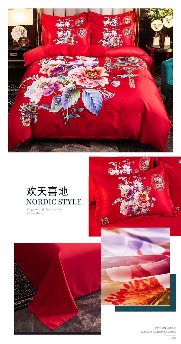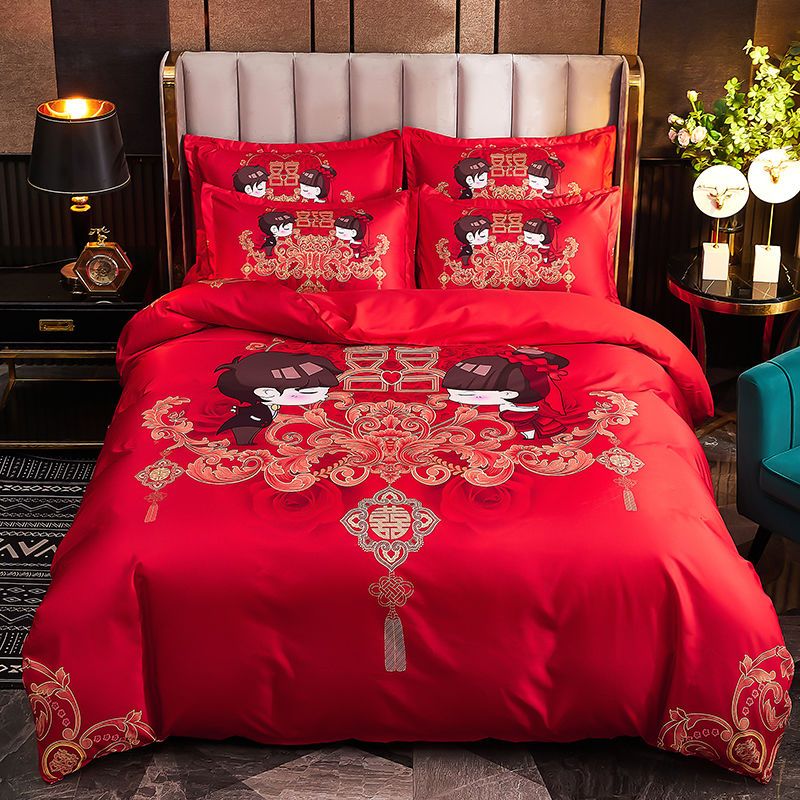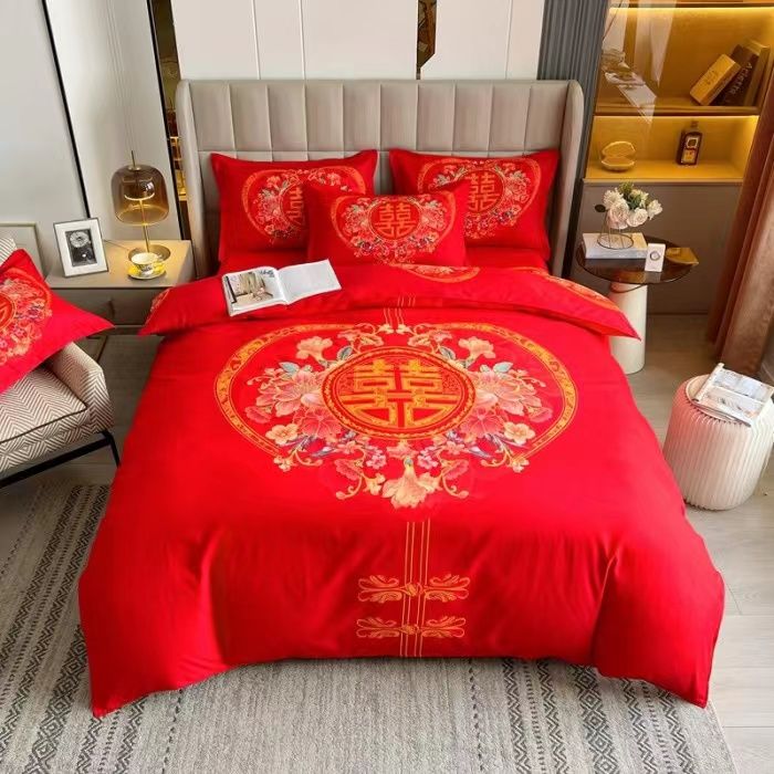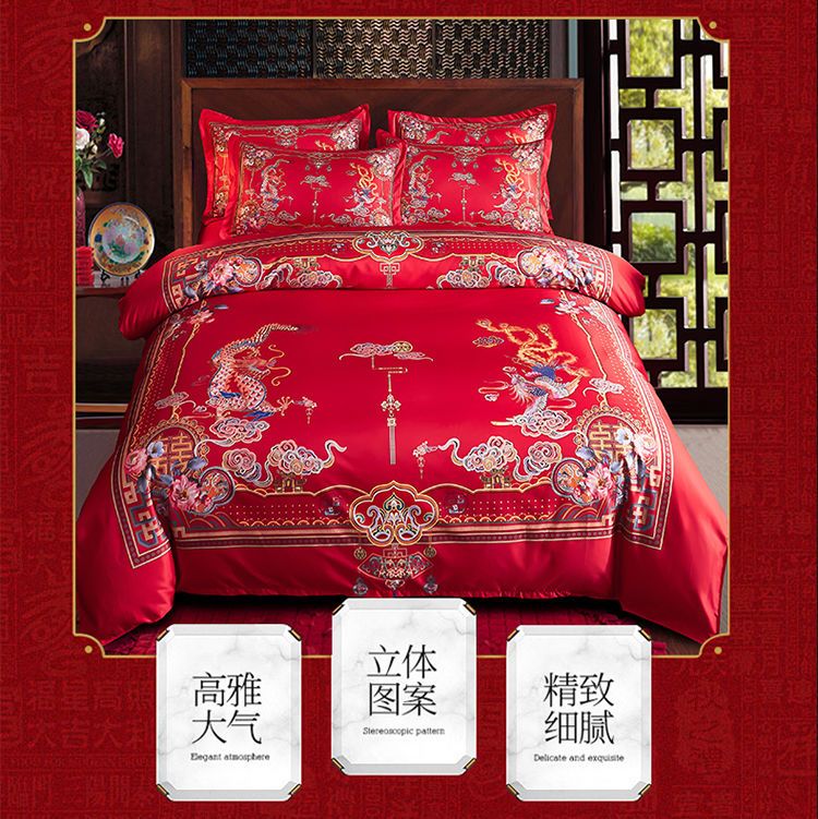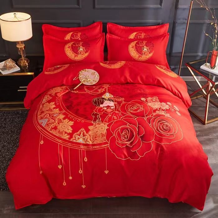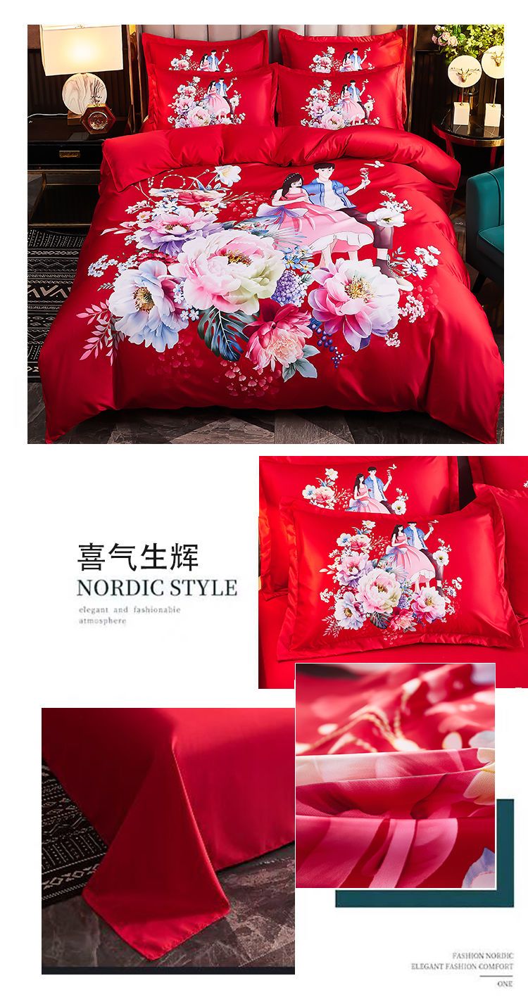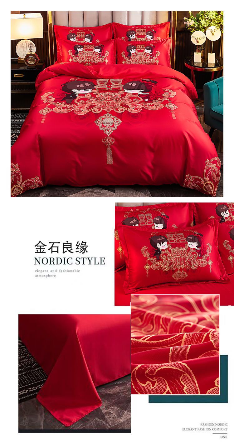 结婚四件套婚庆四件套大红色床罩床裙喜庆加厚新婚床上用品婚房