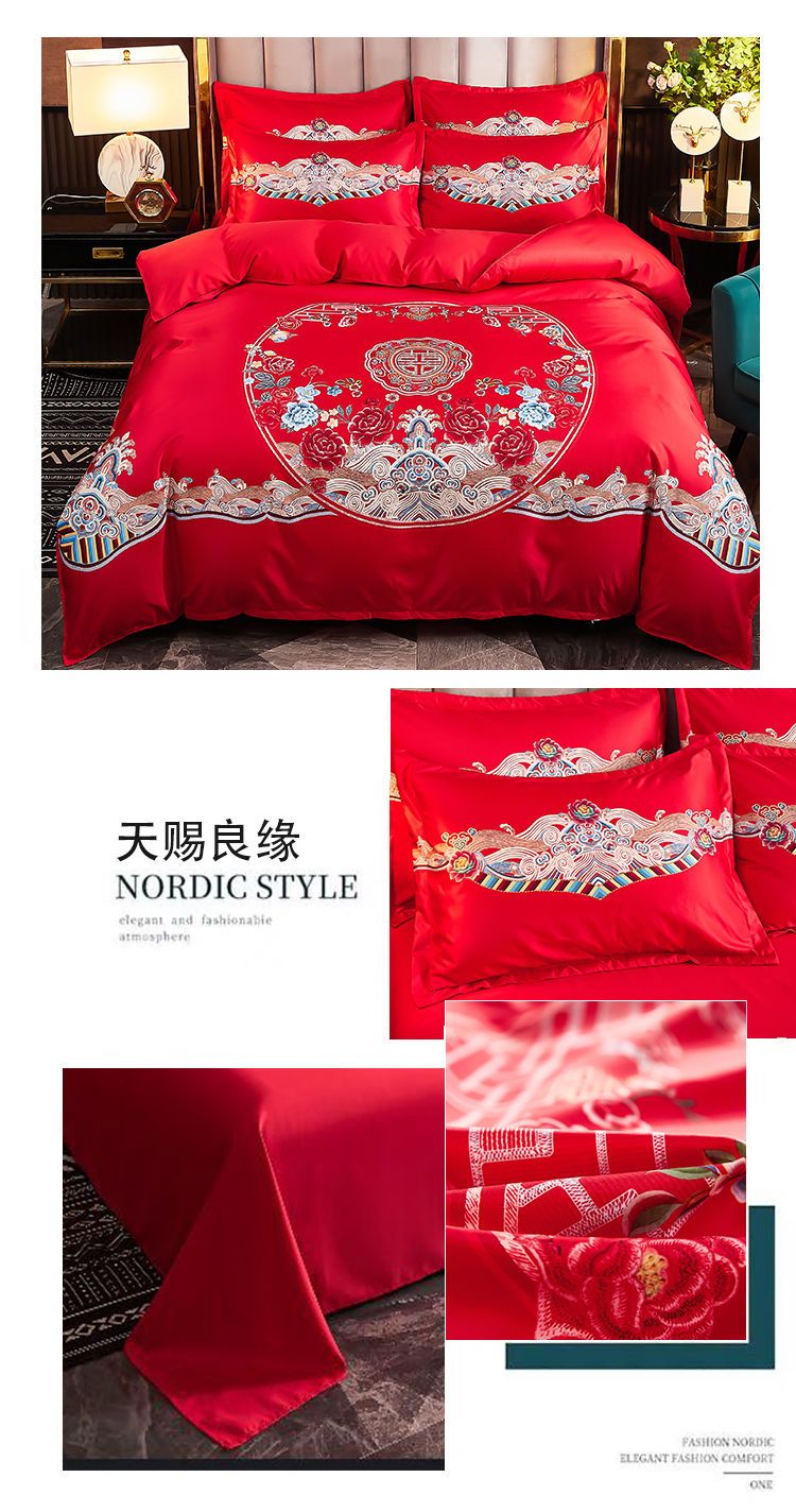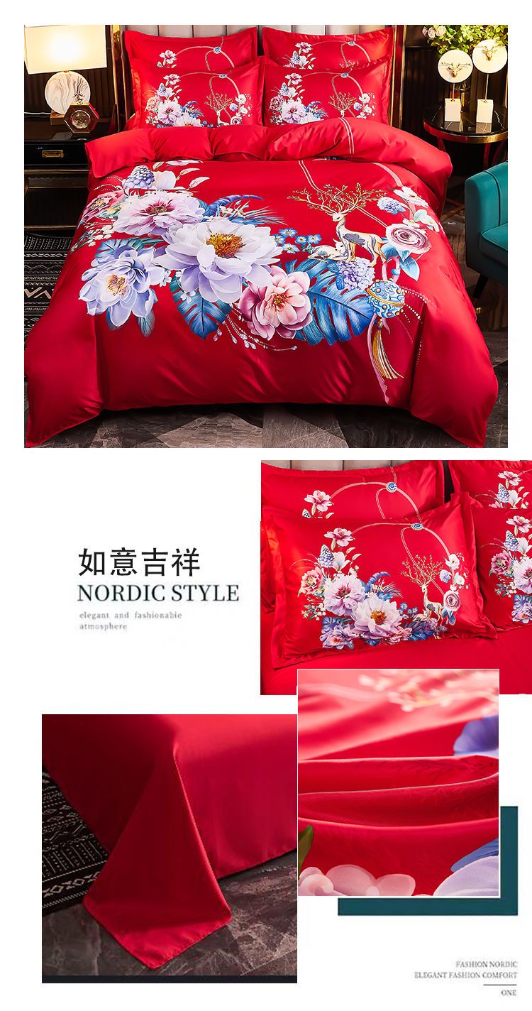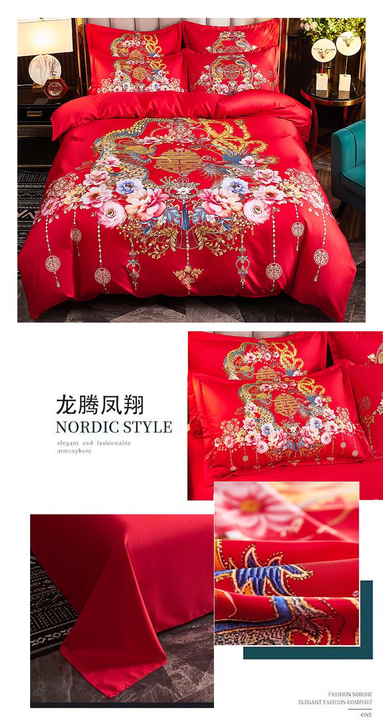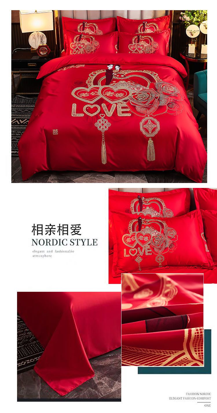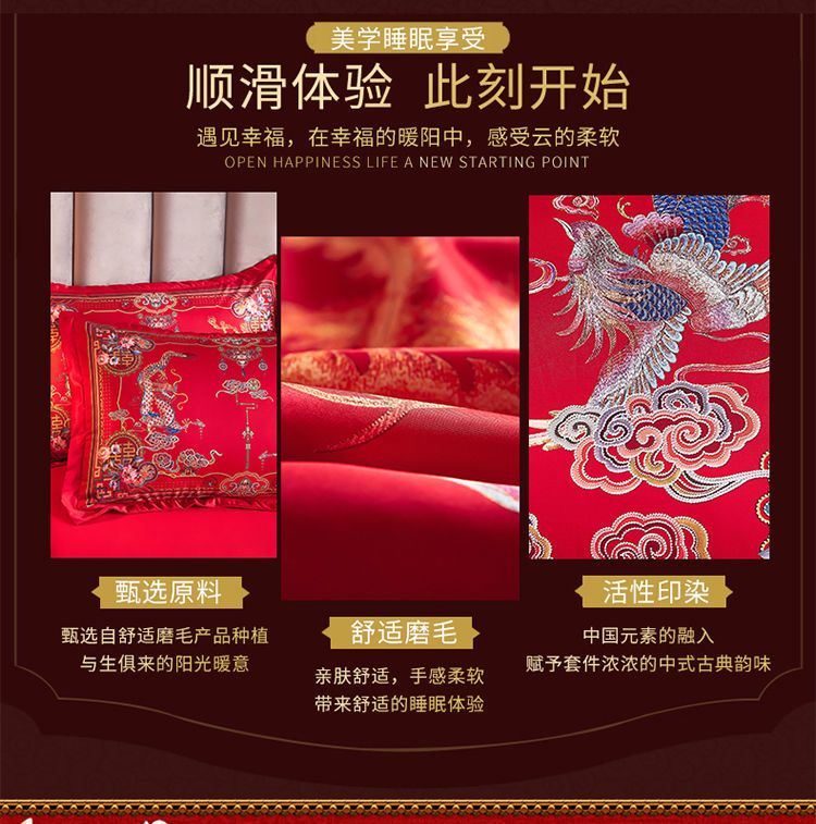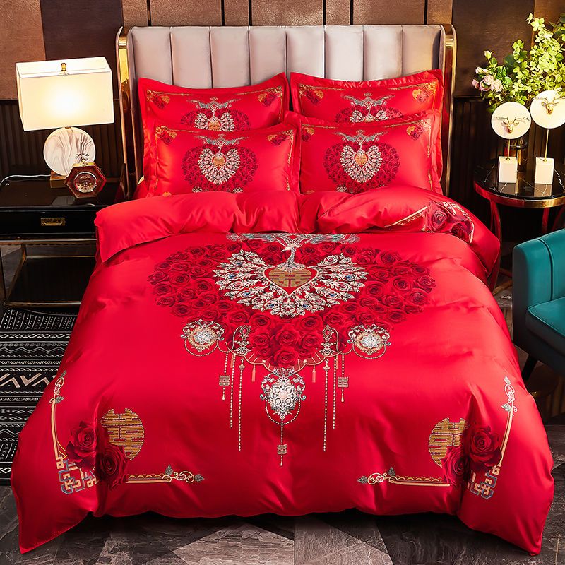 结婚四件套婚庆四件套大红色床罩床裙喜庆加厚新婚床上用品婚房
