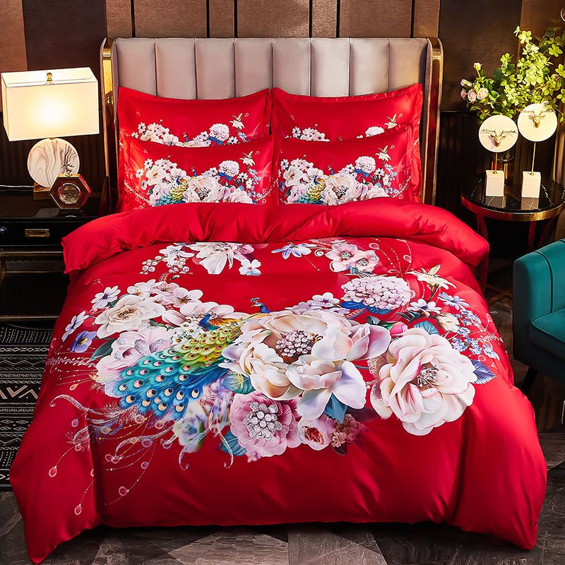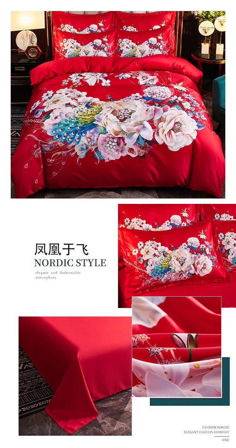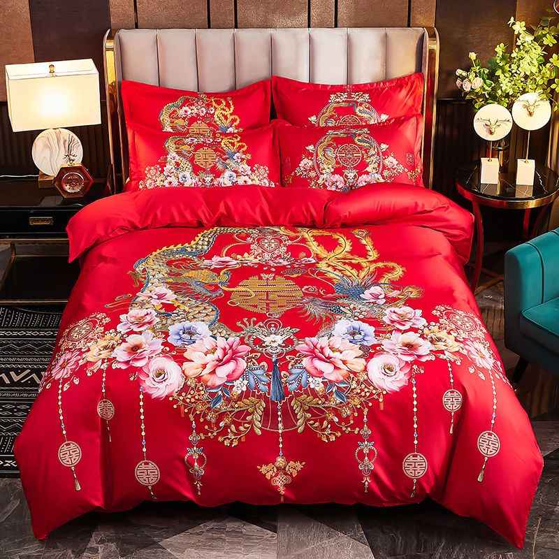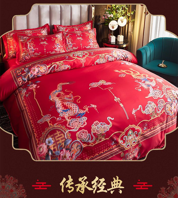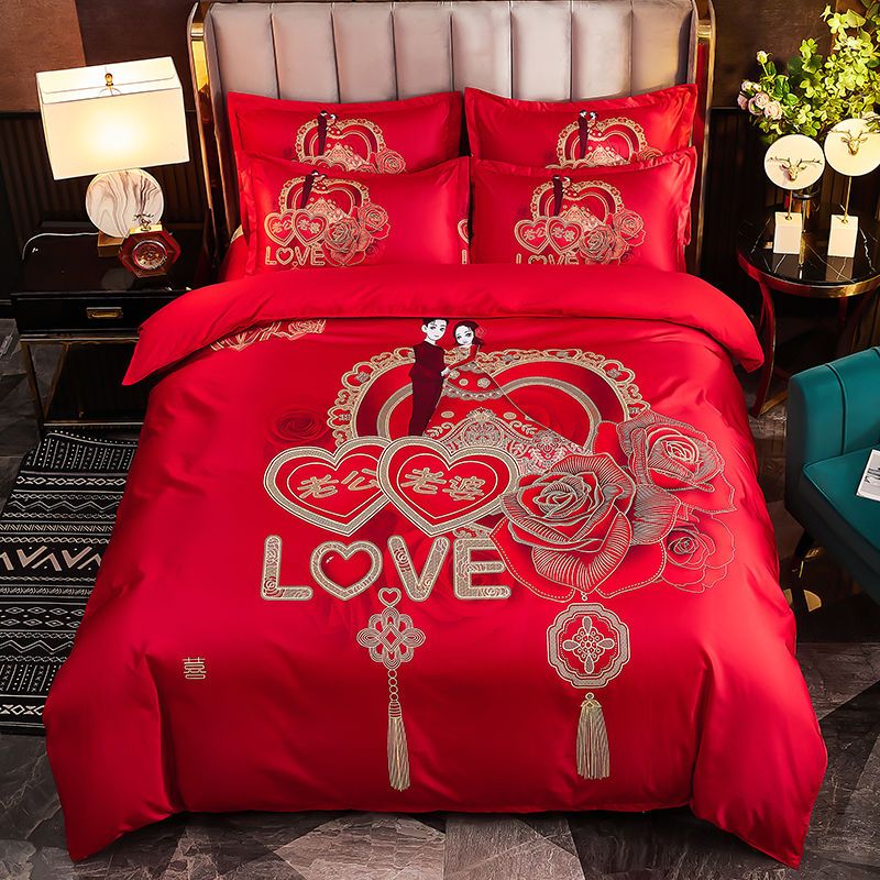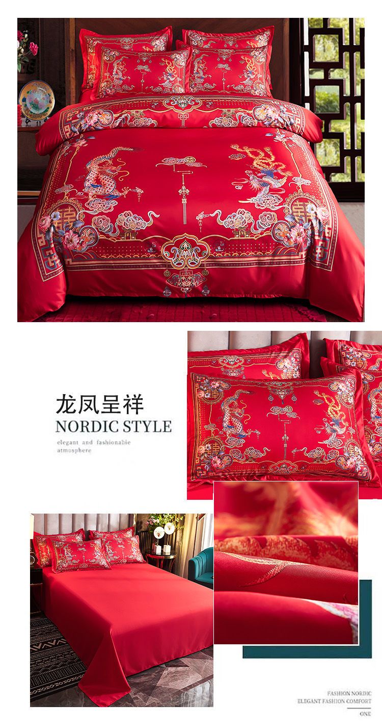 结婚四件套婚庆四件套大红色床罩床裙喜庆加厚新婚床上用品婚房